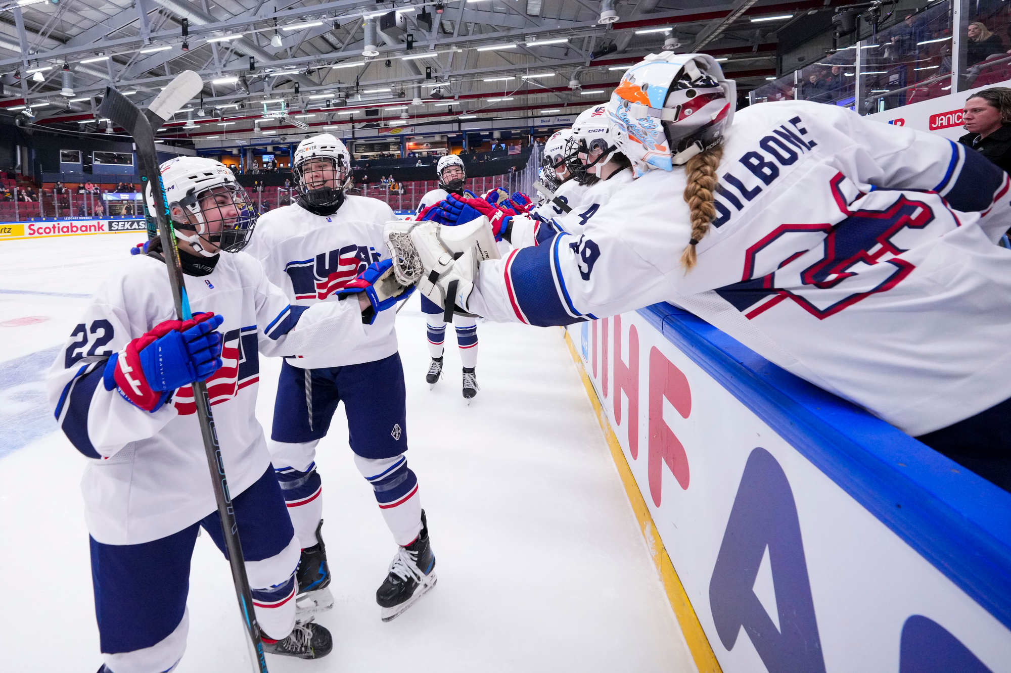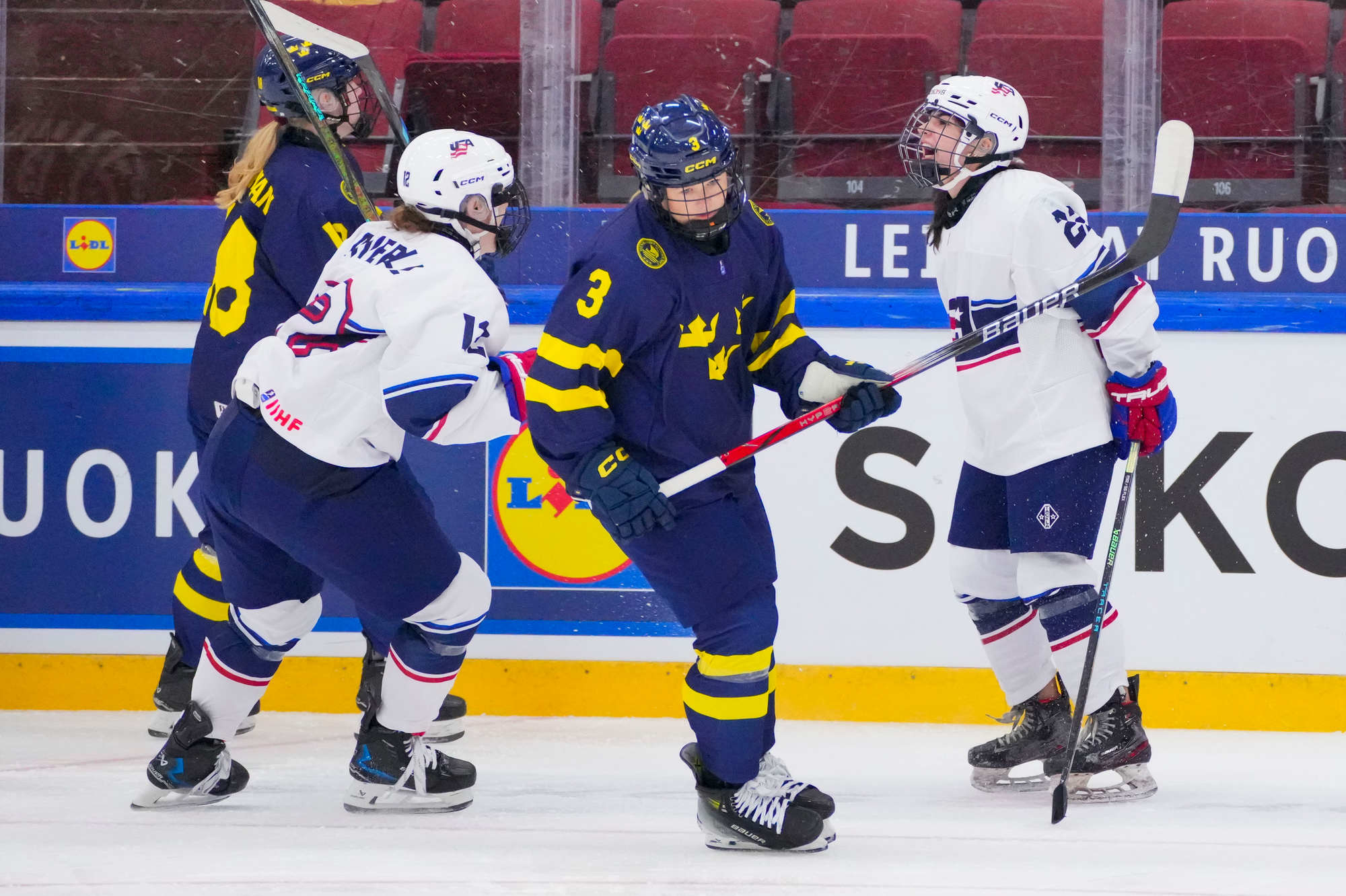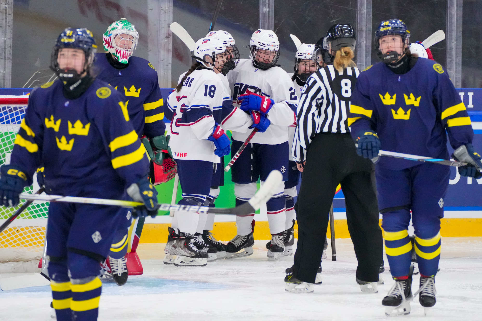 Christina Scalese, Evelyn Doyle and Kylie Amelkovich scored for Team USA; Stickney made 21 saves en route to a shutout, extending her shutout streak to 120 minutes. Helge made 29 saves for Sweden.