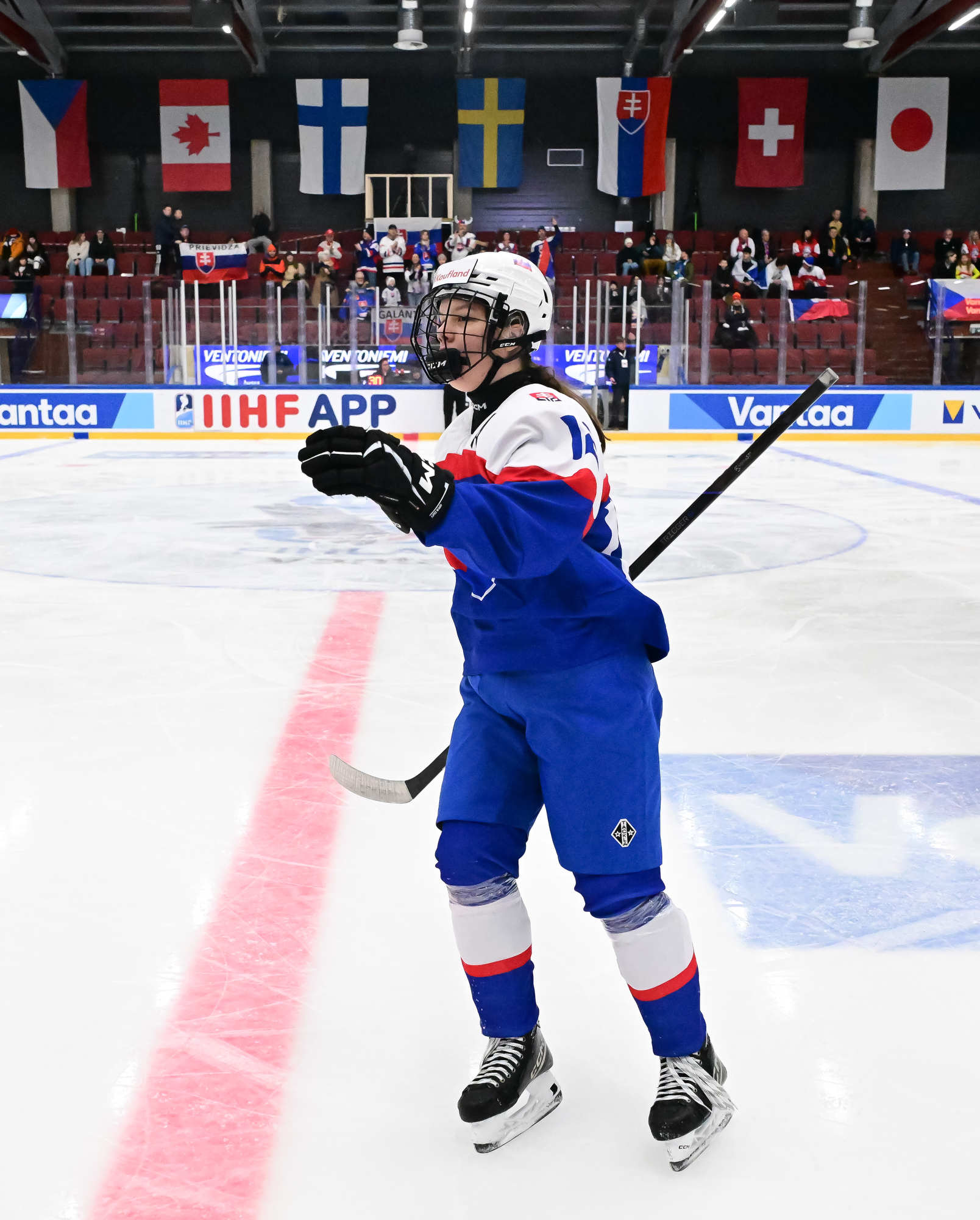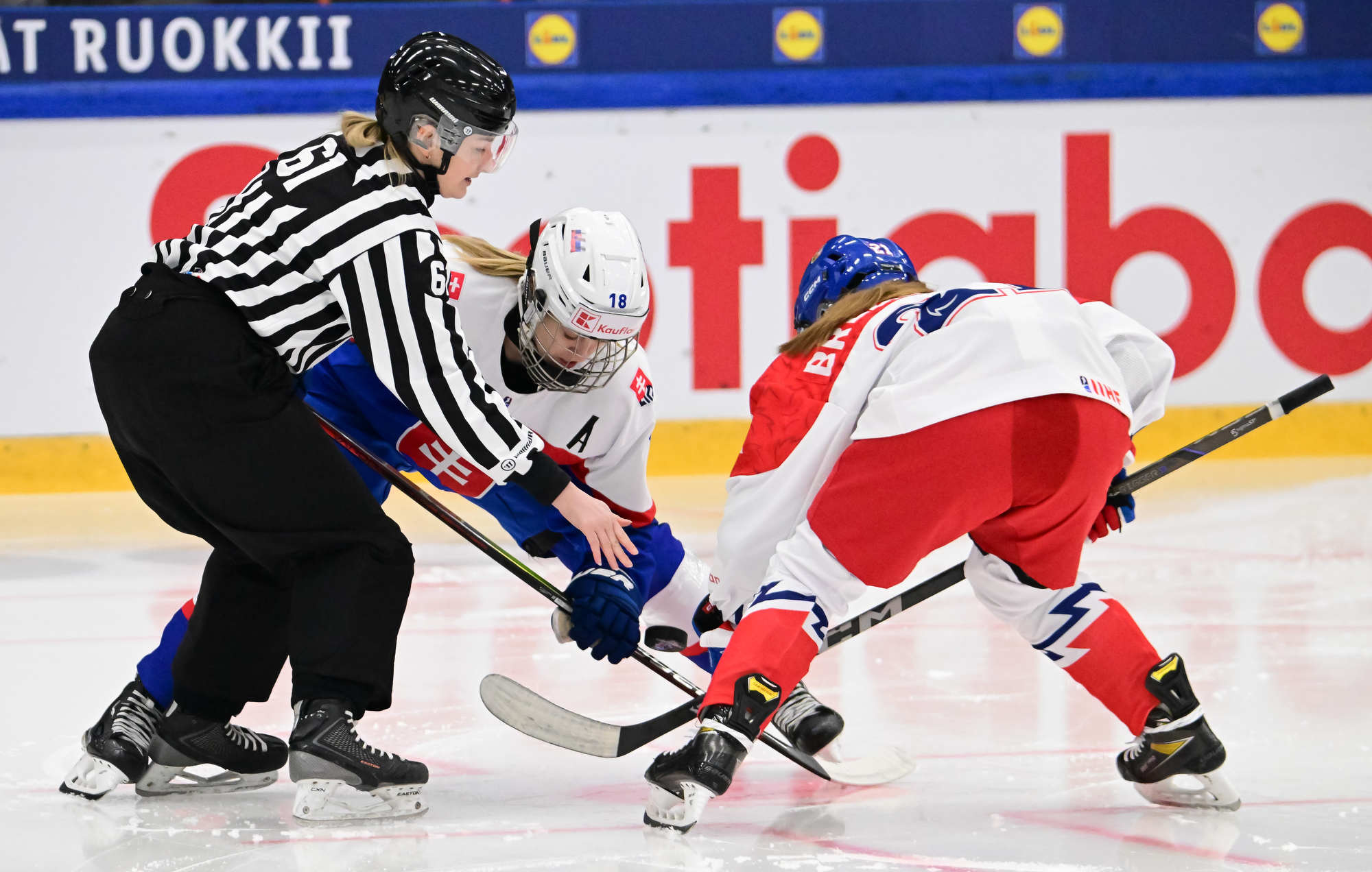 While the Czechs took a 6-3 verdict to build on last night’s overtime win against Switzerland, Slovakia’s Nela Lopusanova produced the big individual performance. She had the first hat-trick of this year’s championship, yet still finished on the losing side. So far, Lopusanova has been involved in all five of her team’s goals in Vantaa.