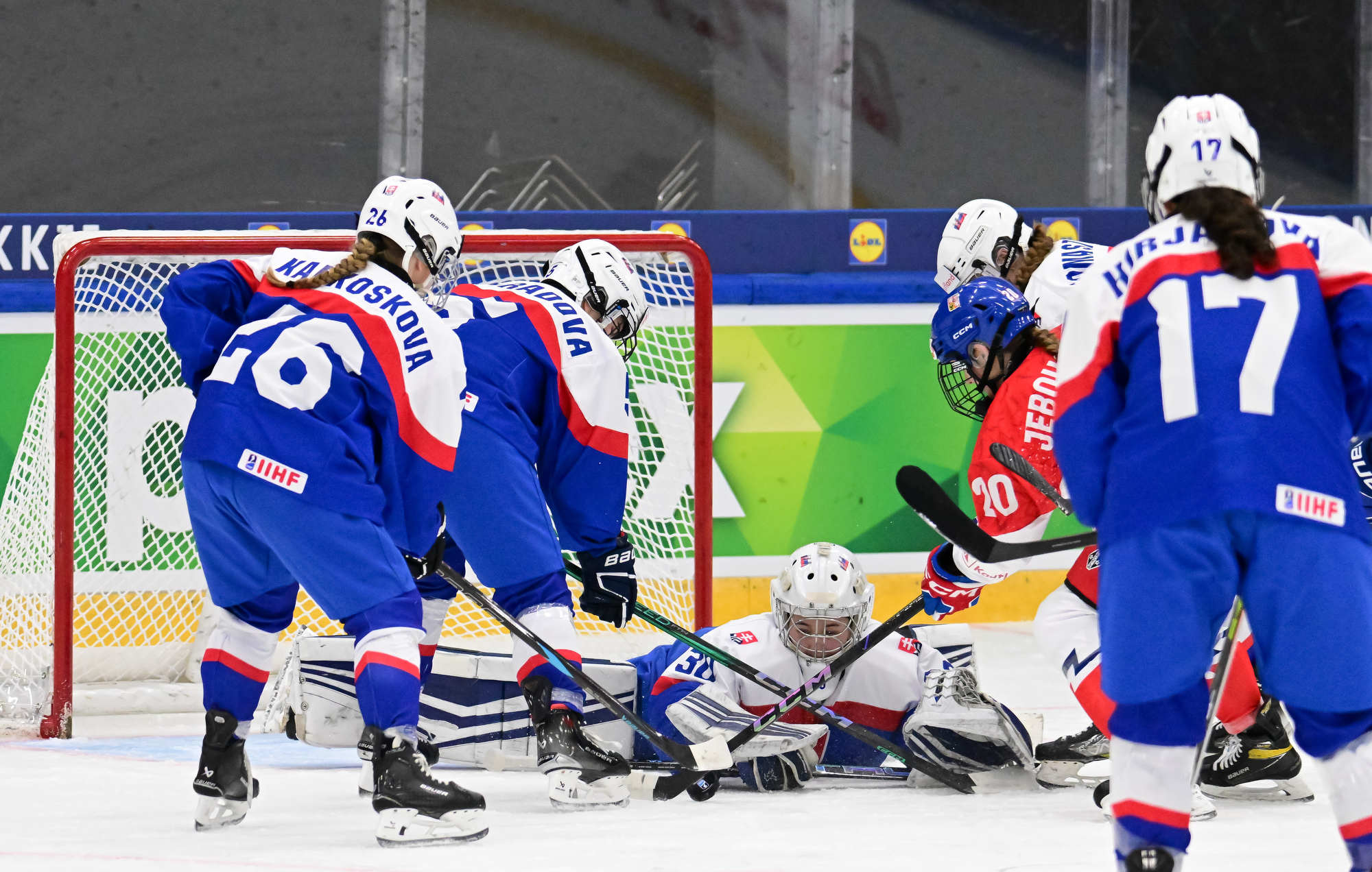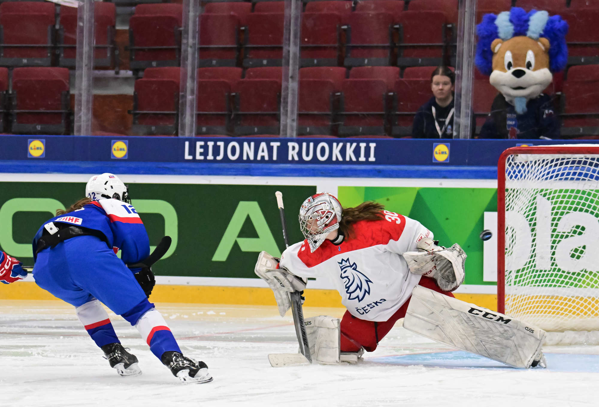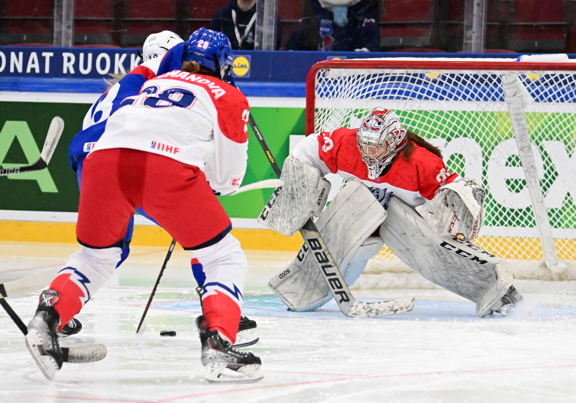 The Czechs looked for a quick reply and yesterday’s overtime heroine Julie Jebouskova was close to a tying goal. The pressure continued and captain Linda Vocetkova forced home the equalizer after a point shot from Ellen Jarabkova bounced around in front of Mariana Samegova.