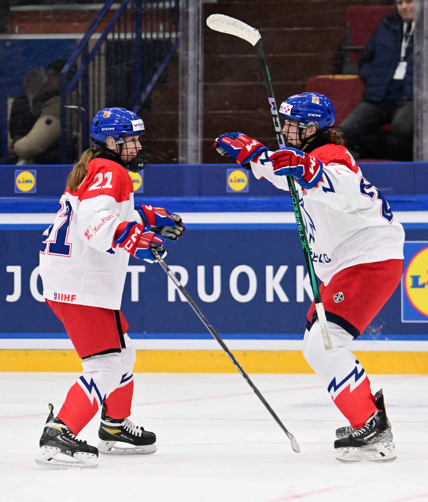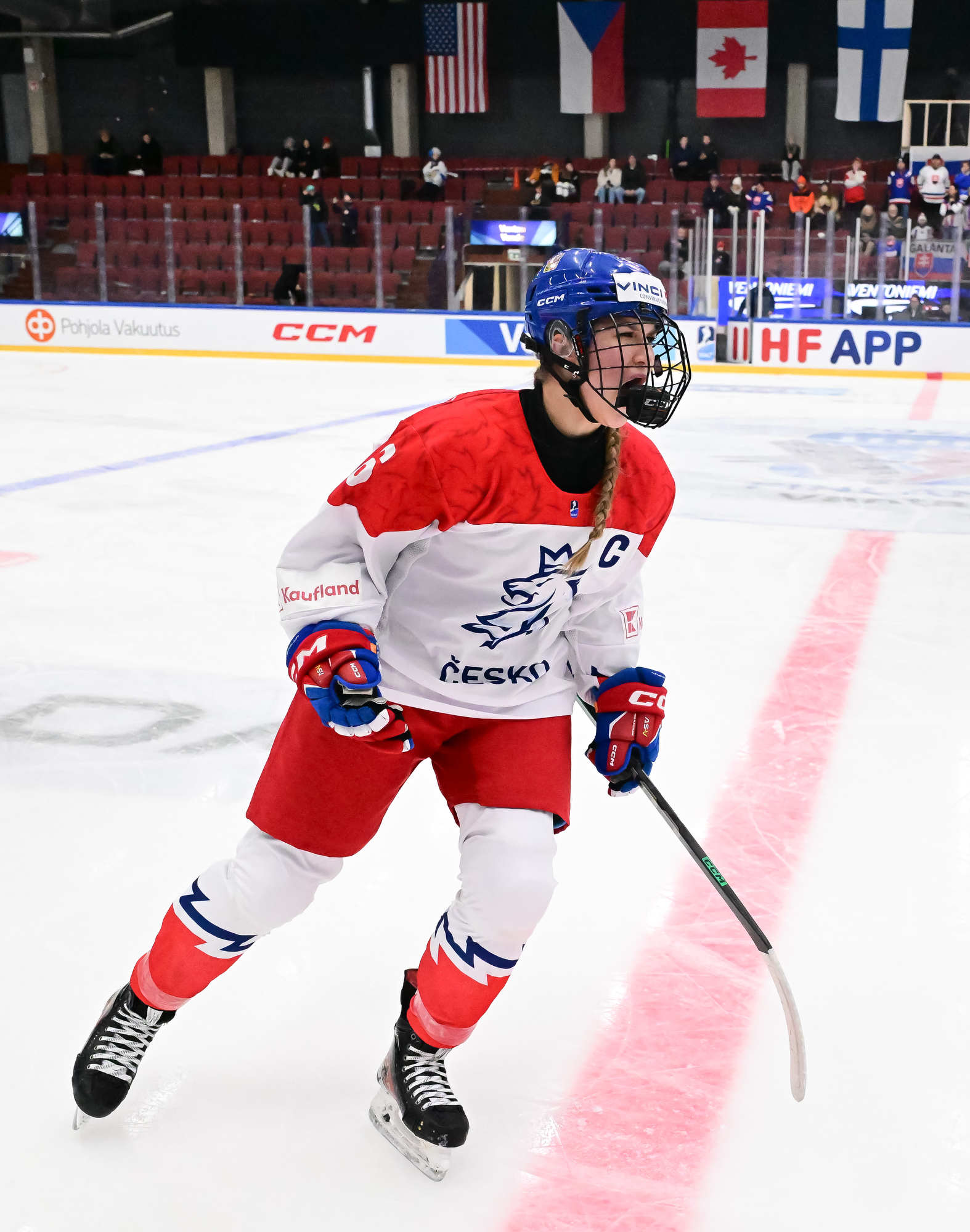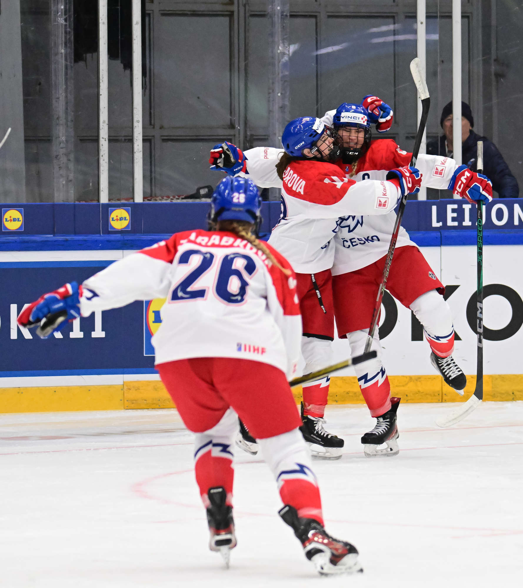 The Czechs looked for a quick reply and yesterday’s overtime heroine Julie Jebouskova was close to a tying goal. The pressure continued and captain Linda Vocetkova forced home the equalizer after a point shot from Ellen Jarabkova bounced around in front of Mariana Samegova.
