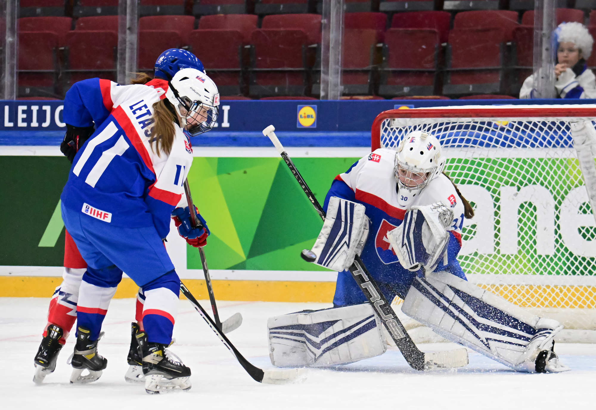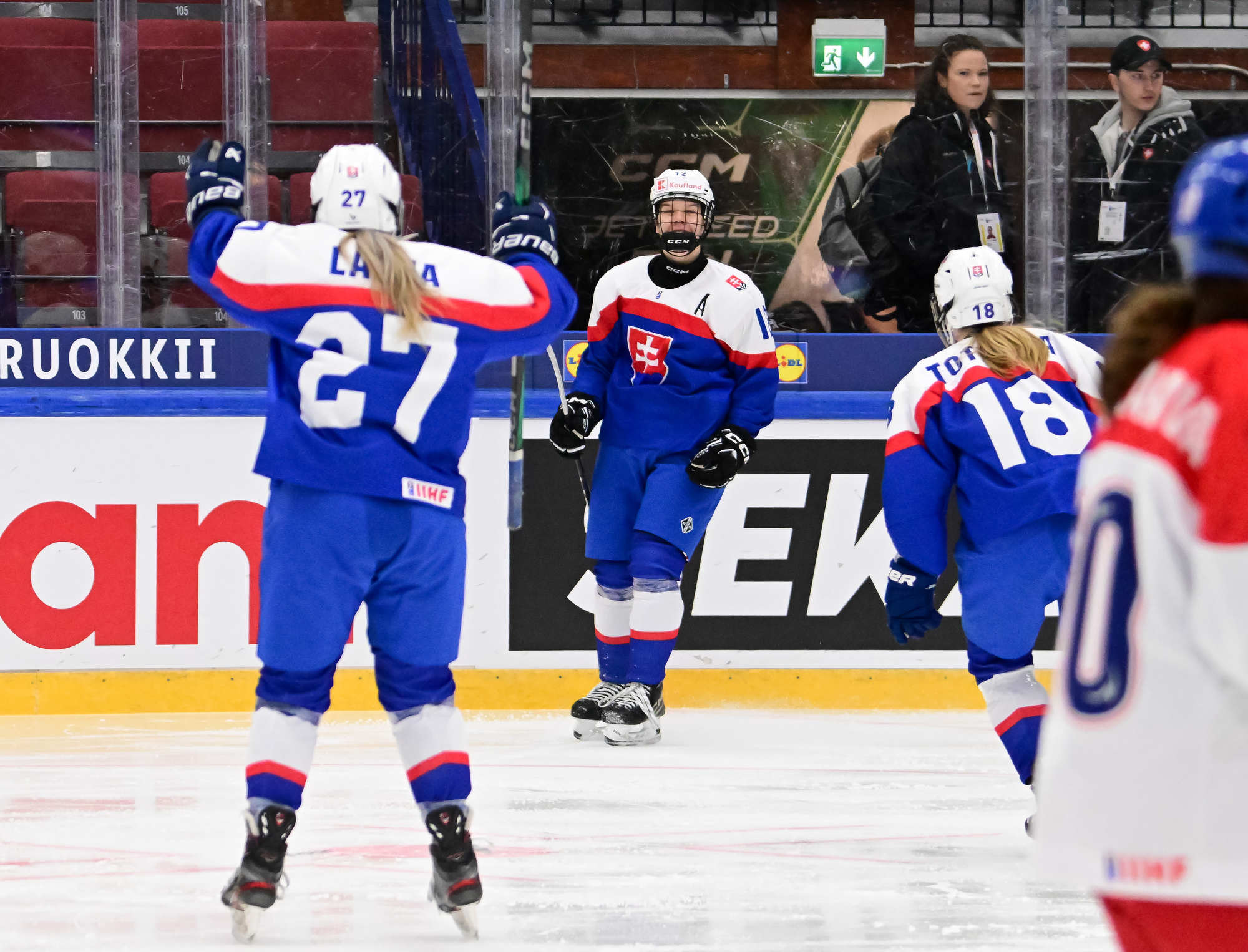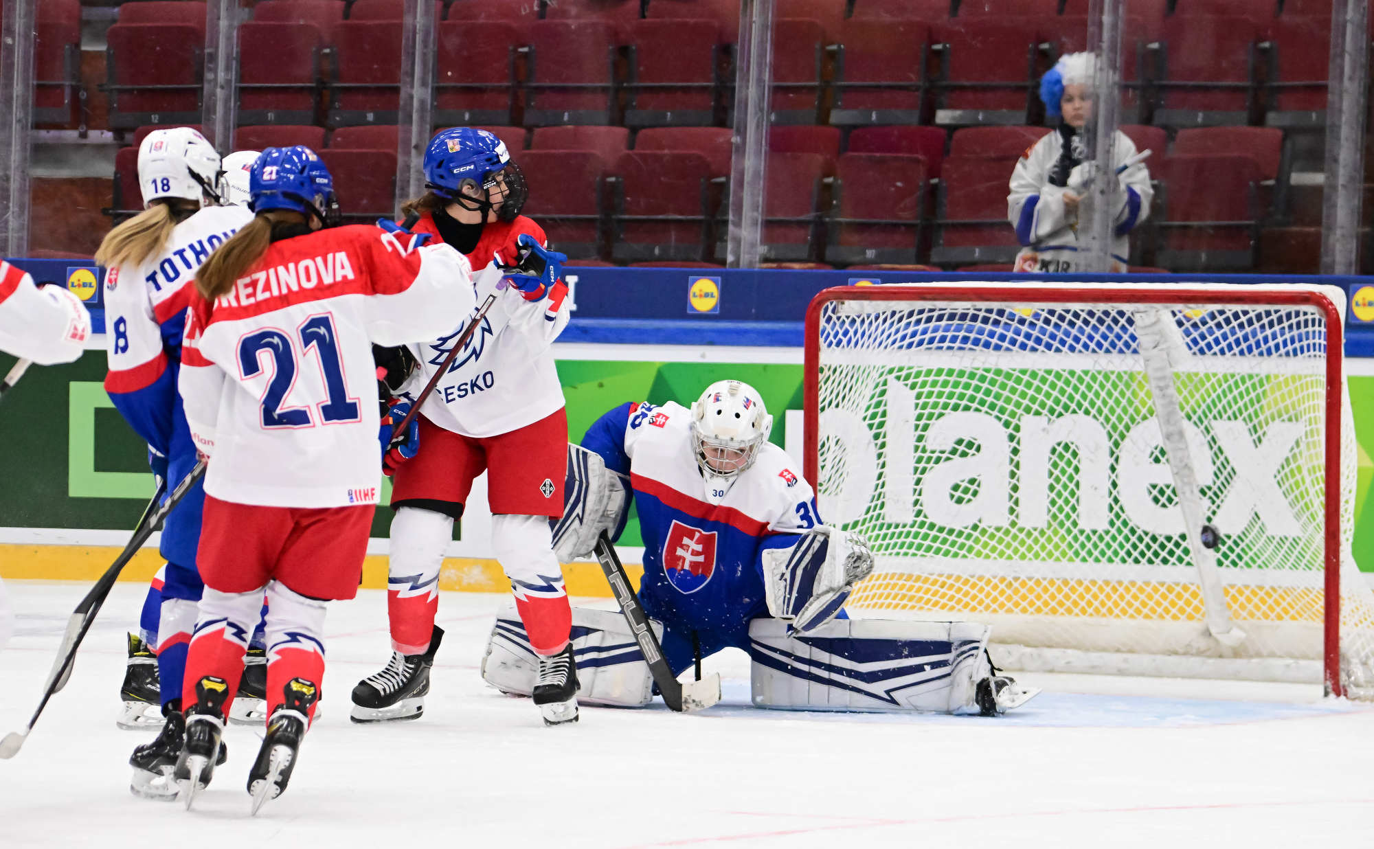 Slovakia got a boost at the start of the second period with a five-on-three power play. Although the Czechs survived with three players – helped by a good save from Novakova to deny Ema Lackova – they couldn’t kill the remaining penalty. The ever-dangerous Tothova-Lopusanova connection clicked again and Nela steered home a diagonal feed from her partner to tie the game