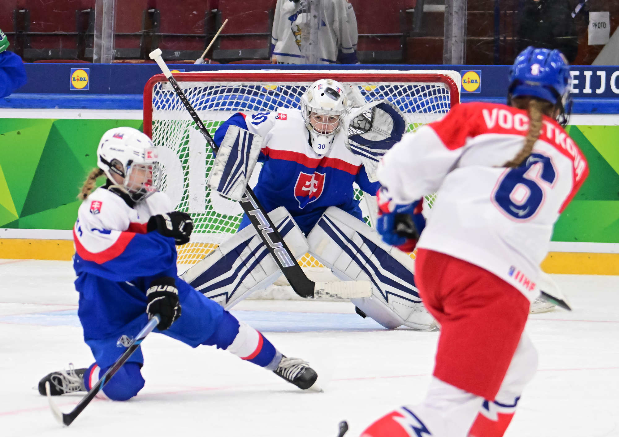 In the absence of the top-scoring line from last year’s silver medal team, Vocetkova was one of the players expected to step up and fill the gap, and she struck again late in the first period. Slovakia’s coaches might question some of the defensive work as the Czech captain was able to skate into the danger zone rather easily, but there was no question about the finish as she found the top shelf.