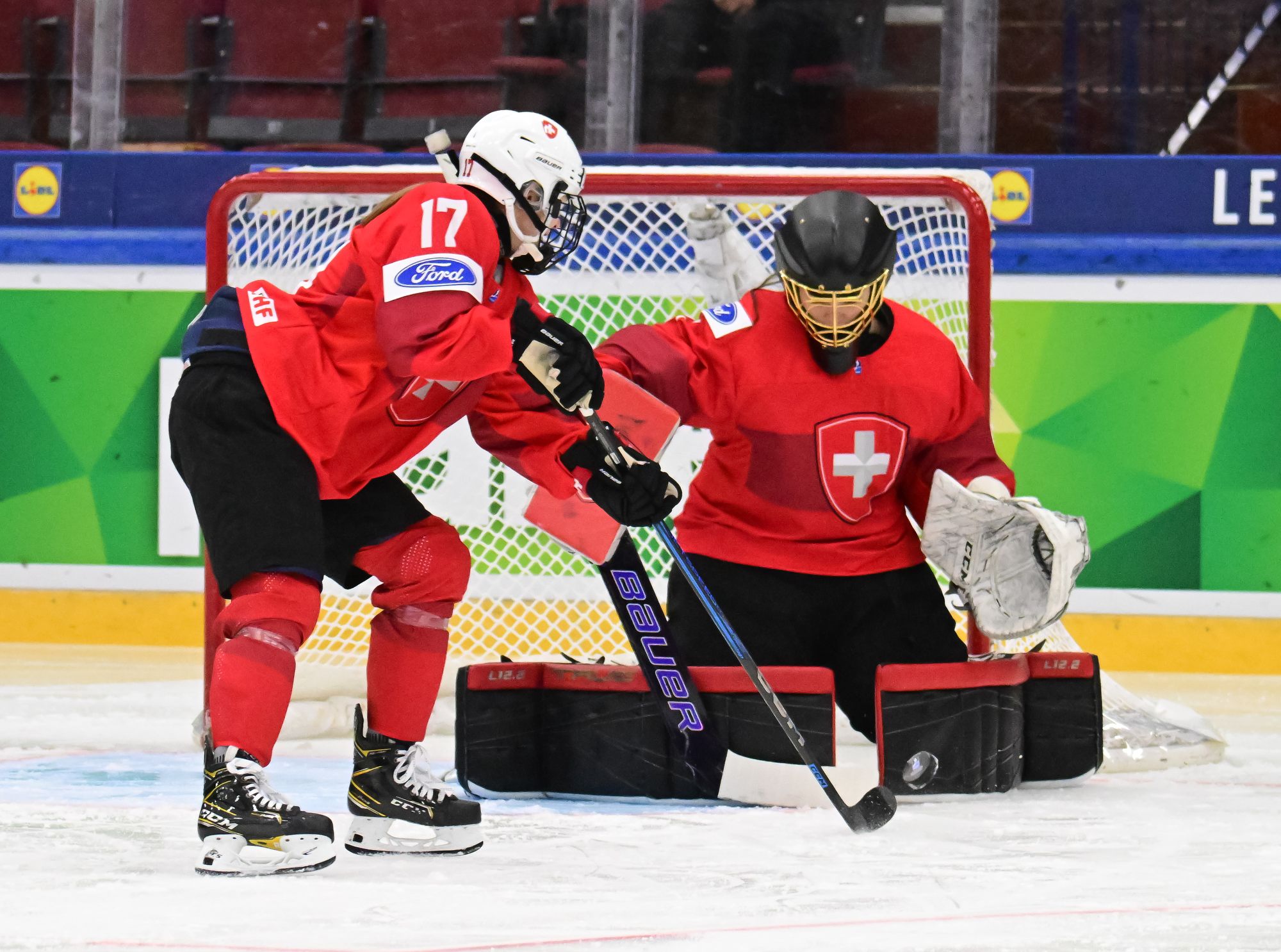 If the players were nervous about any of that, it certainly didn’t show. The first period was fast-paced and the teams traded chances, but both goalies stood tall. Slovakia outshot Switzerland, thanks to their three powerplay opportunities, but Iseli continued her strong tournament in the Swiss goal.