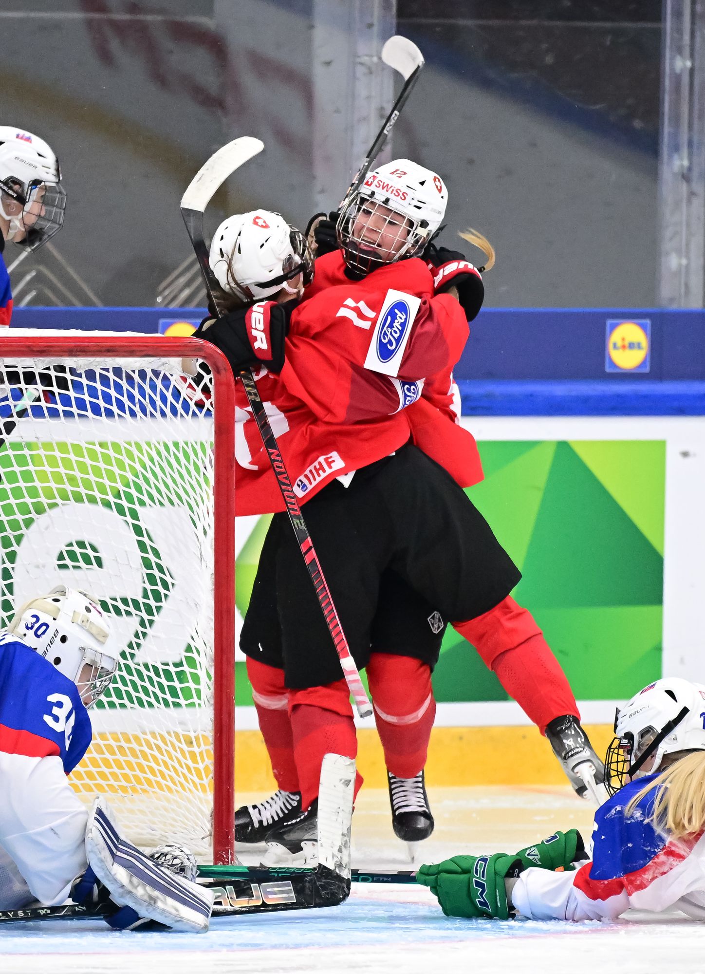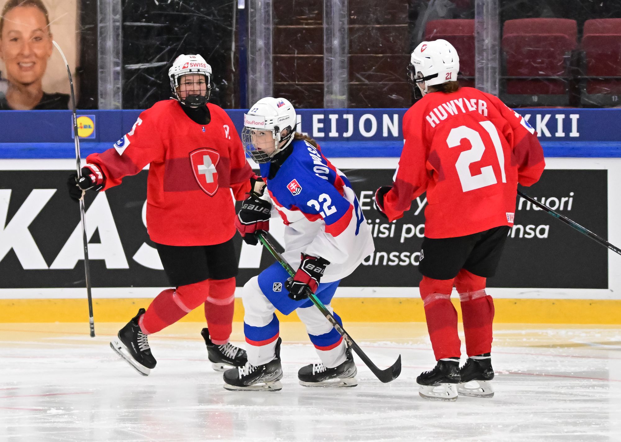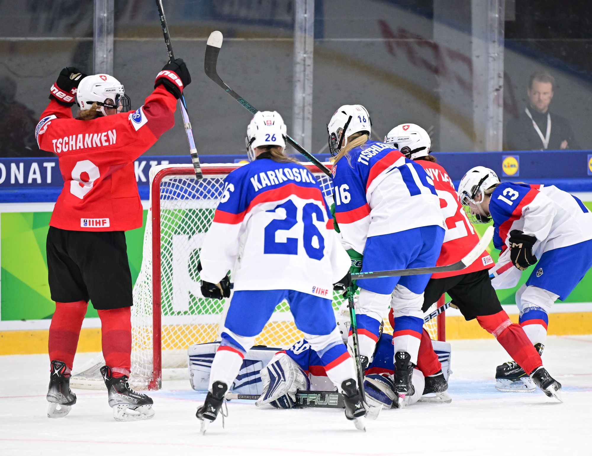 Livia Tschannen gave Switserland some breathing room with five minutes remaining with a quick wrister from up close. Slovakia came within two goals when Lacna scored her third of the game with 15 seconds remaining, a carbon copy of her two previous goals.