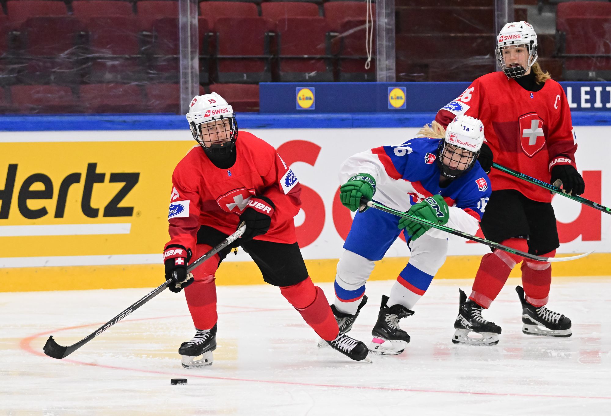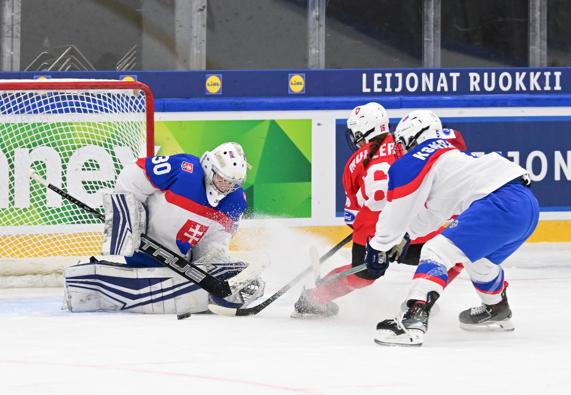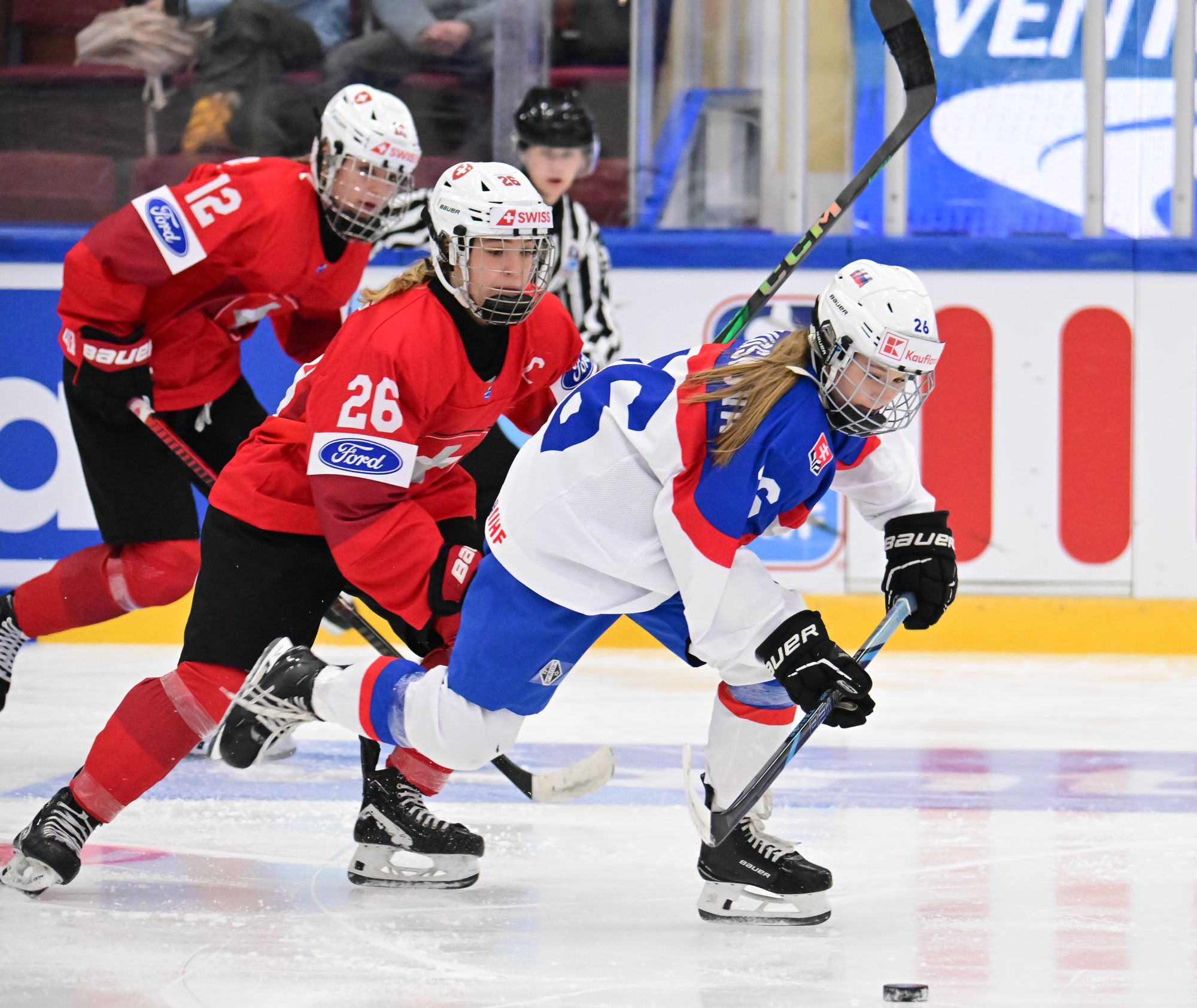 Livia Tschannen gave Switserland some breathing room with five minutes remaining with a quick wrister from up close. Slovakia came within two goals when Lacna scored her third of the game with 15 seconds remaining, a carbon copy of her two previous goals.