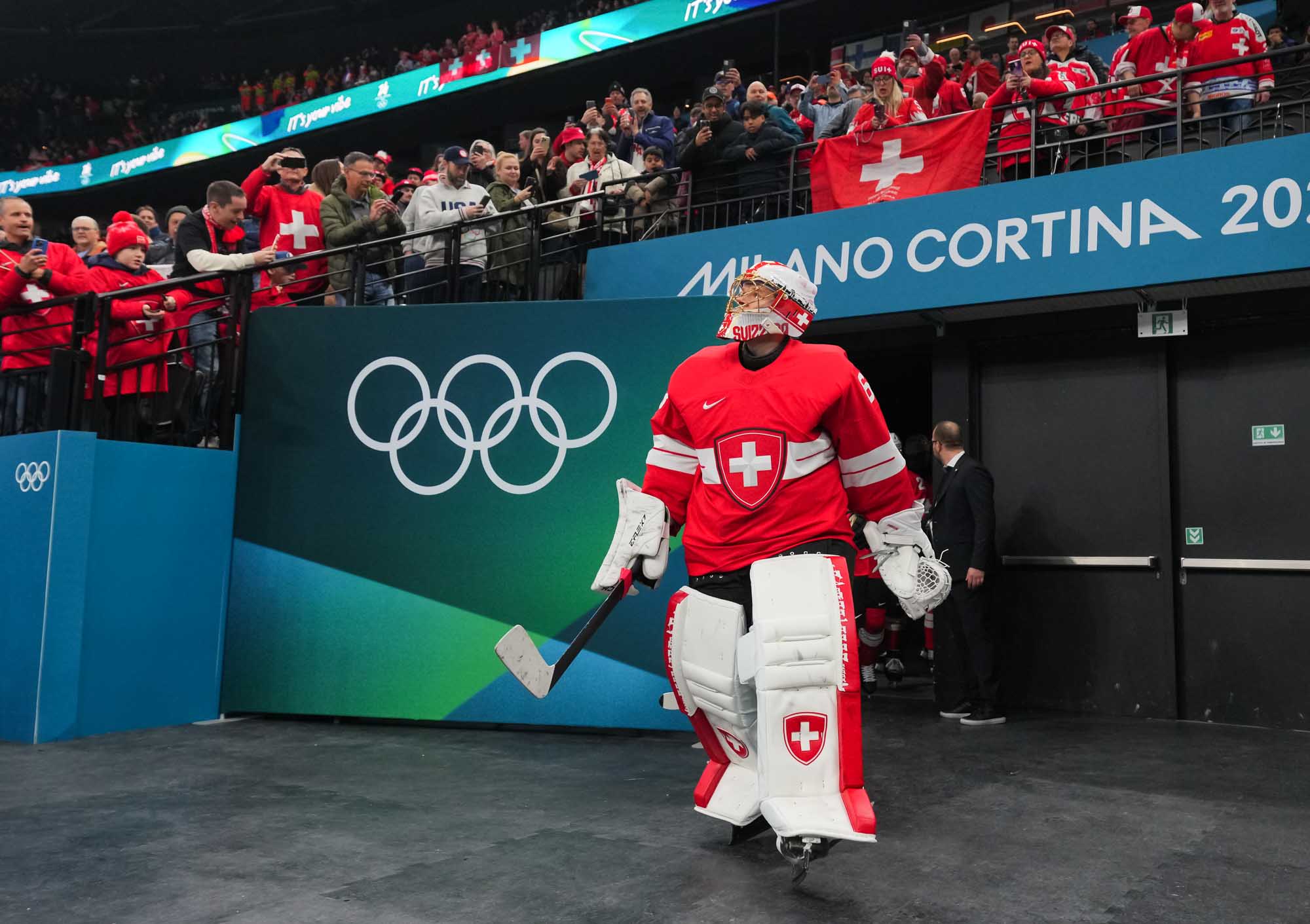 Legendary Swiss NL goalie Leonardo Genoni – the 2025 IIHF Ice Hockey World Championship MVP who has led that tournament in GAA and save percentage two years running – made 27 saves for his first Olympic shutout.