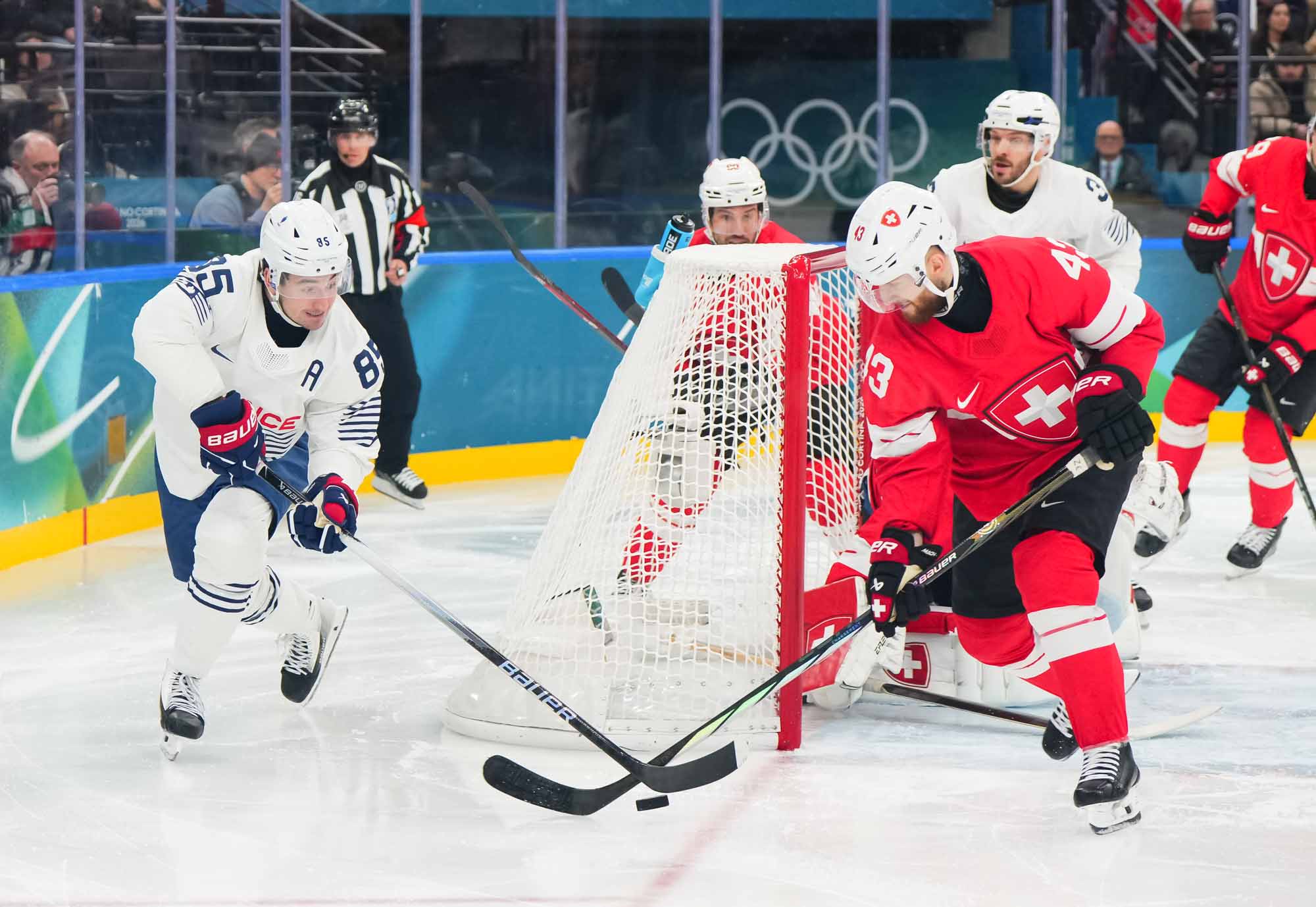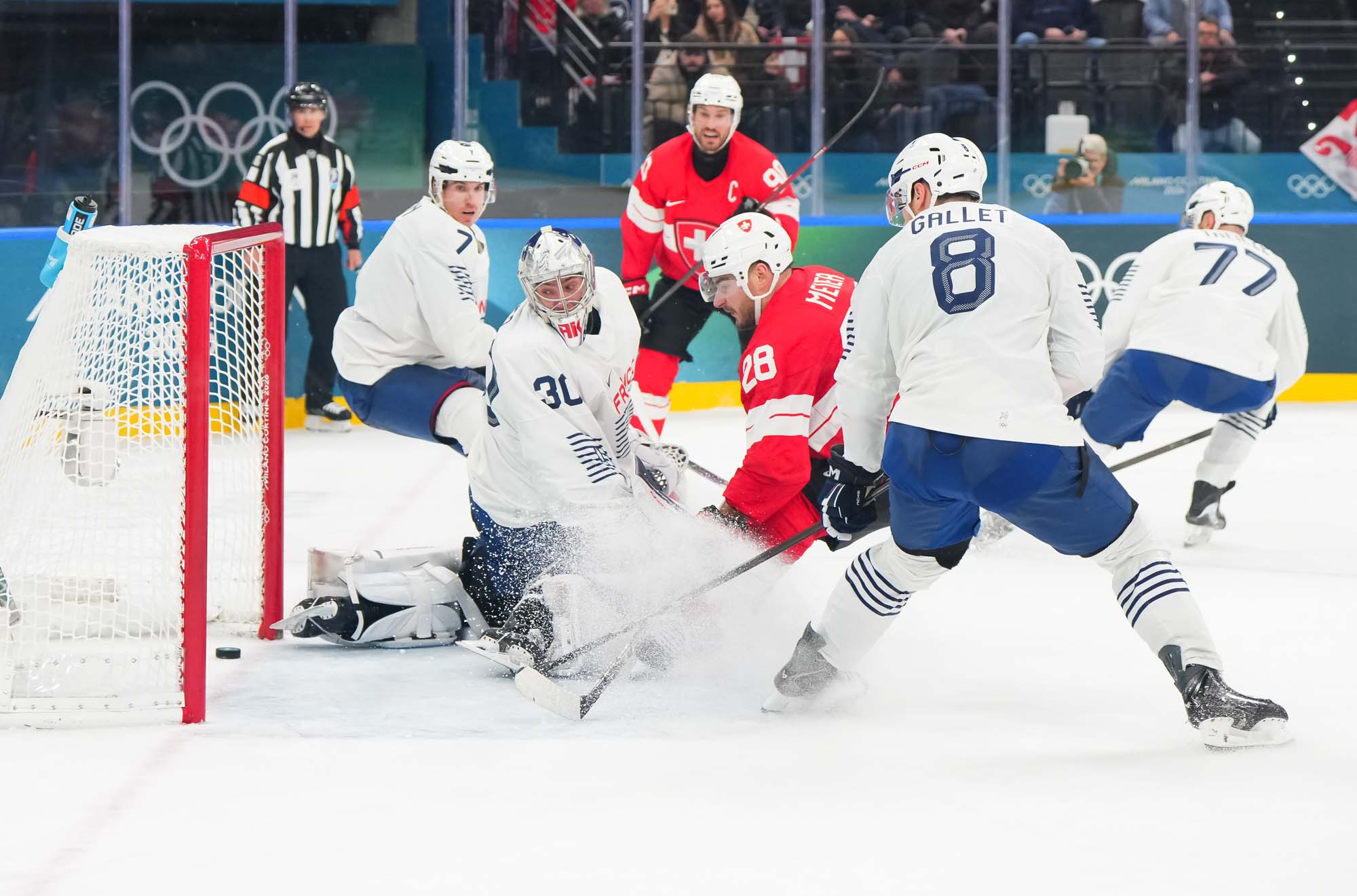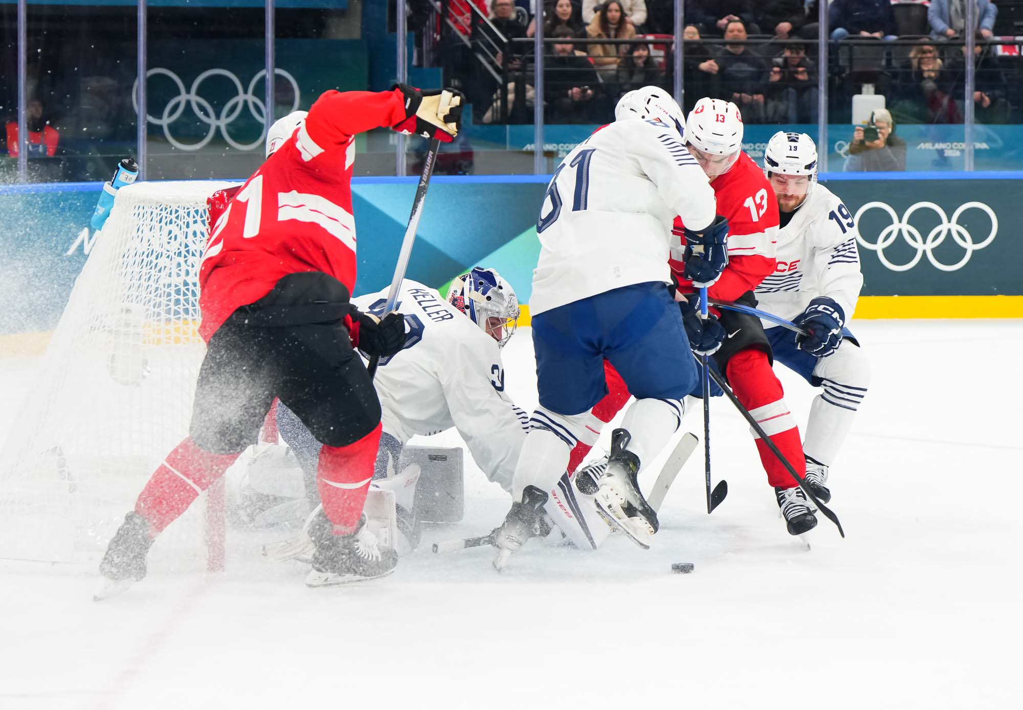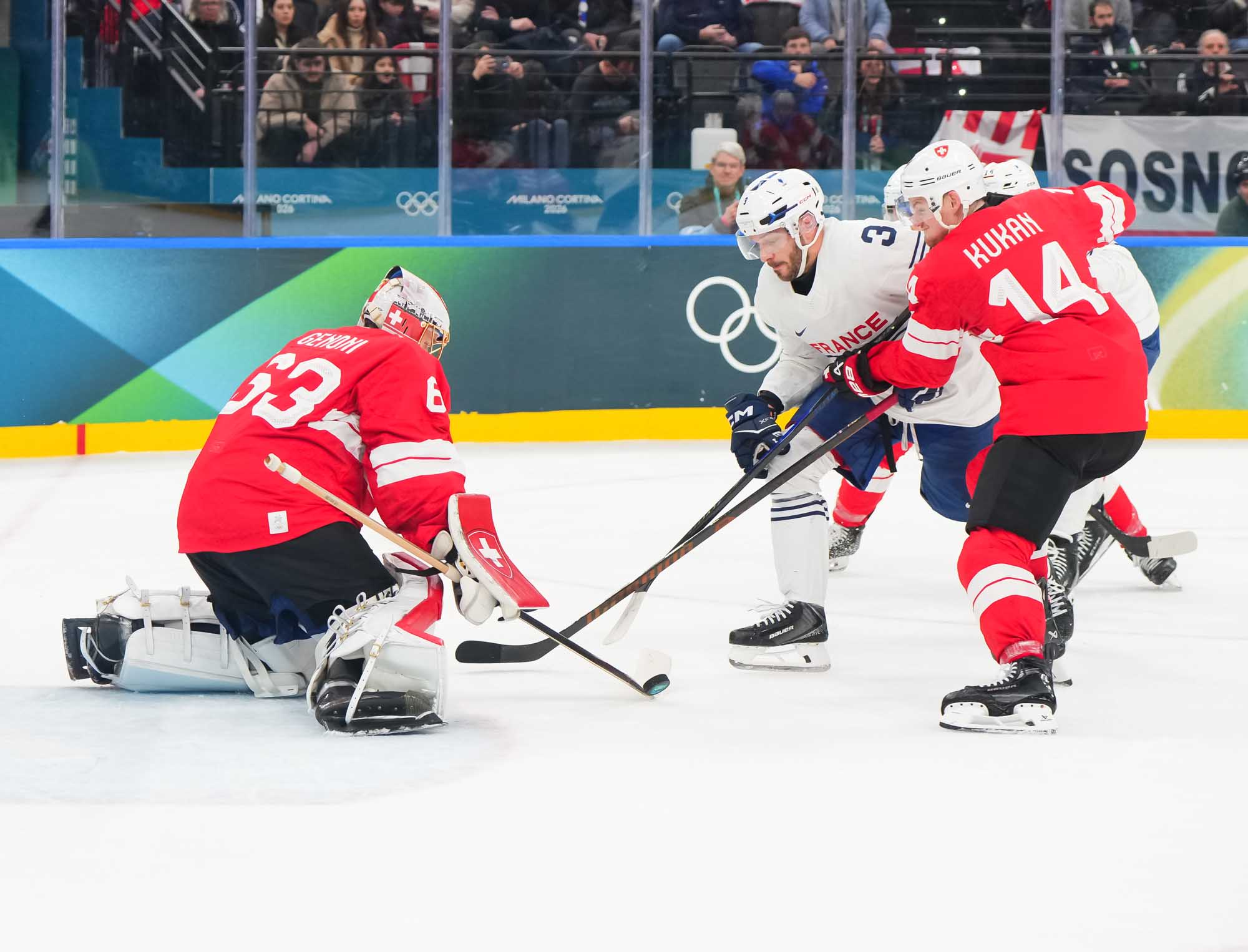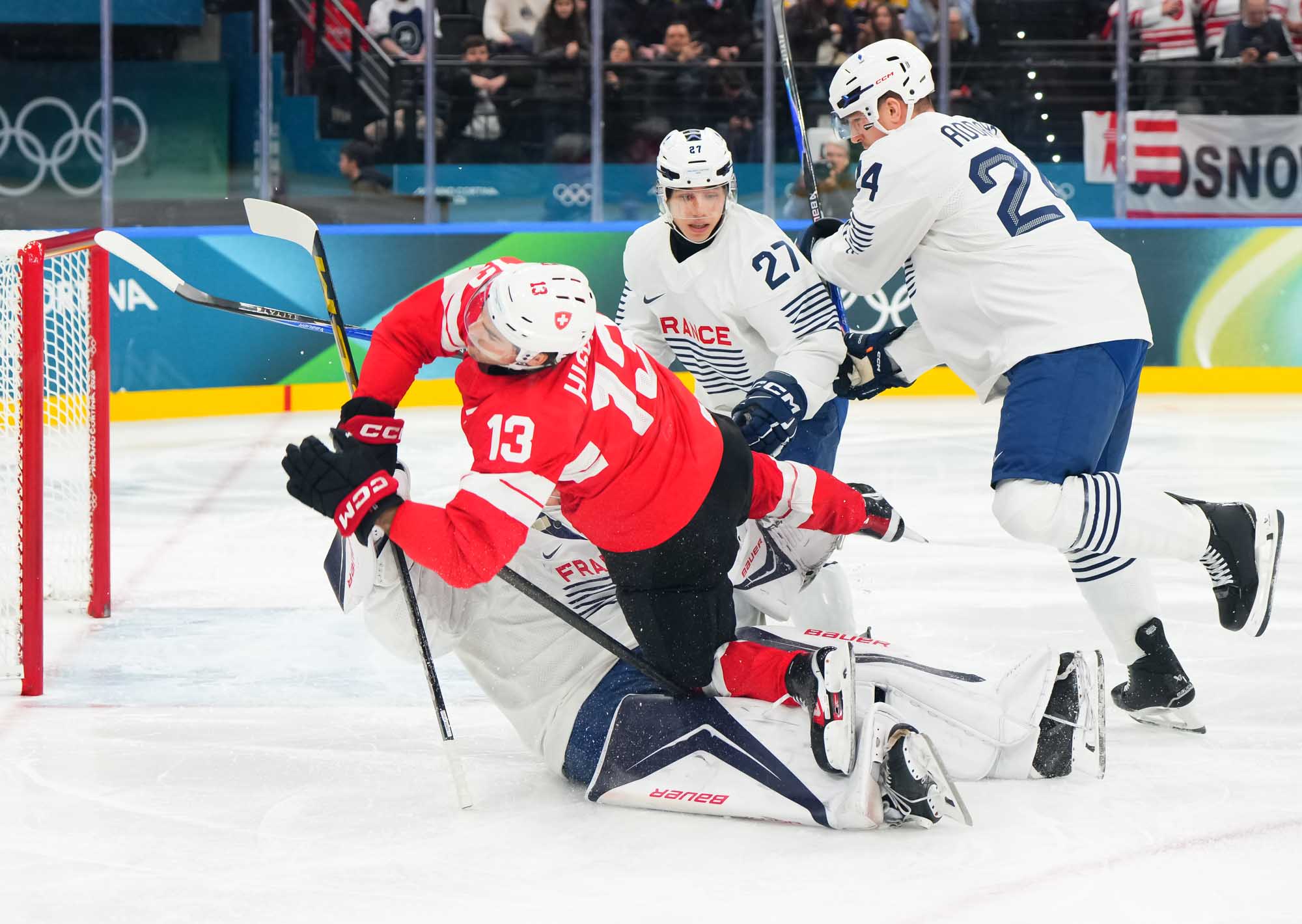 Switzerland got the early jump on France and won its Olympic men's hockey opener 4-0 at the Milano Santagiulia Ice Hockey Arena.