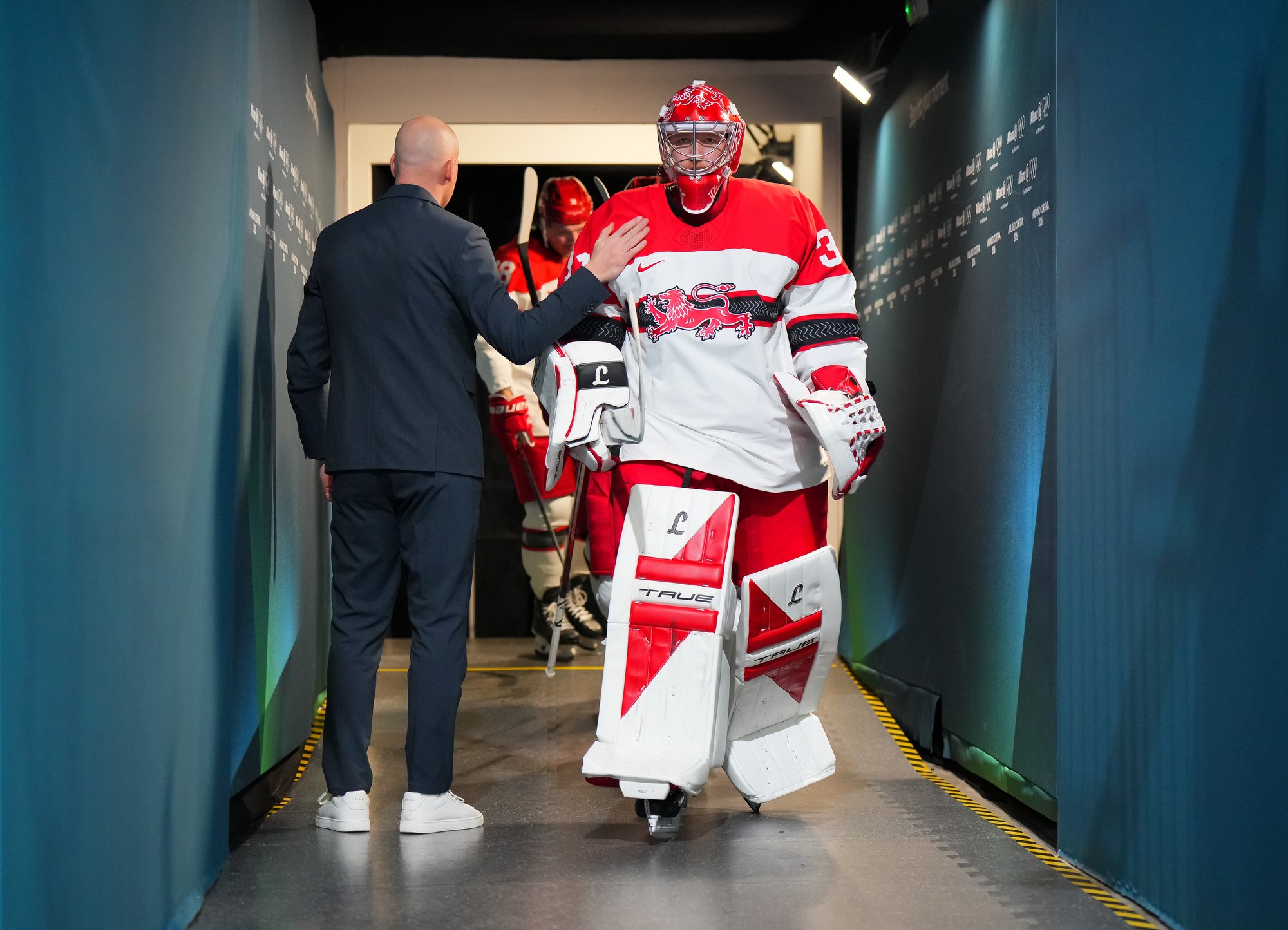 Not long after, Moritz Seider almost made it 2-0 when his long shot clanged off the crossbar, and Phillip Bruggisser matched this red-iron luck when his screen shot from the point fooled Philipp Grubauer but hit the post.