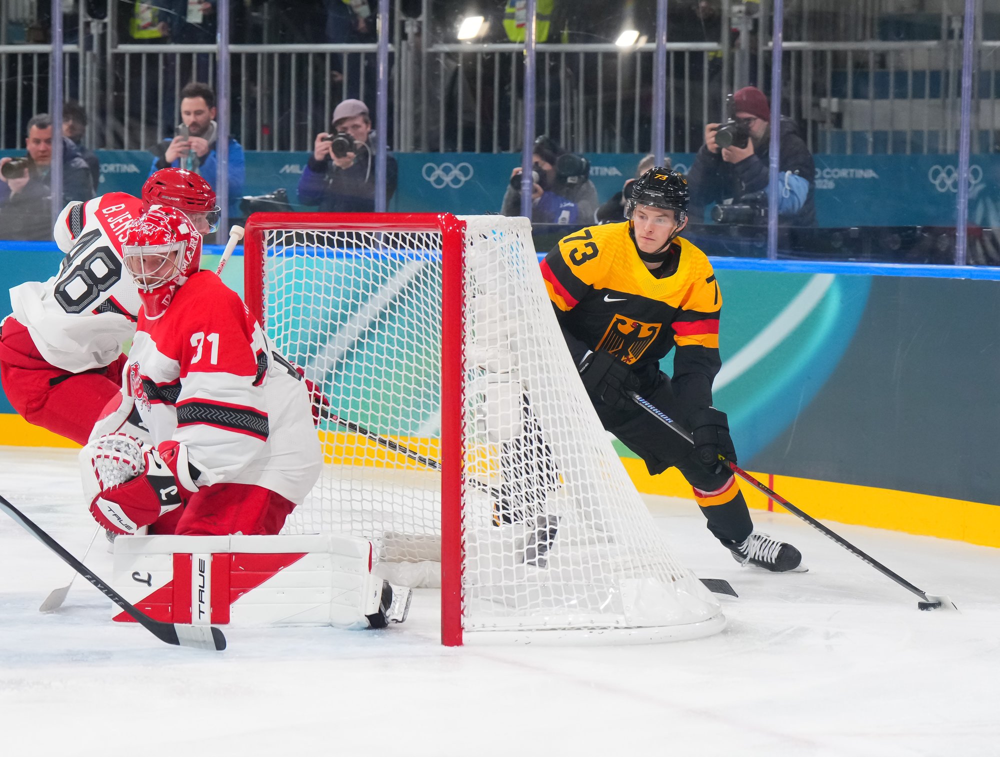 The Danes skated evenly with the Germans and were a little more intense on the puck, and they were rewarded at 13:09. Nikolaj Ehlers got to a puck in the corner and whipped it out front where Oscar Molgaard got his stick on it. The puck dribbled under Grubauer and over the line to tie the game.