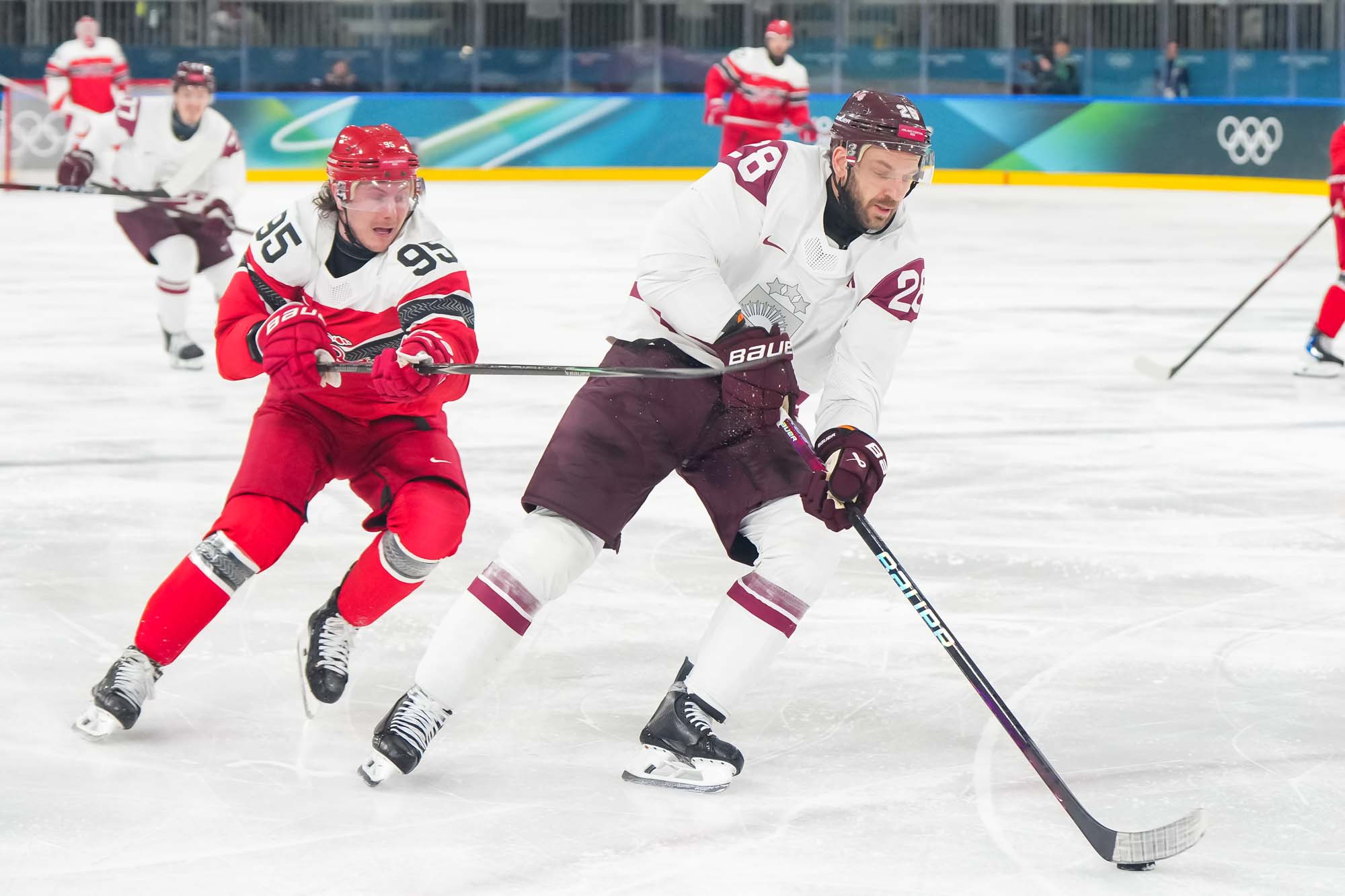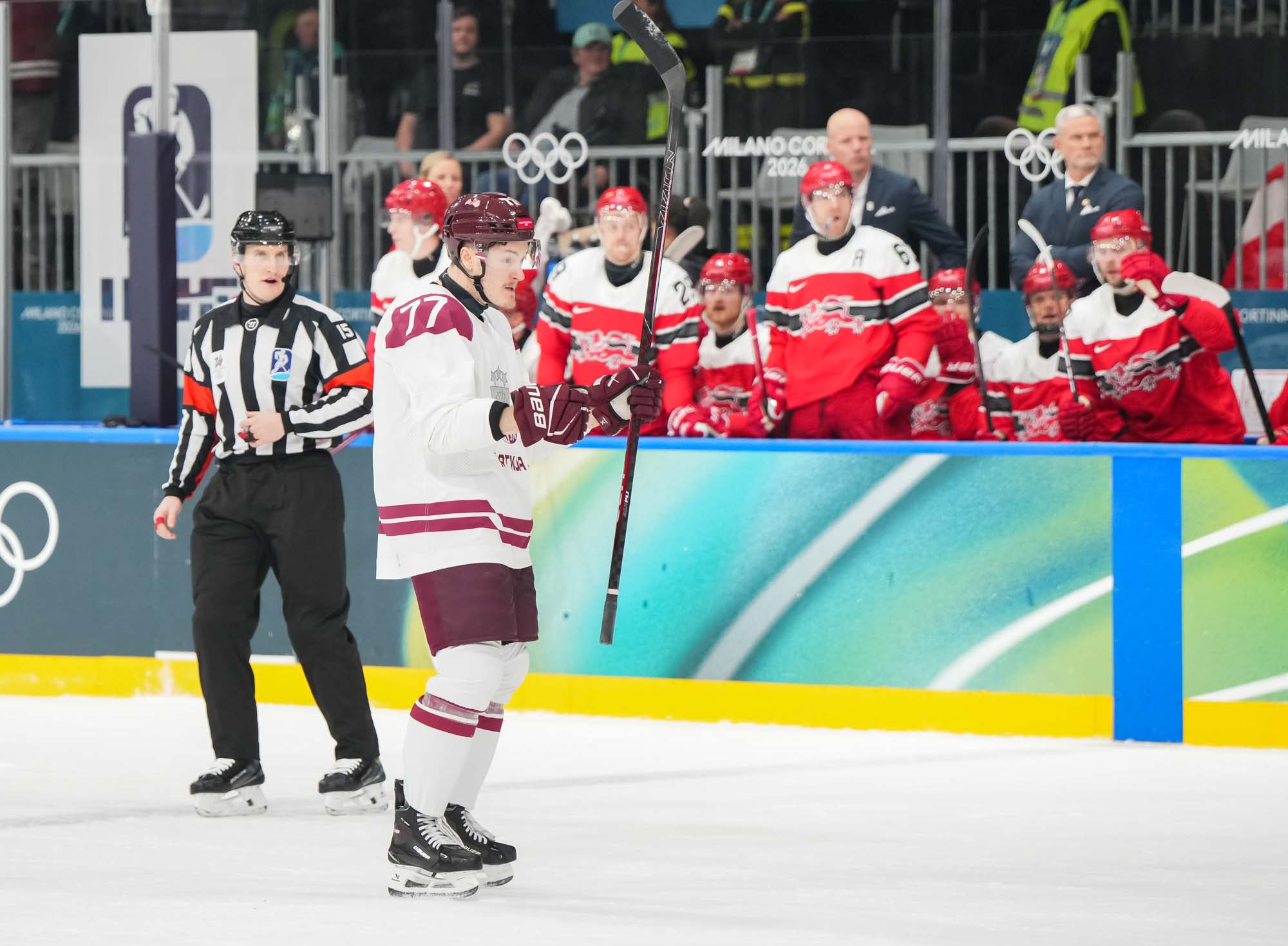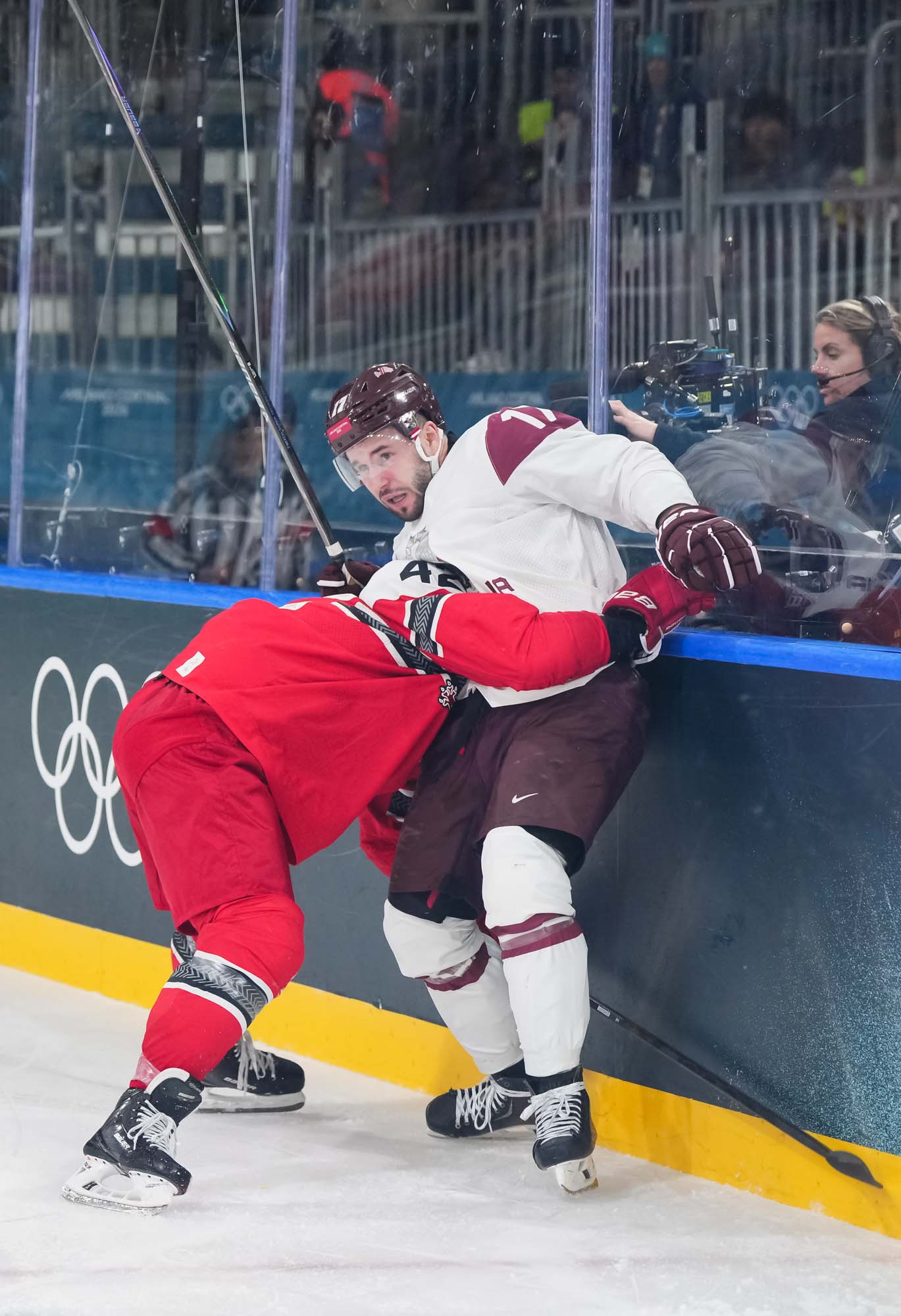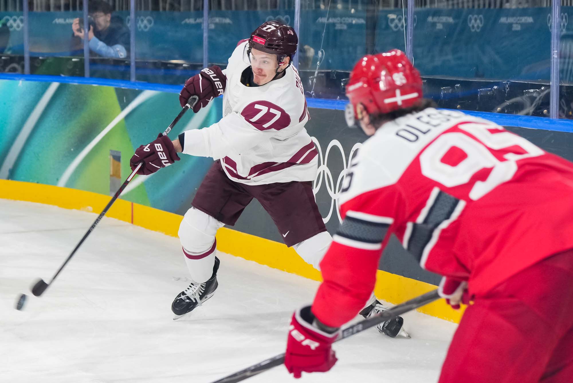 With just 16 seconds on the clock, during a delayed penalty, Kristaps Zile deflected Janis Jaks’s slapshot through a lot of traffic. Andersen never had a chance and Latvia pulled within two after the first period. Eduards Tralmaks also picked up an assist.