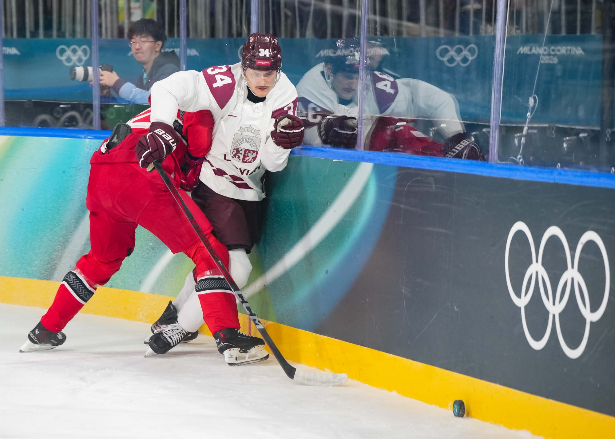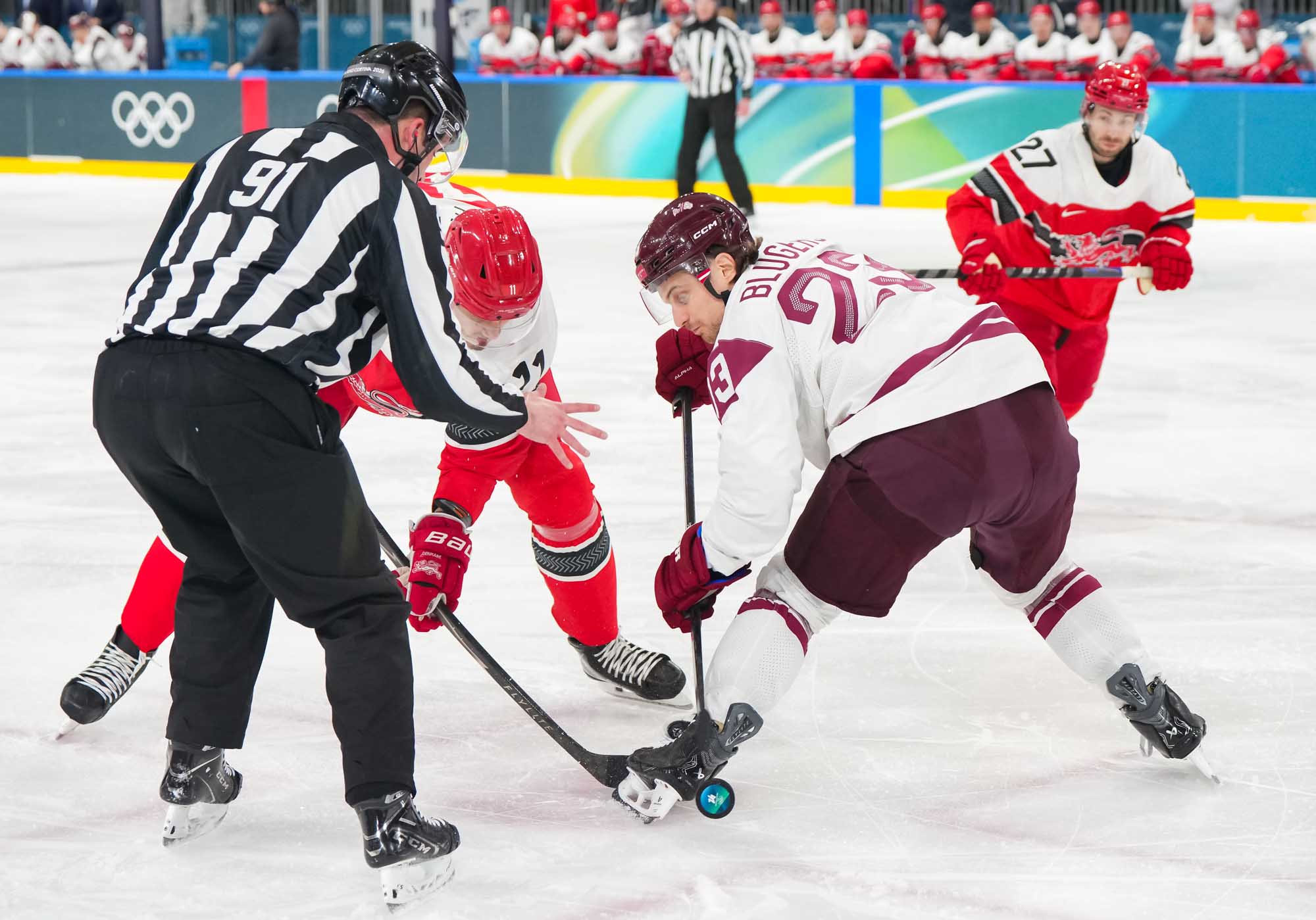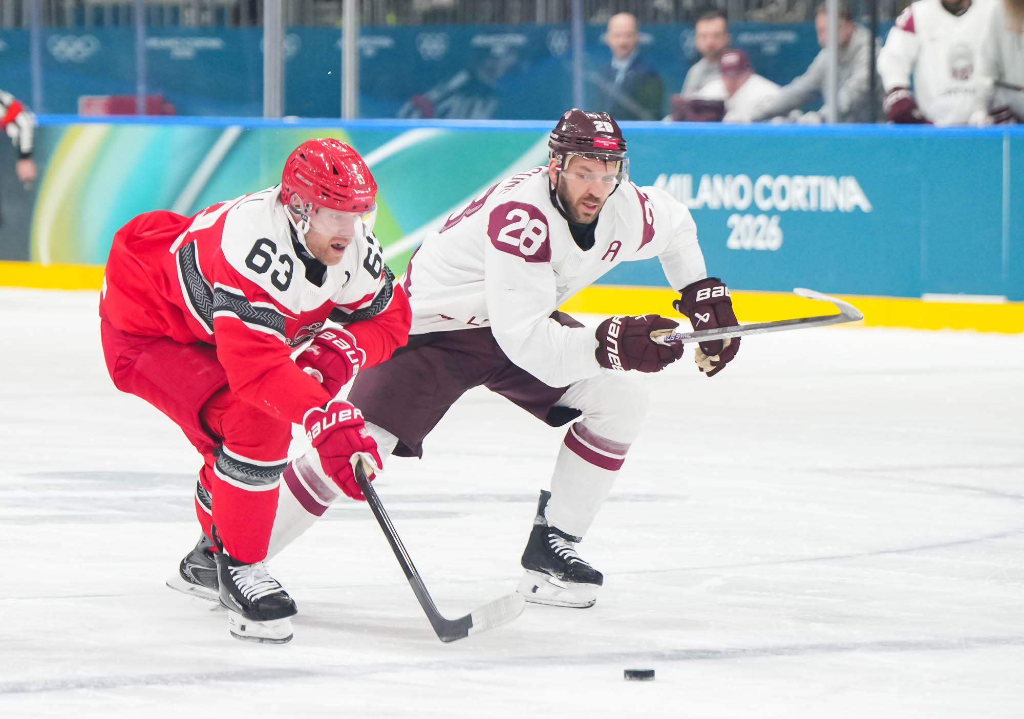 With just 16 seconds on the clock, during a delayed penalty, Kristaps Zile deflected Janis Jaks’s slapshot through a lot of traffic. Andersen never had a chance and Latvia pulled within two after the first period. Eduards Tralmaks also picked up an assist.