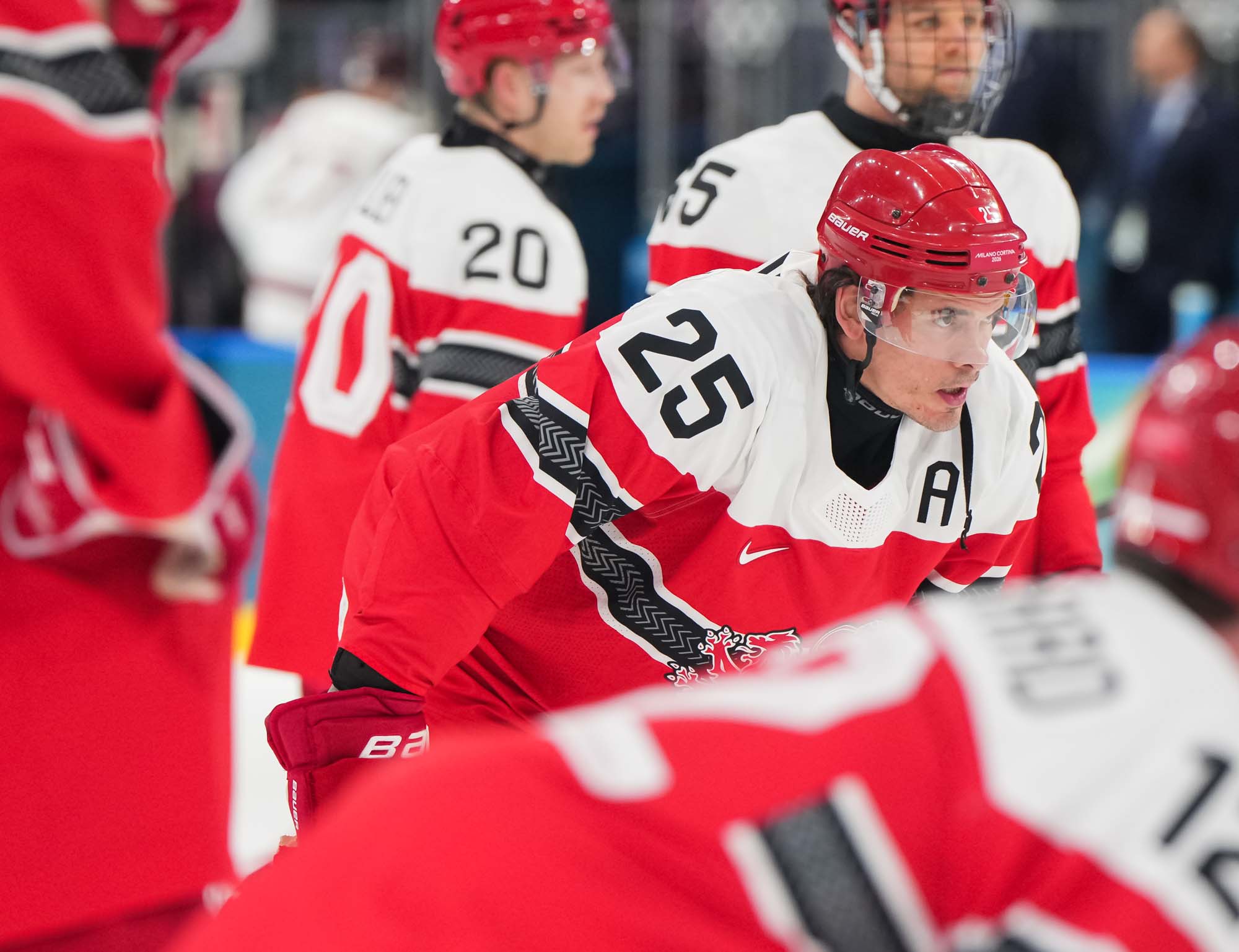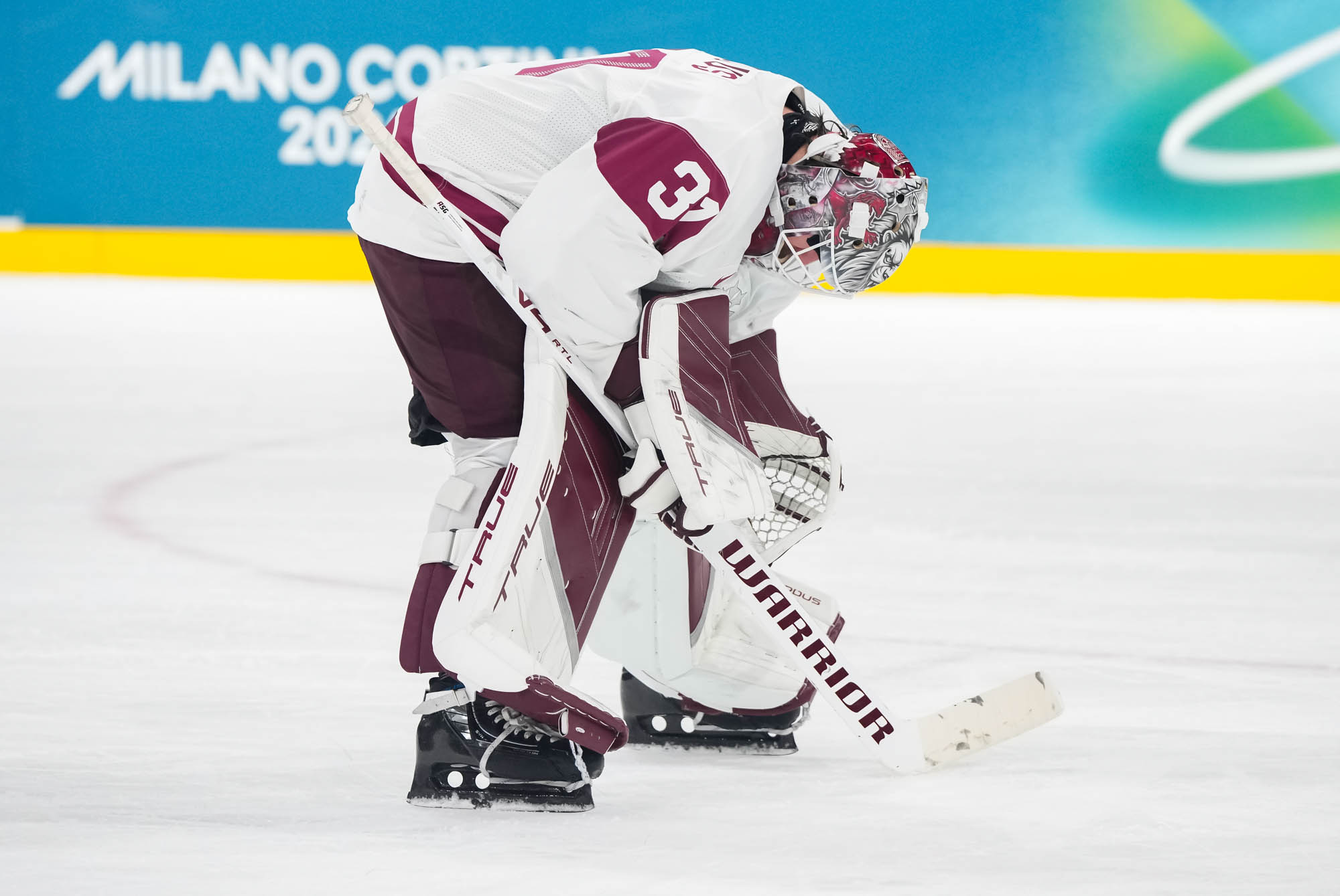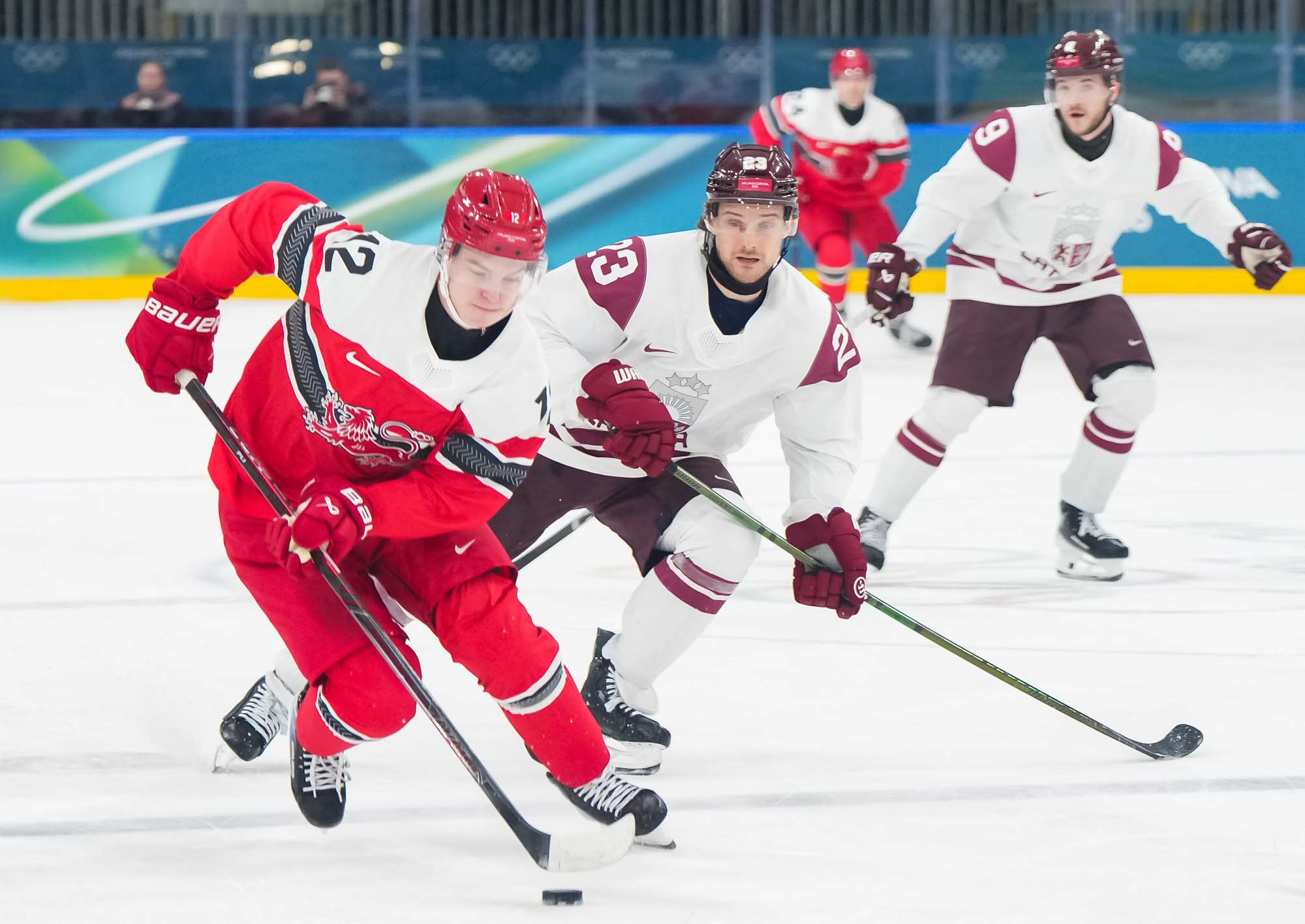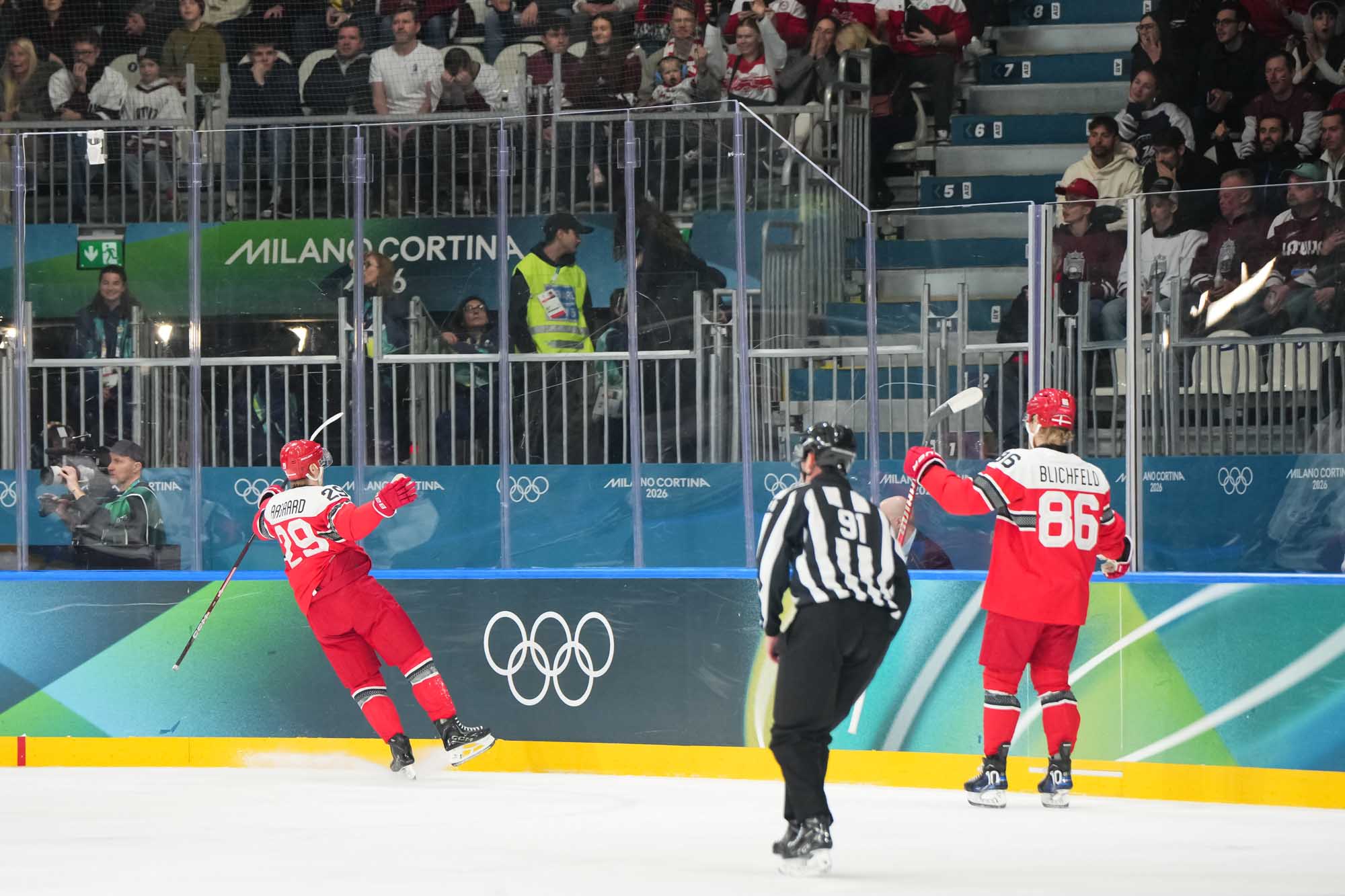 With just 16 seconds on the clock, during a delayed penalty, Kristaps Zile deflected Janis Jaks’s slapshot through a lot of traffic. Andersen never had a chance and Latvia pulled within two after the first period. Eduards Tralmaks also picked up an assist.