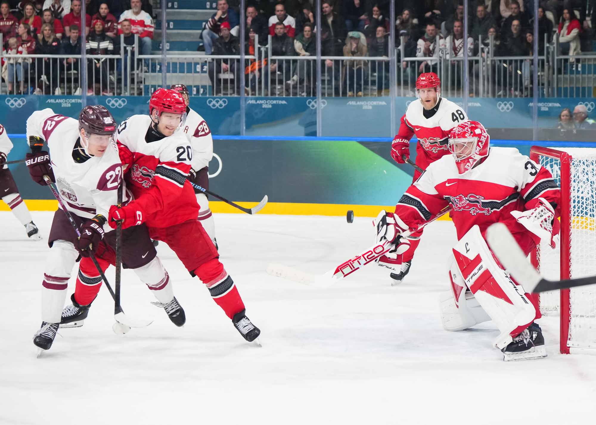 For Denmark, the third period was a matter of survival. Latvia sent in waves of attacks and had puck possession. All in all, Latvia fired 12 shots in the period but Andersen, with the help of Danish defense and the goal posts, kept the puck out of the net.