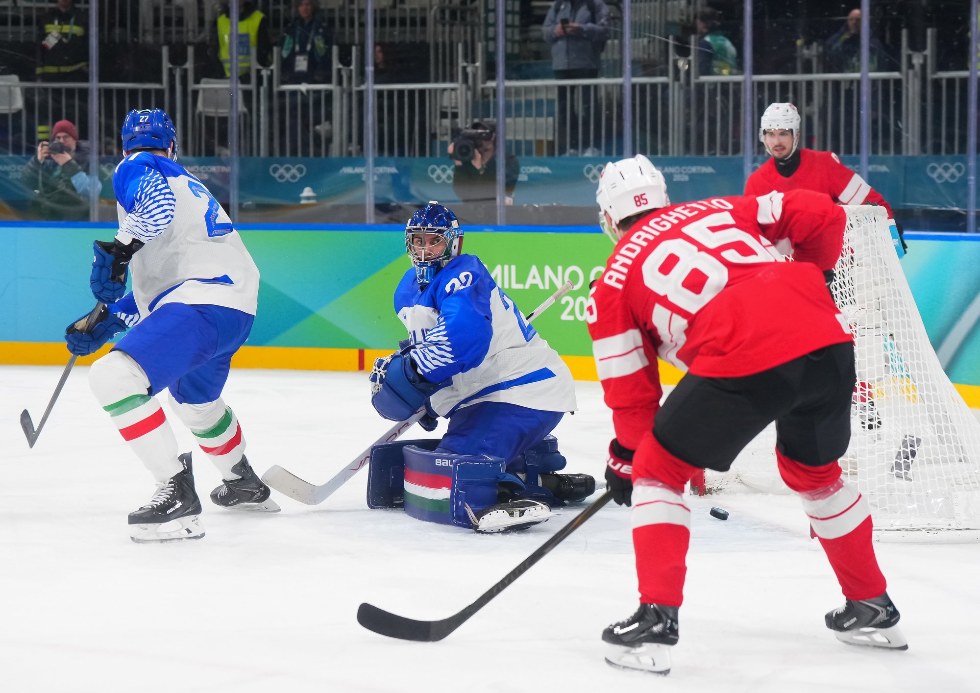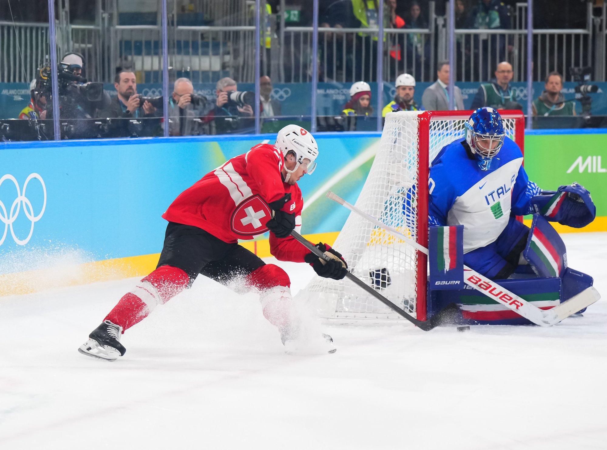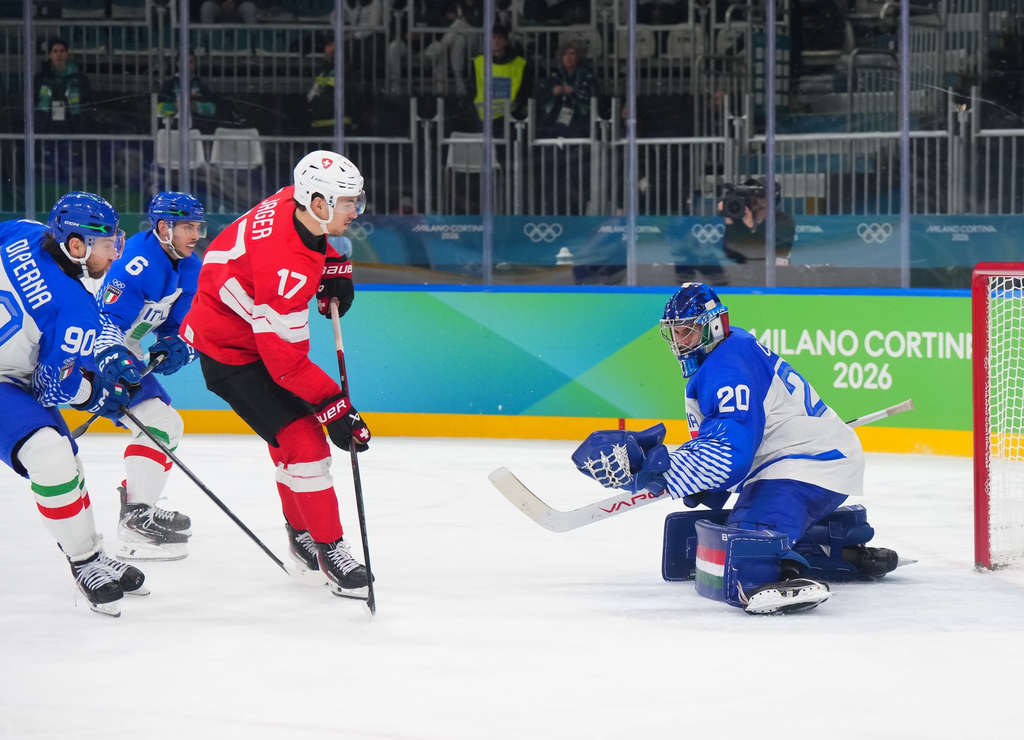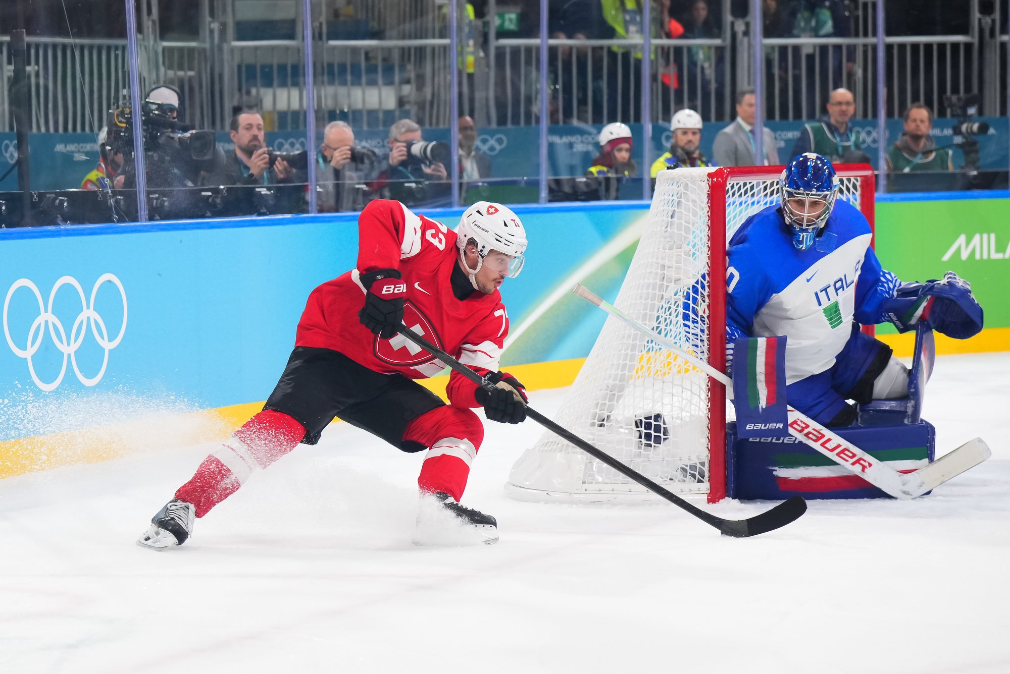 Switzerland outshot Italy 51-20. It was a fine display of patient hockey based on defence and puck possession at the Milano Rho Ice Hockey Arena. Despite a hard-working effort, the Italians got shut out for the second straight game.
