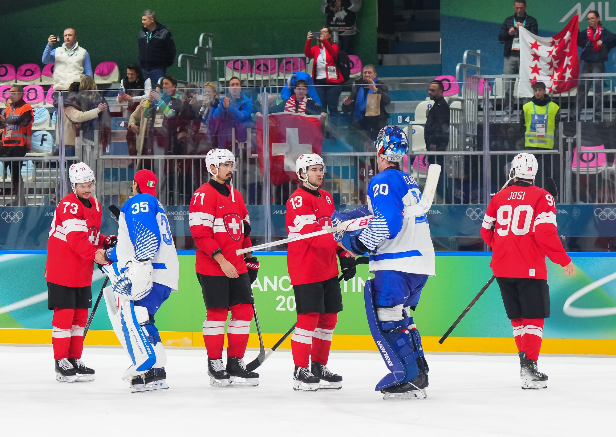 The Swiss will face the Olympic champion Finns in the quarter-finals. Underdog Italy's journey ends here.