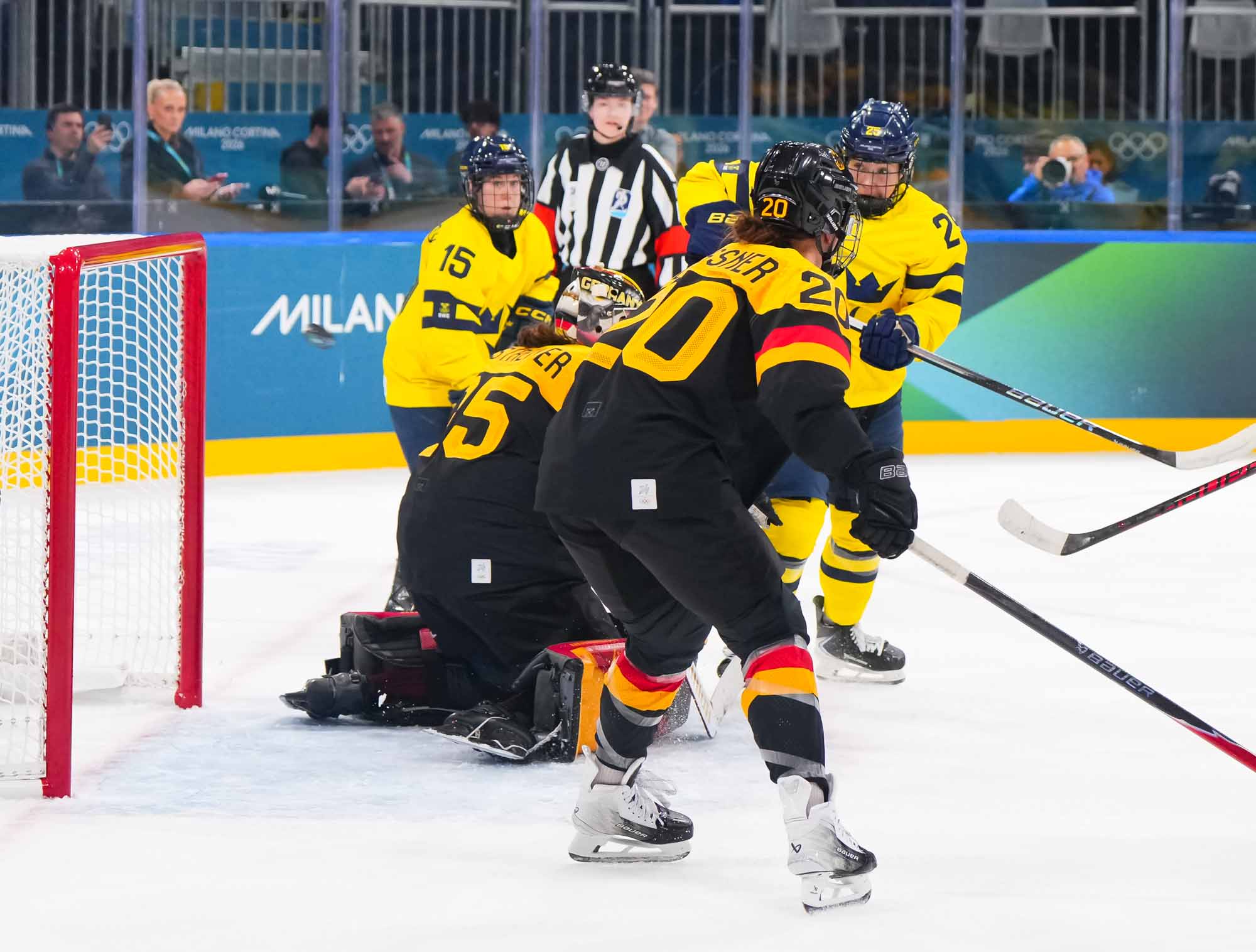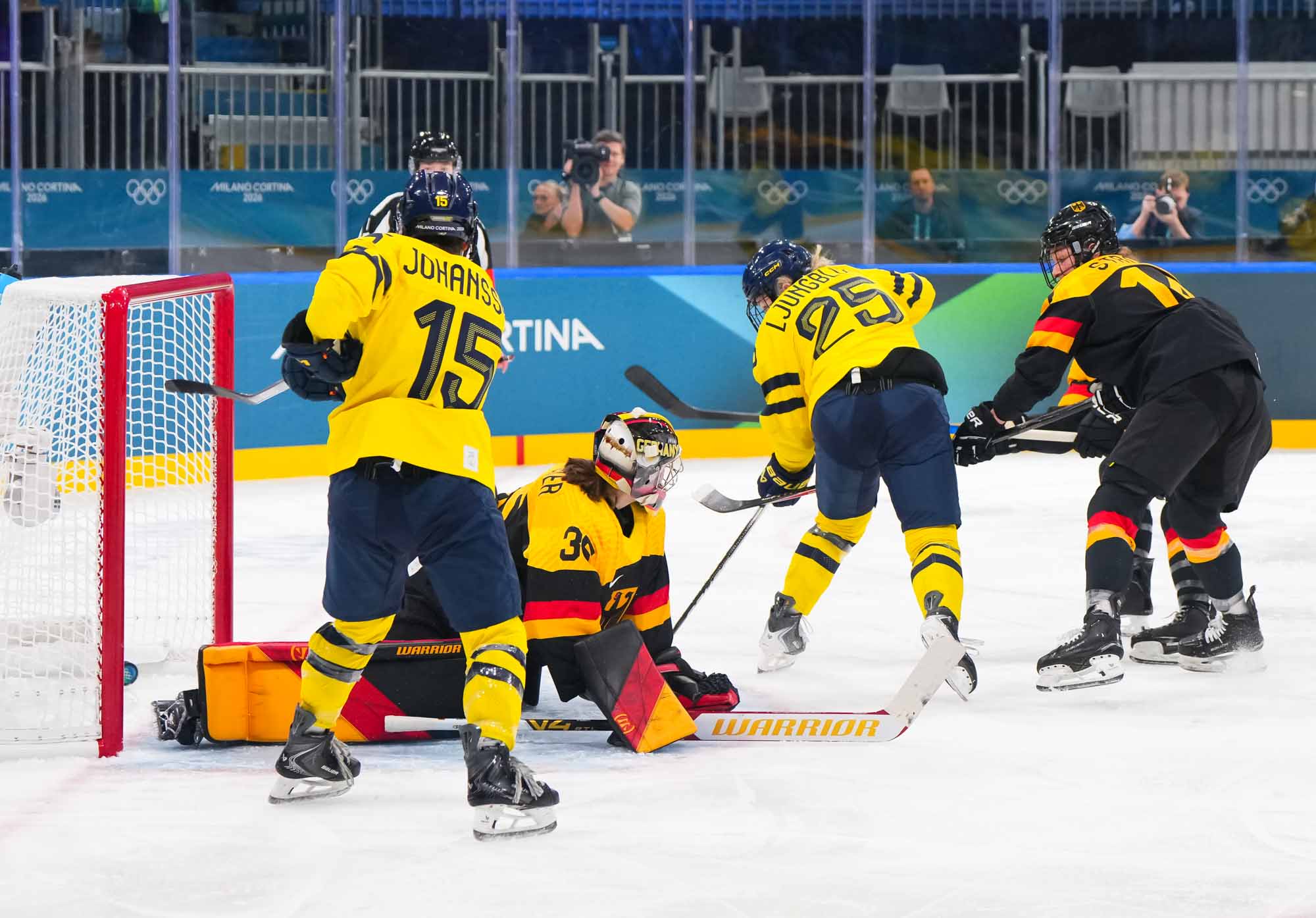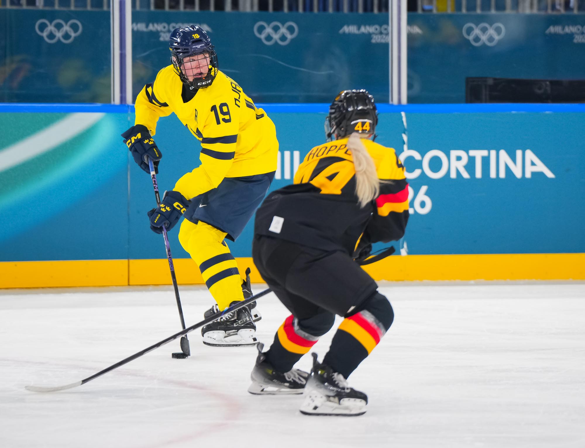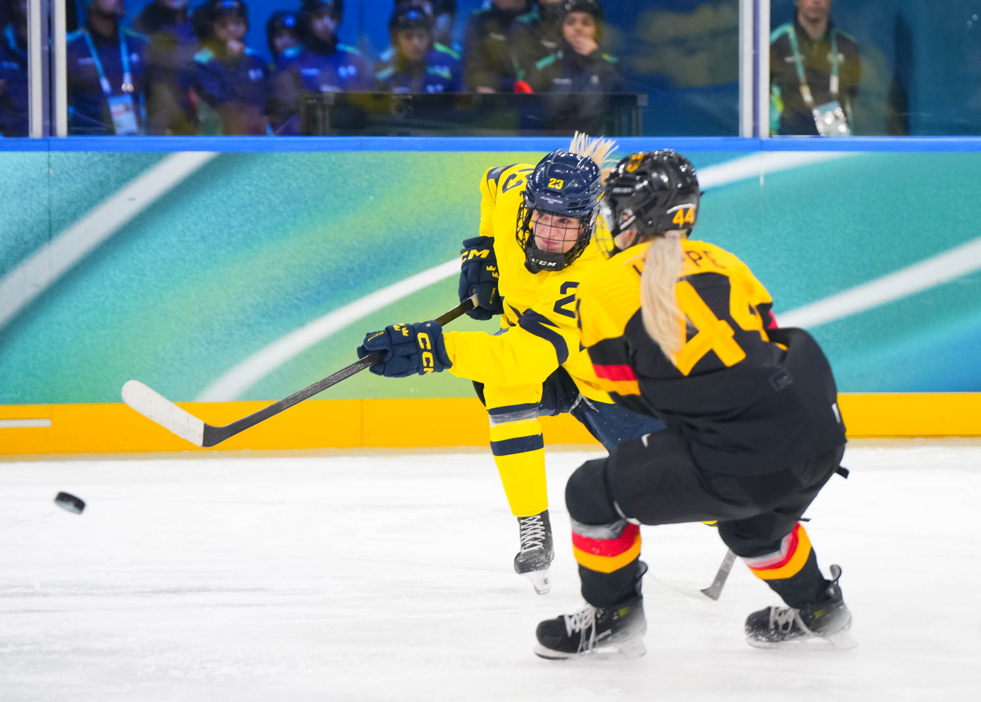 The Germans were on the scoreboard first, converting a power play at 8:30. Defender Katarina Jobst-Smith, who led all players with 25:34 of ice time, snapped a shot off the crossbar and in after Mira Jungaker failed to get the puck out. It was their first shot on goal in the game. They had a nice chance to make it 2-0 during a Sweden power play, but Franziska Feldmaier was checked off the puck by Jungaker.