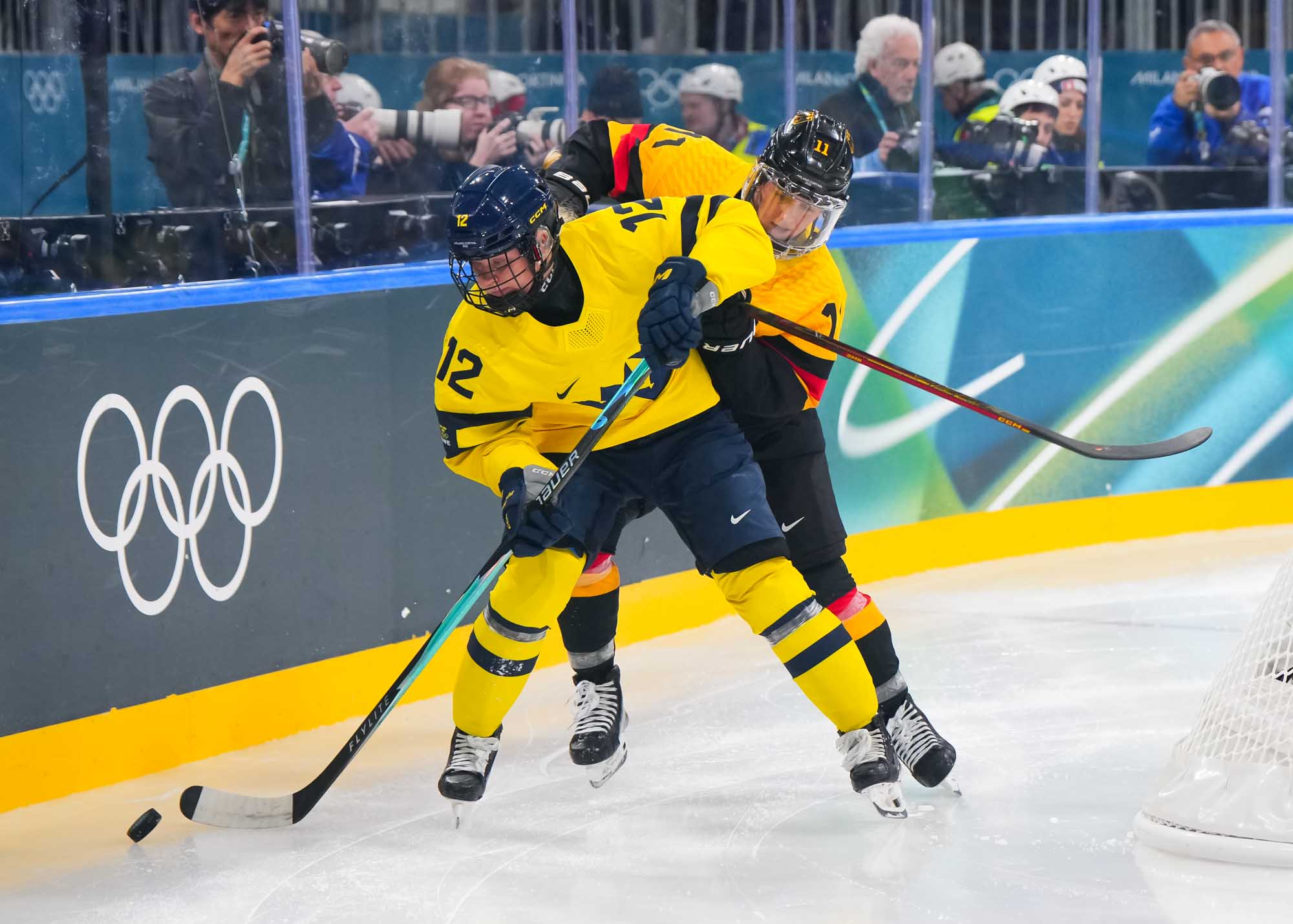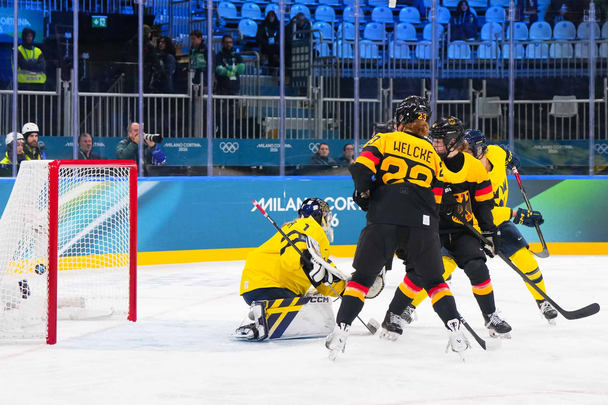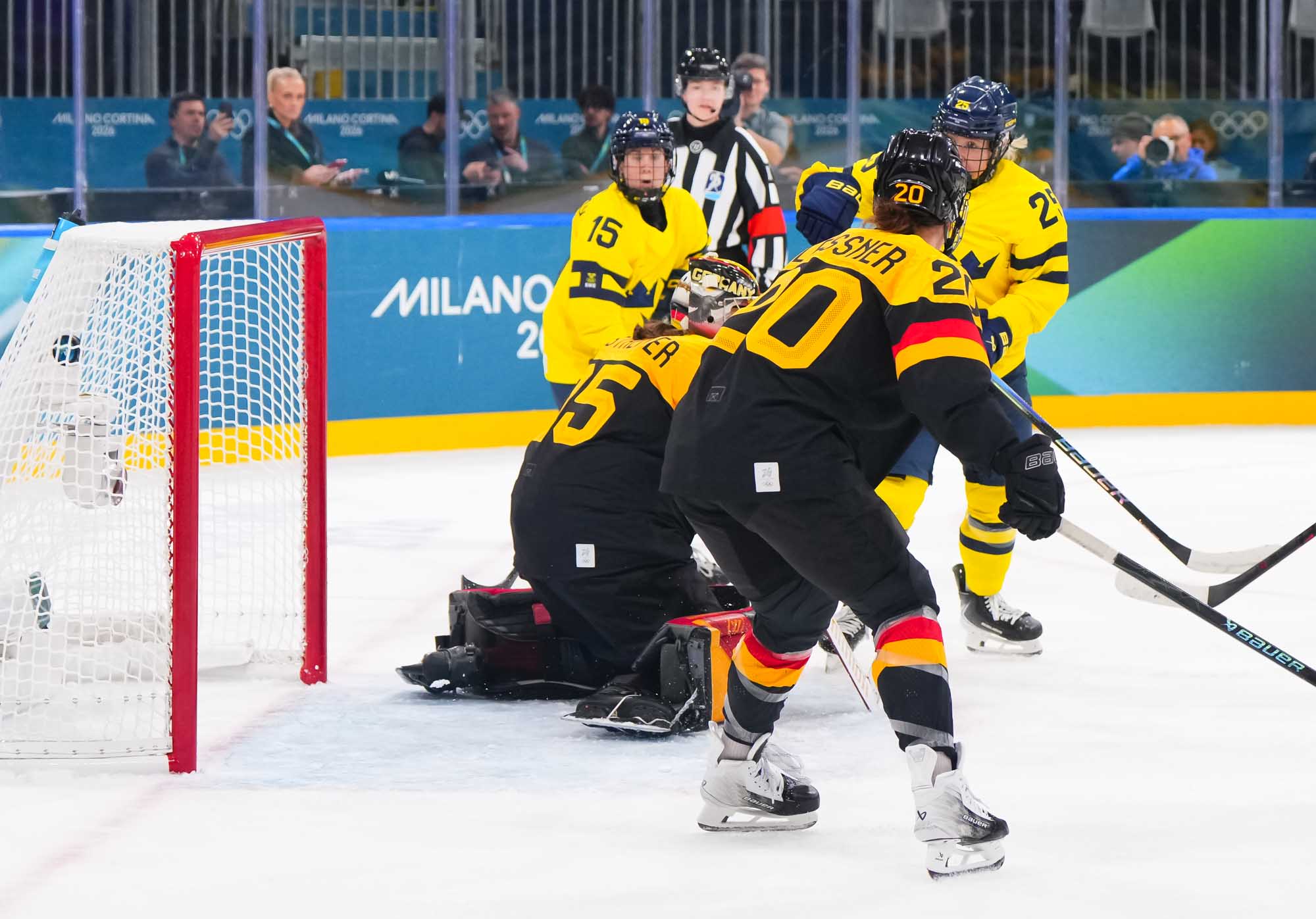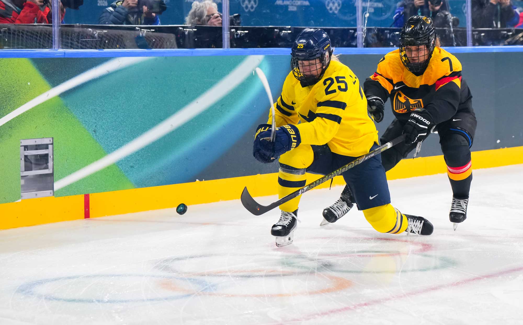 The Germans were on the scoreboard first, converting a power play at 8:30. Defender Katarina Jobst-Smith, who led all players with 25:34 of ice time, snapped a shot off the crossbar and in after Mira Jungaker failed to get the puck out. It was their first shot on goal in the game. They had a nice chance to make it 2-0 during a Sweden power play, but Franziska Feldmaier was checked off the puck by Jungaker.