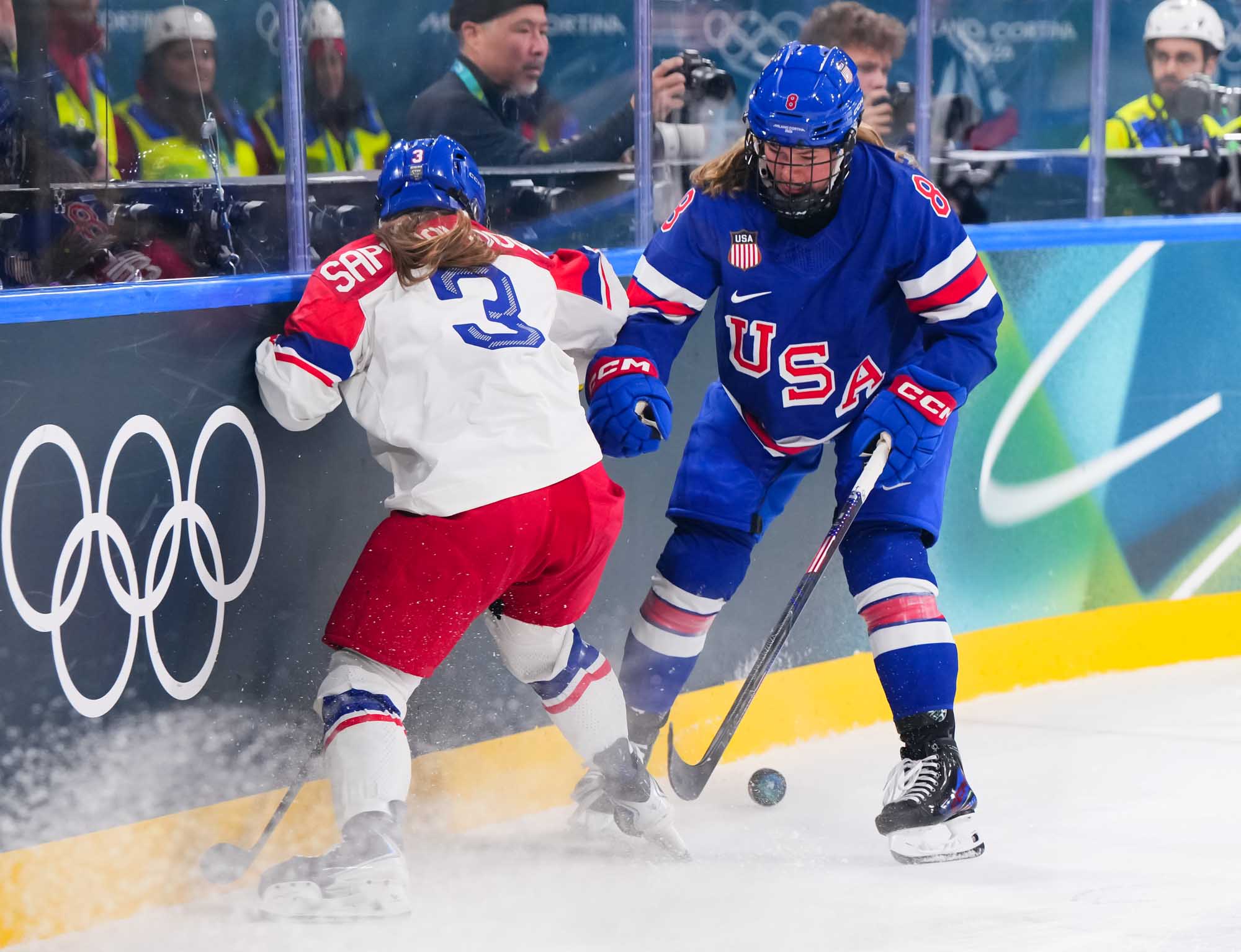 The result was a solid and goalless game until late in the period, when Dominika Laskova took a penalty for a head hit. Sure enough, the potent American attack capitalized at 15:55. Megan Keller’s point shot was tipped in front by Alex Carpenter, who scored her ninth career goal spanning three Olympics.