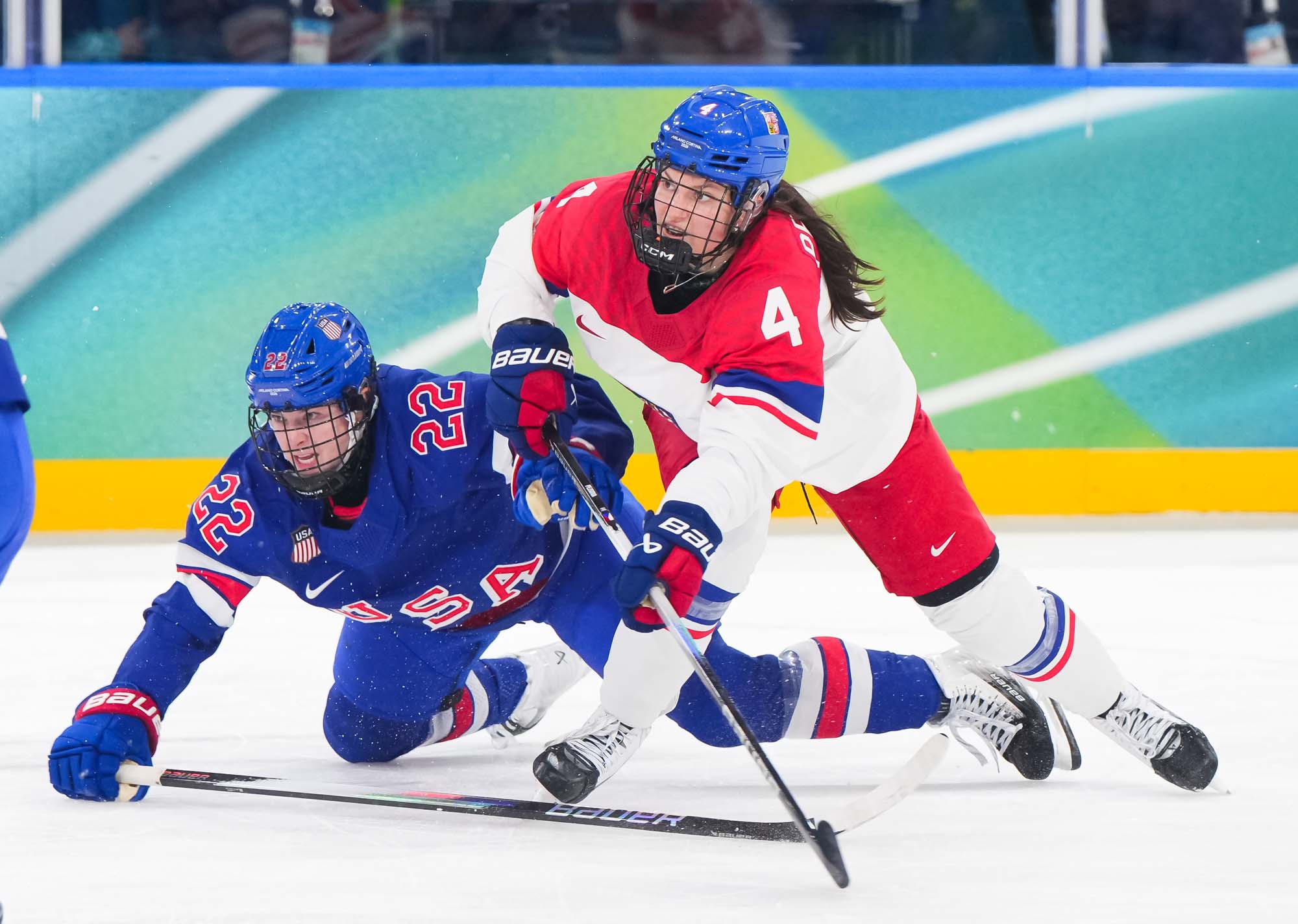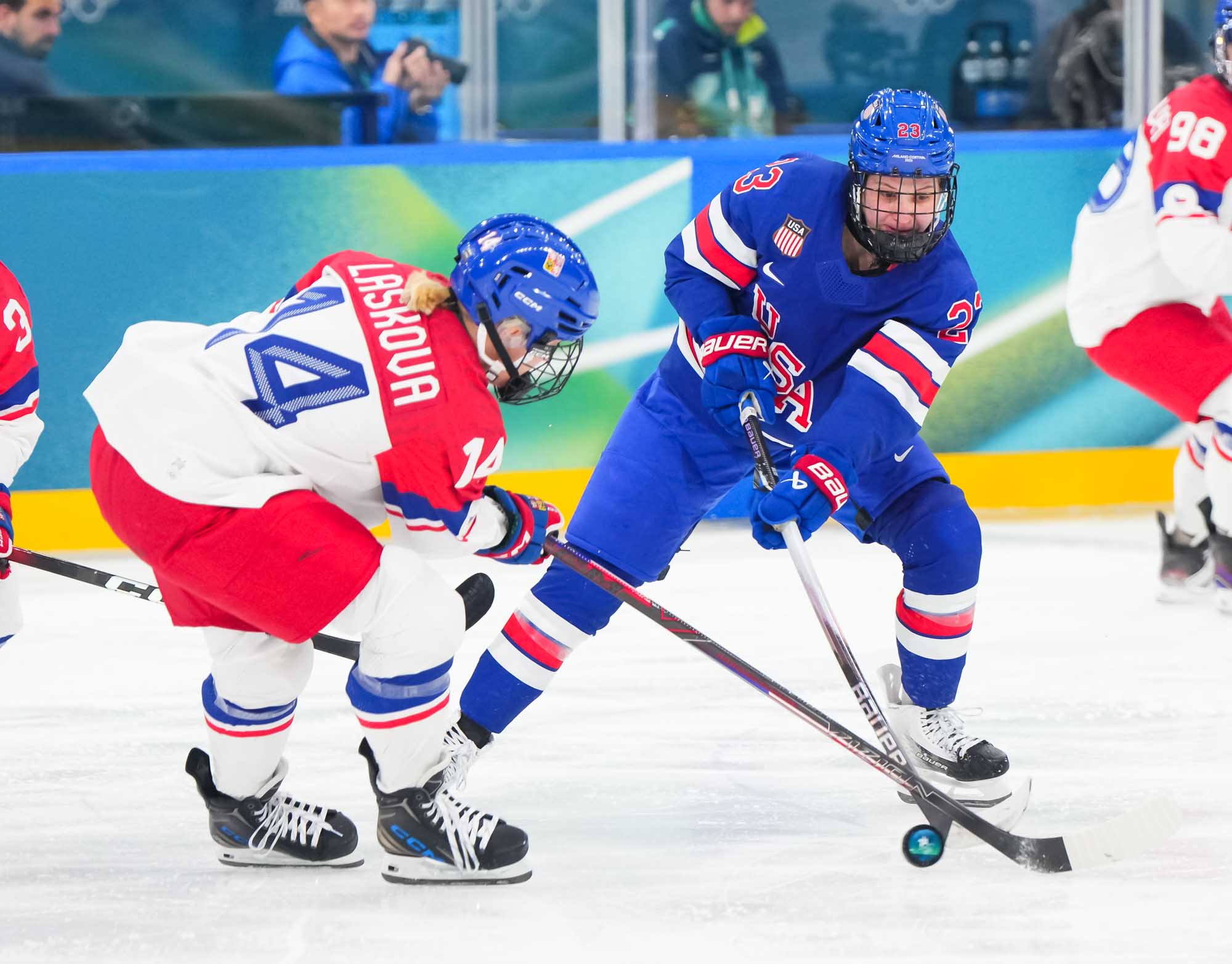 Moments later, Peslarova made a sensational save off Janecke, but the Czechs couldn’t clear the puck, and the U.S. made it 2-0 at 3:13 when Joy Dunne converted a pass from Janecke.