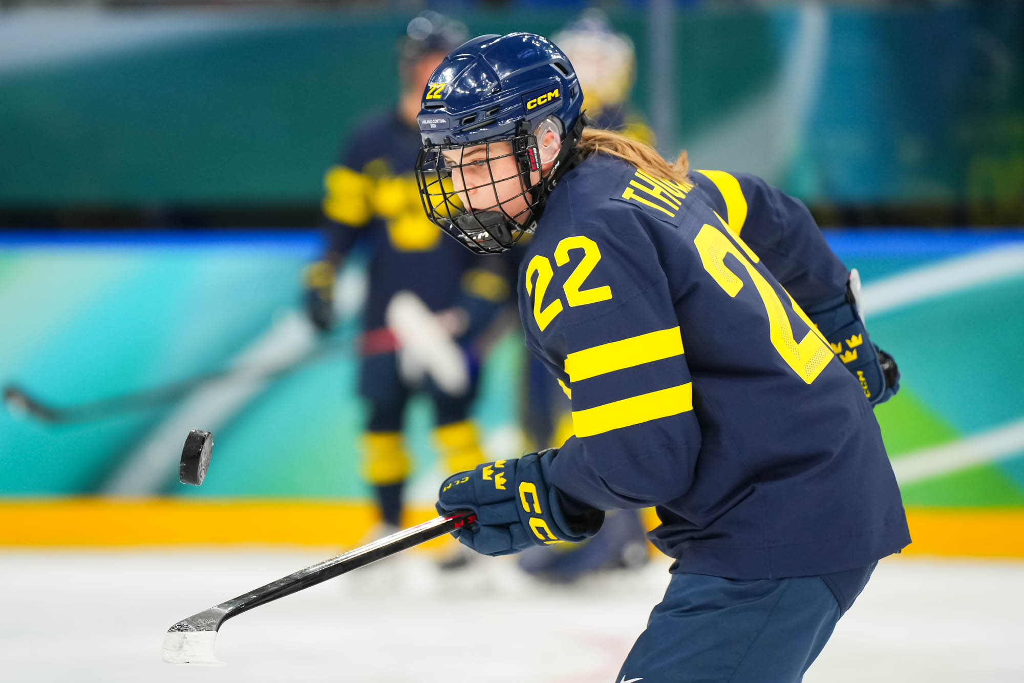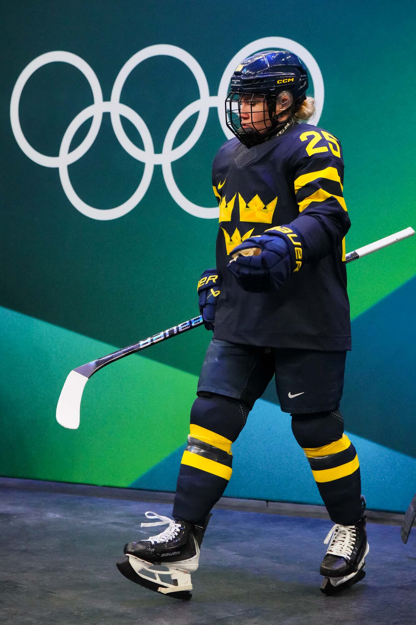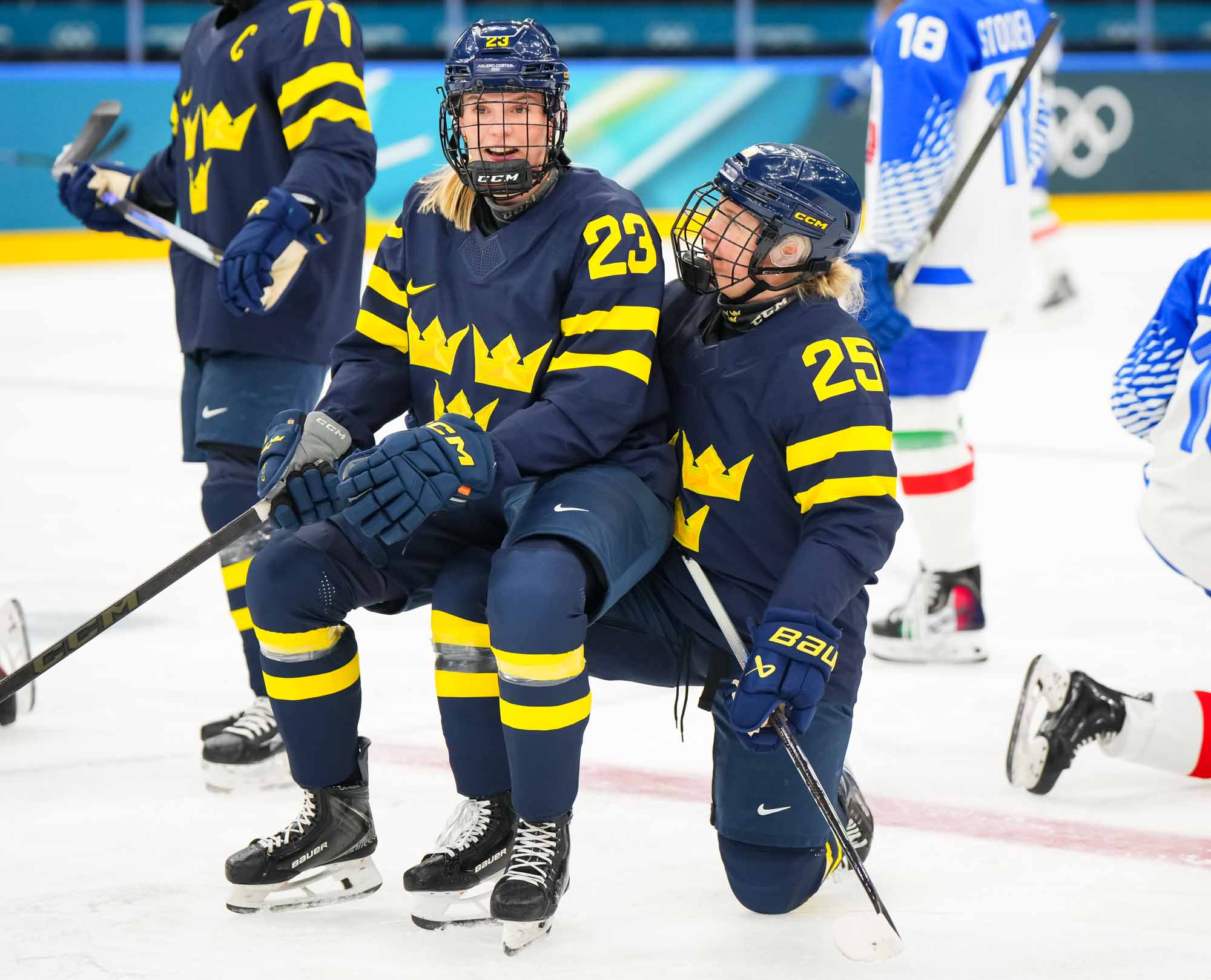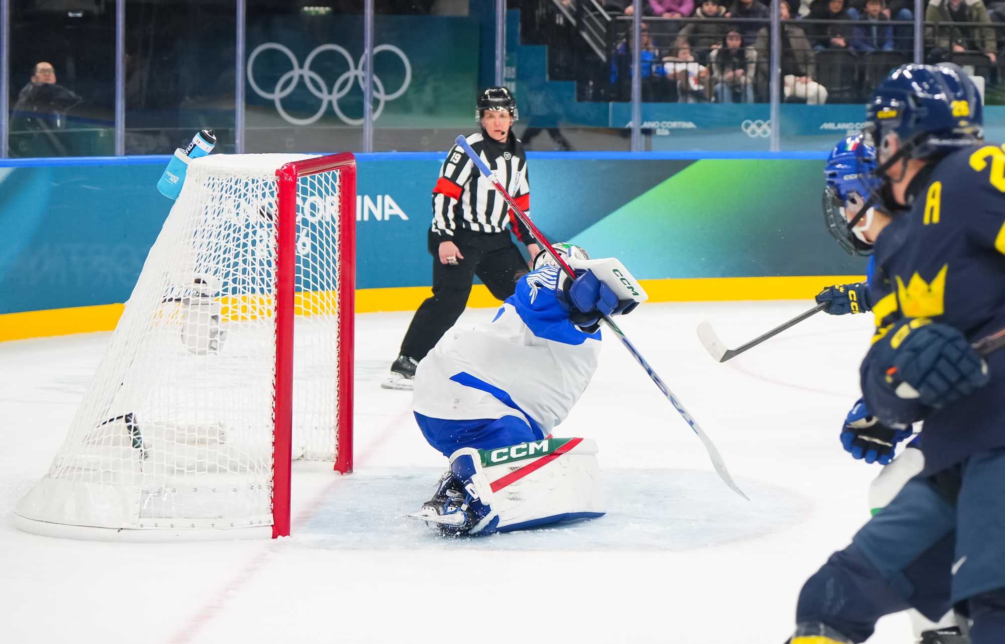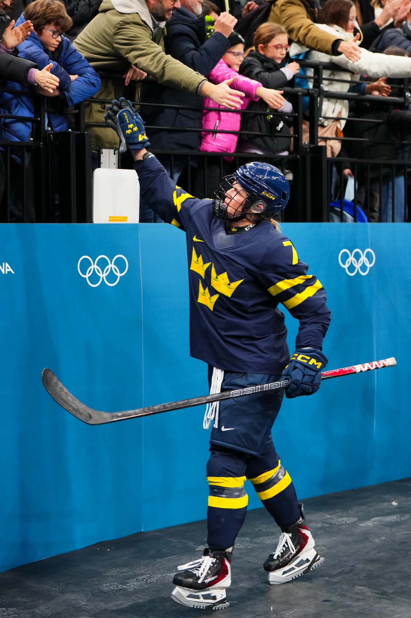 The opening period was evenly played, but the better chances were against Martina Fedel, who was the winning goalie against France two days ago. Nevertheless, the Swedes opened the scoring midway through the opening period. Hanna Thuvik fought off a check behind the net and got the puck to Jessica Adolfsson, and she snapped a shot high to the short side at 9:50 to make it a 1-0 game. It was her first career goal at the Olympics, having been held goalless in five games in 2022.