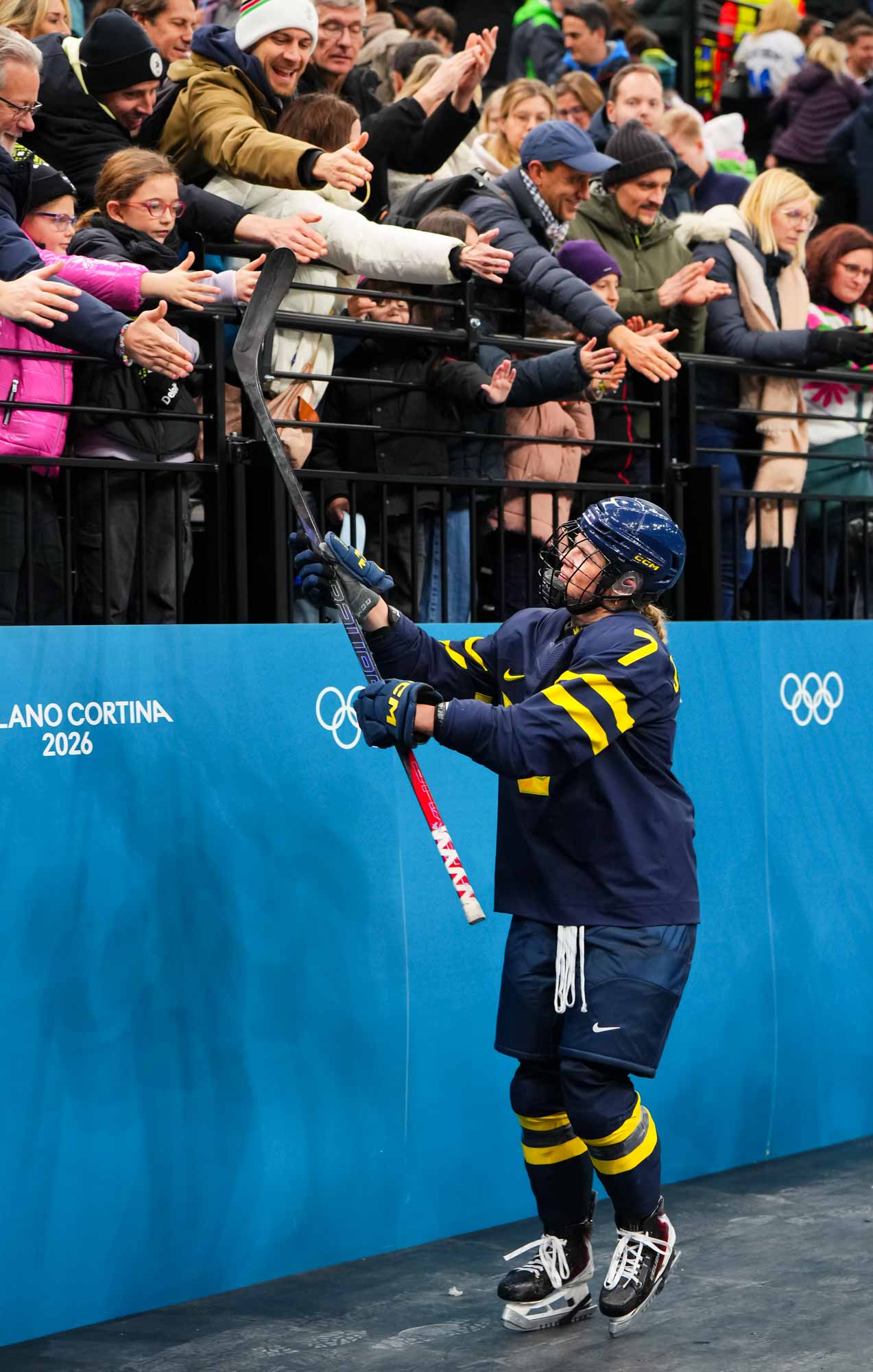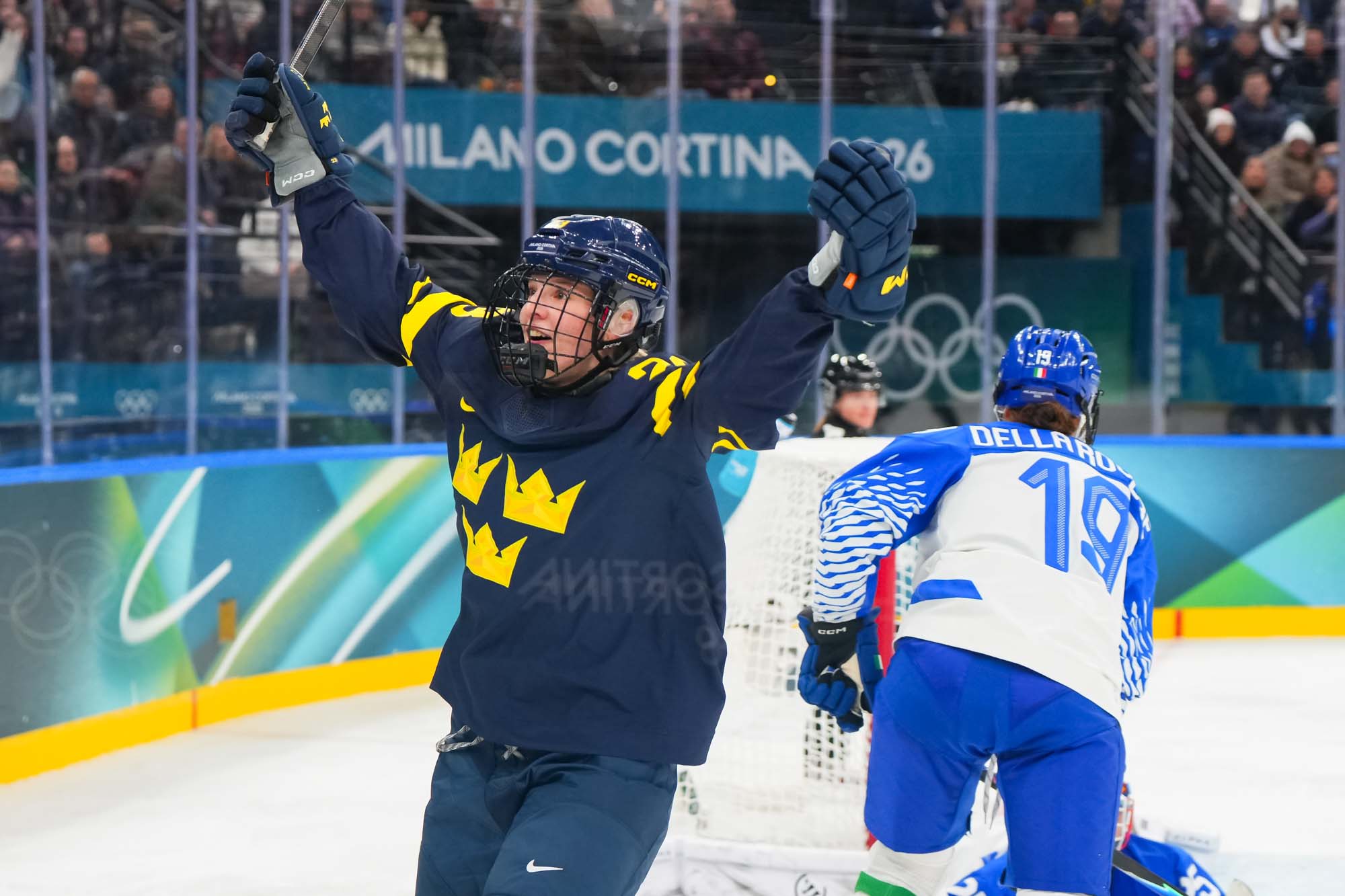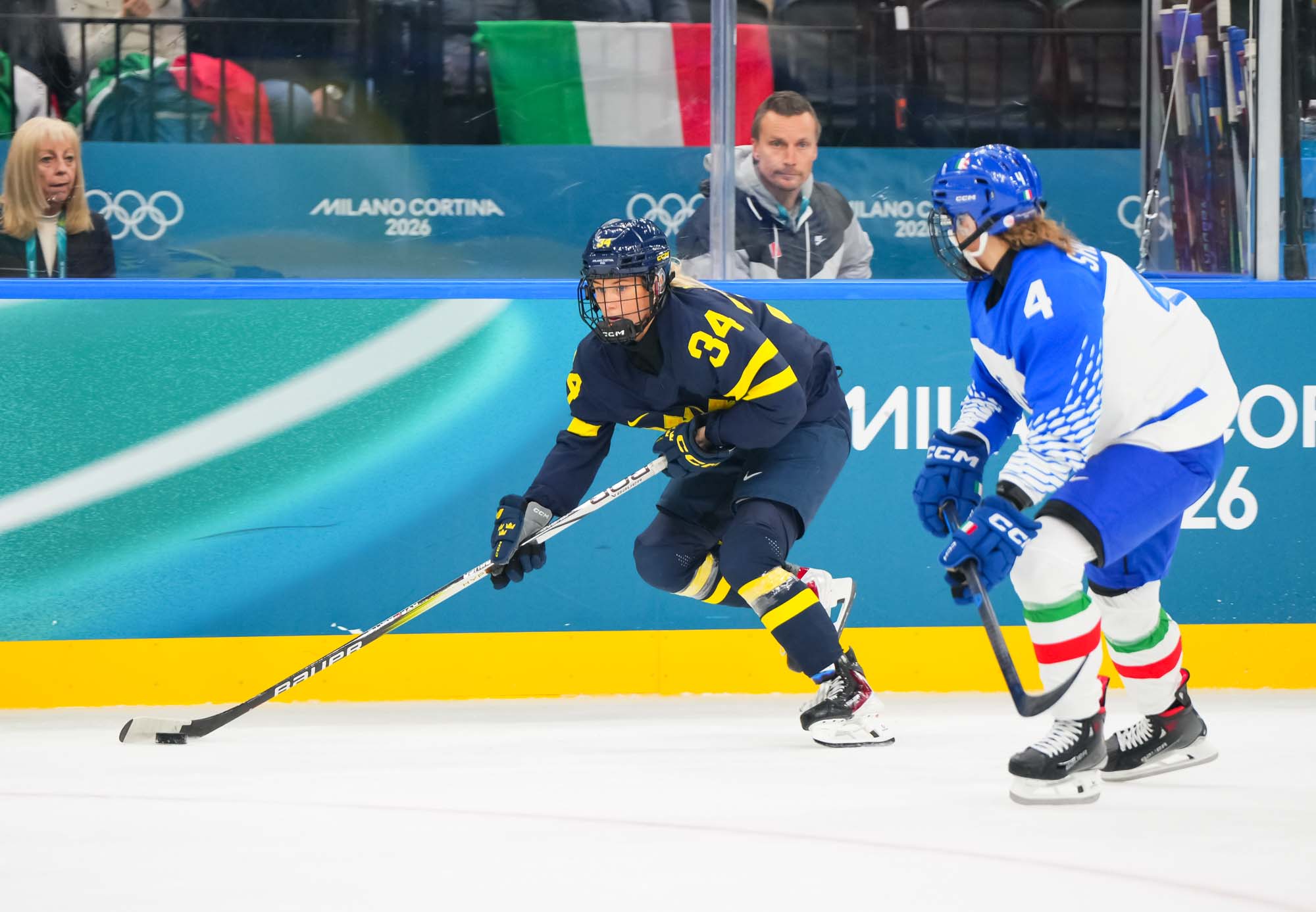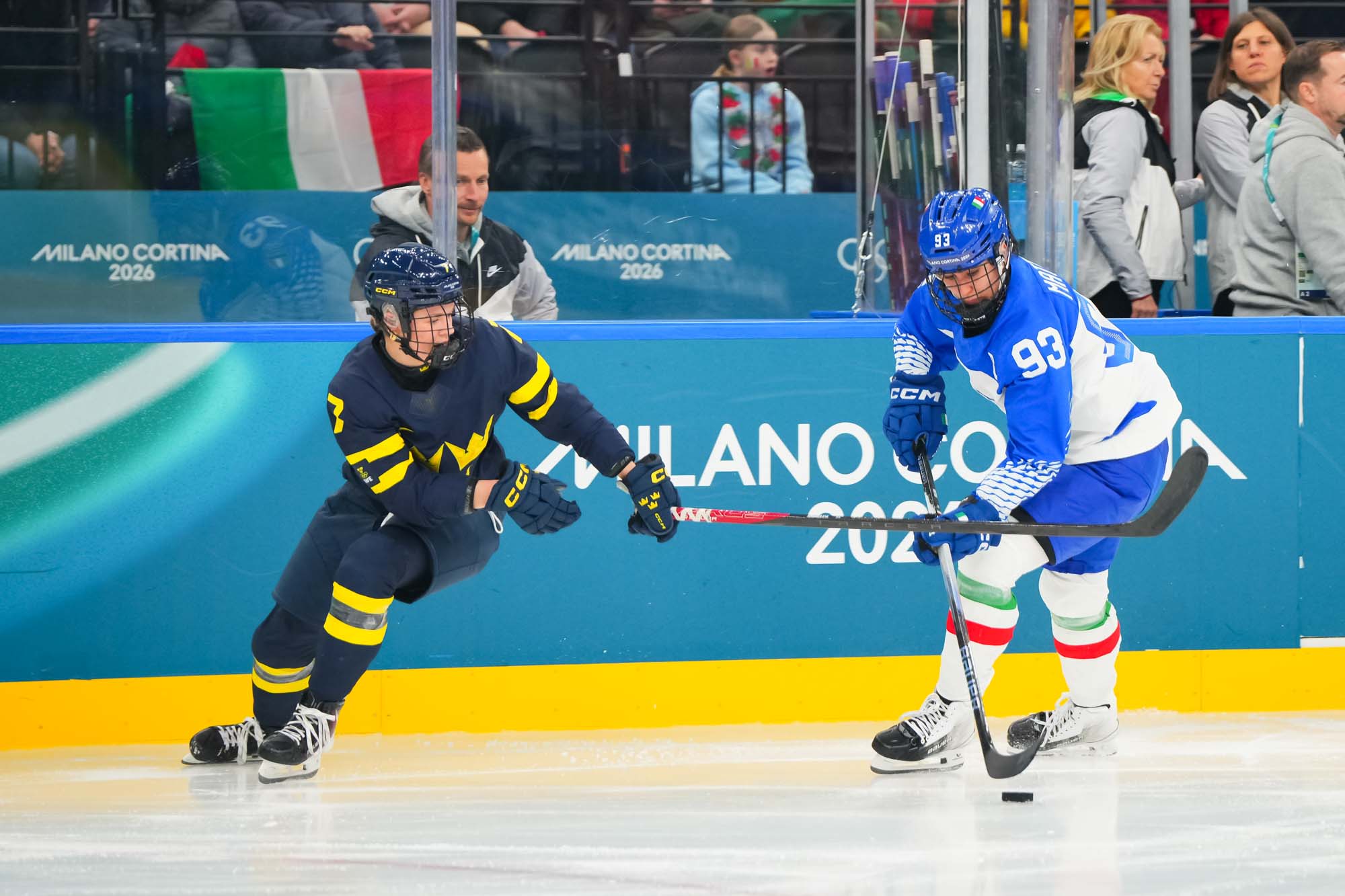 Sweden scored three goals in the second period and pulled away to defeat Italy to the tune of 6-1 this afternoon before a raucous crowd of 10,727. Thea Johansson had two goals and an assist, and she is now tied with German Laura Kluge for the tournament scoring lead with four points through two games.