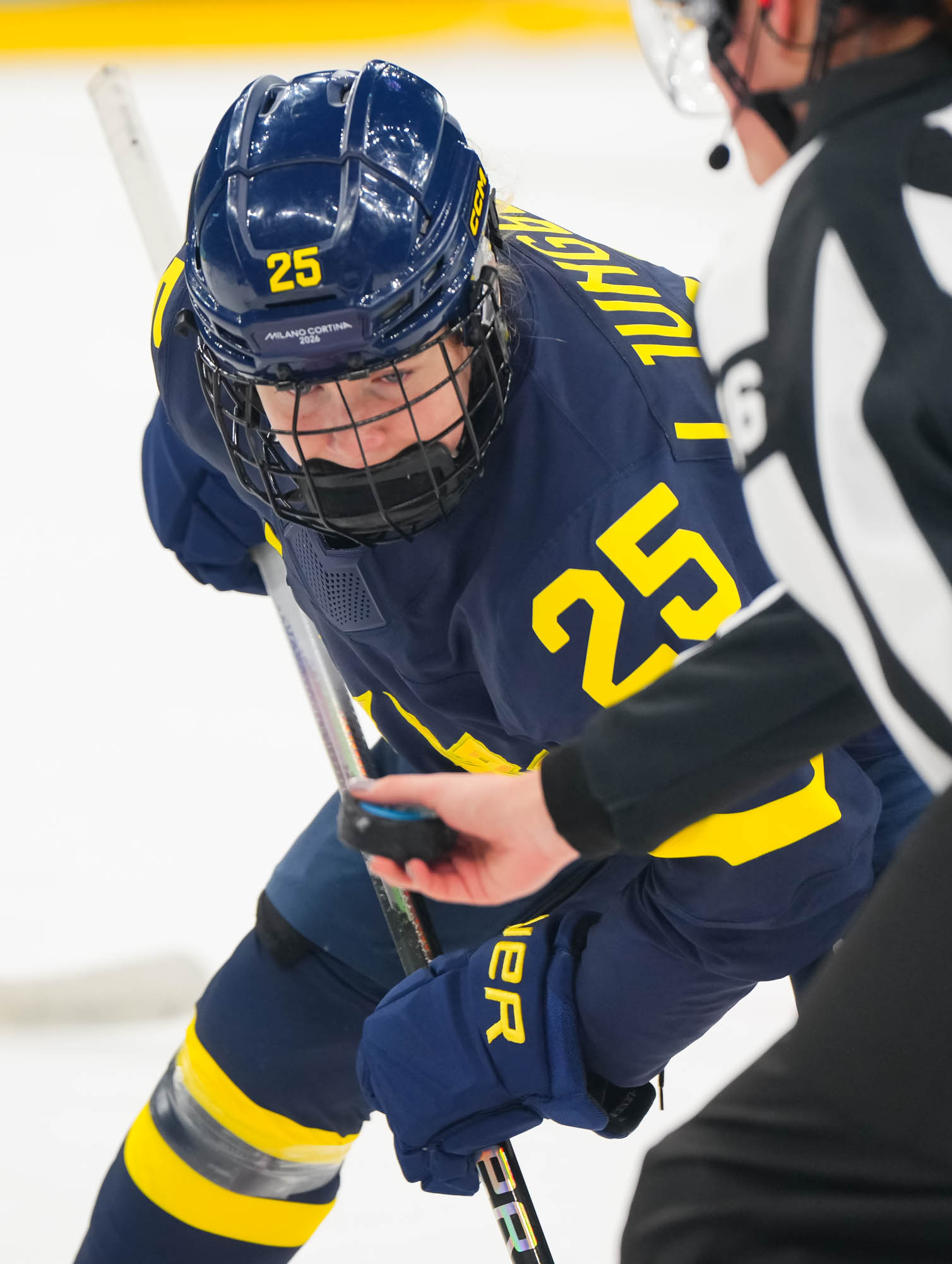 The Swedes took control in the second, however, scoring twice in the middle part of the period. They made it 2-0 at 9:36 off a coast-to-coast rush from Sofie Lundin. She finished with a hard shot to the far side from the top of the faceoff circle.