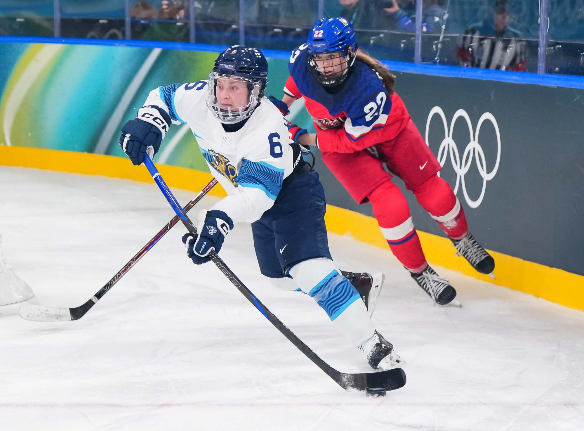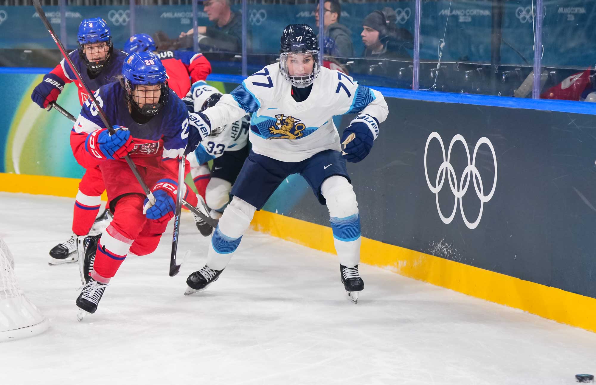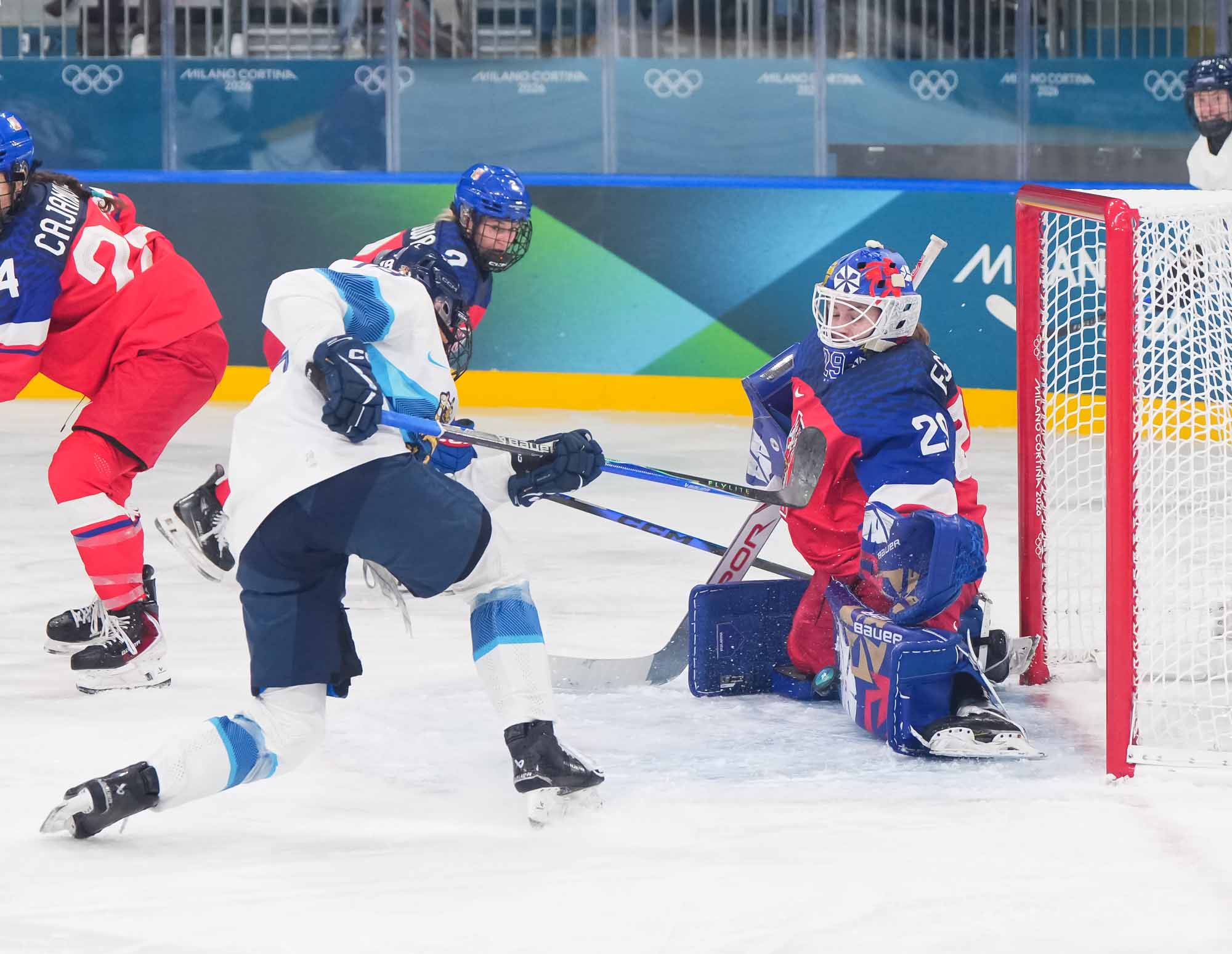 Suomi had a great chance to tie the game early in the second when Michelle Karvinen came out of the penalty box to take a breakaway pass. She was stoned by a shoulder save from Peslarova. At the other end, Mlynkova burst up the middle, blowing by three Finns and charging in on goal where she was denied by Keisala.