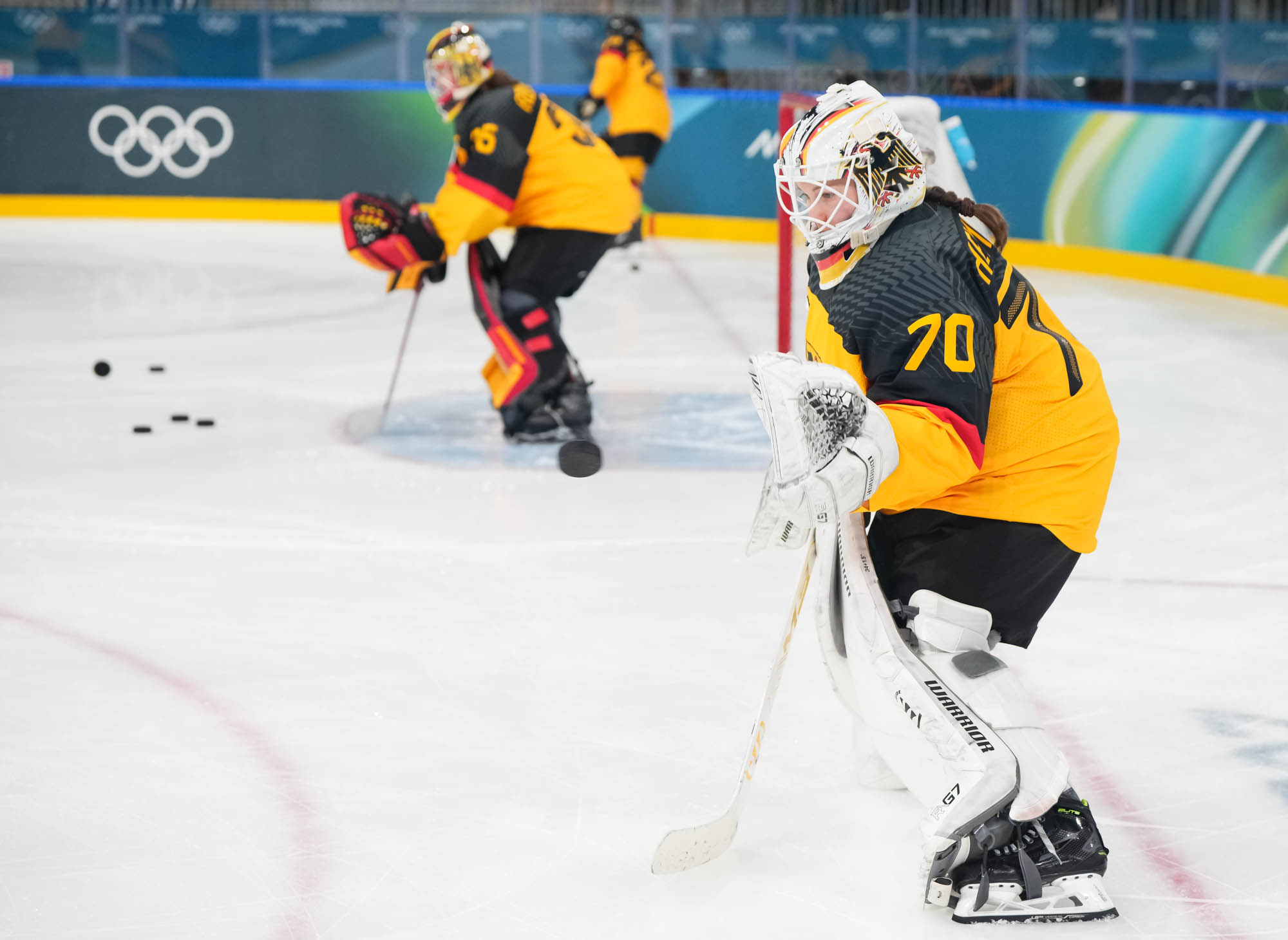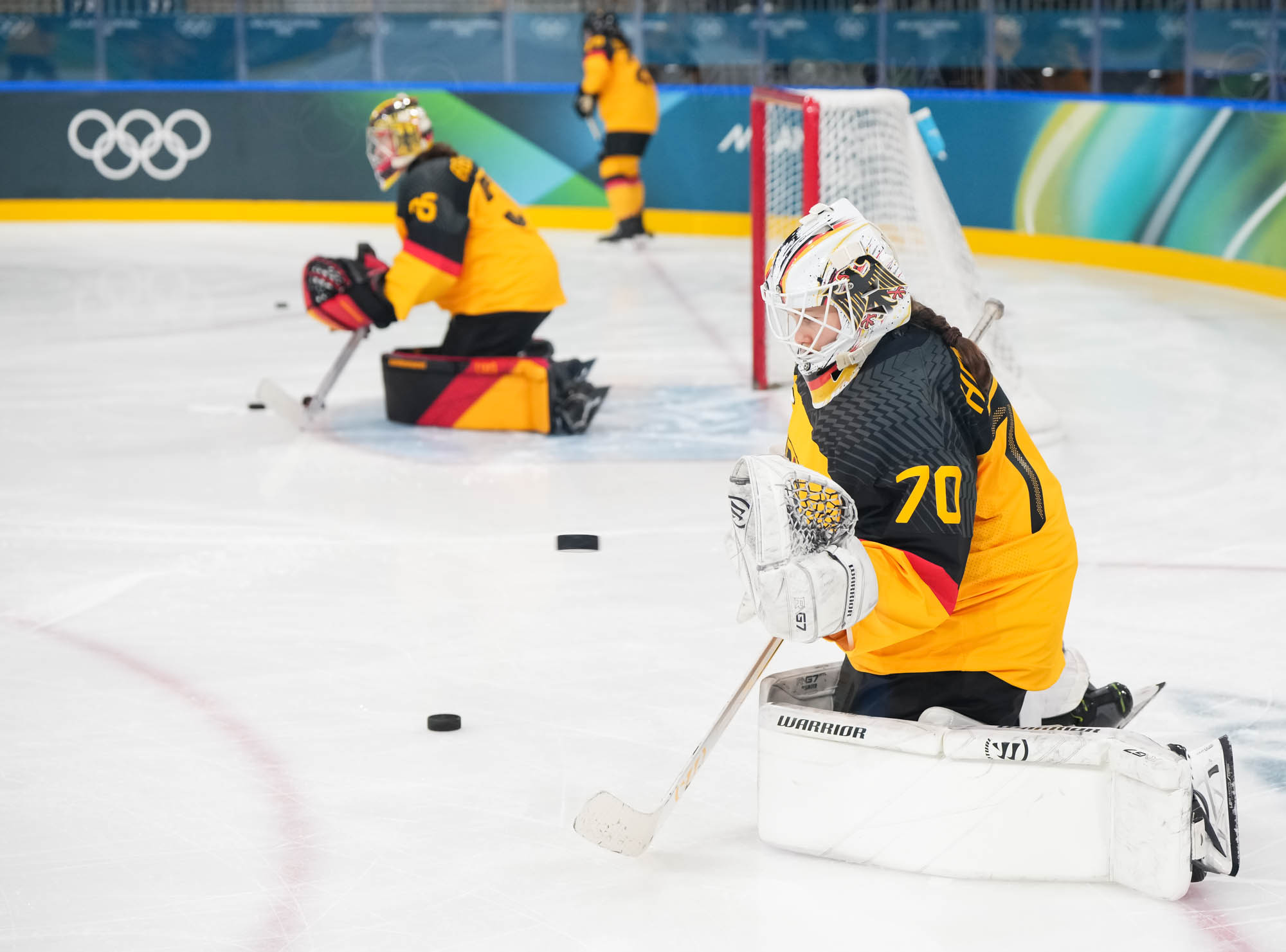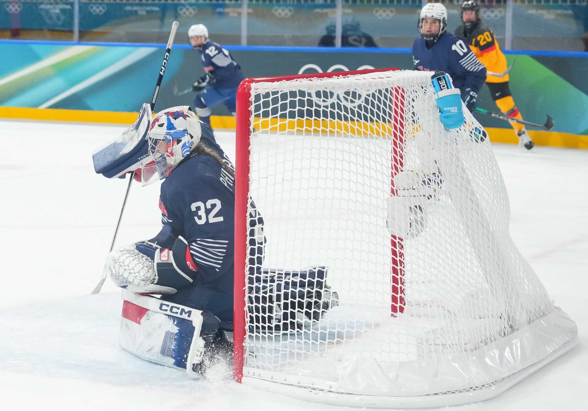 The Germans dominated the second in much the same fashion as the first, but they again had to deal with one large problem—the exceptional play of Philbert. Kluge had the best chance of the second, outskating Lucie Quarto to move in alone, but she blasted a shot high.