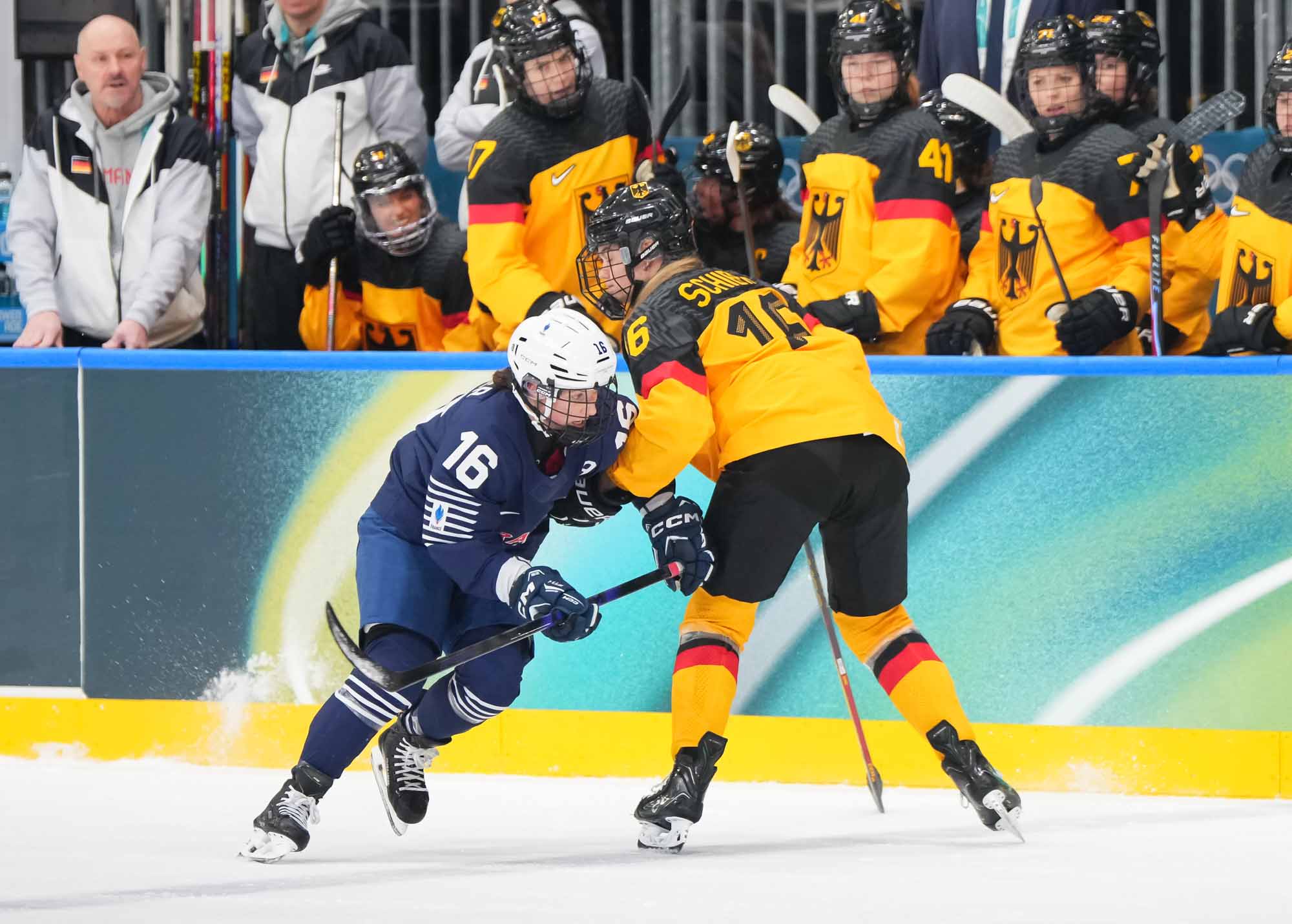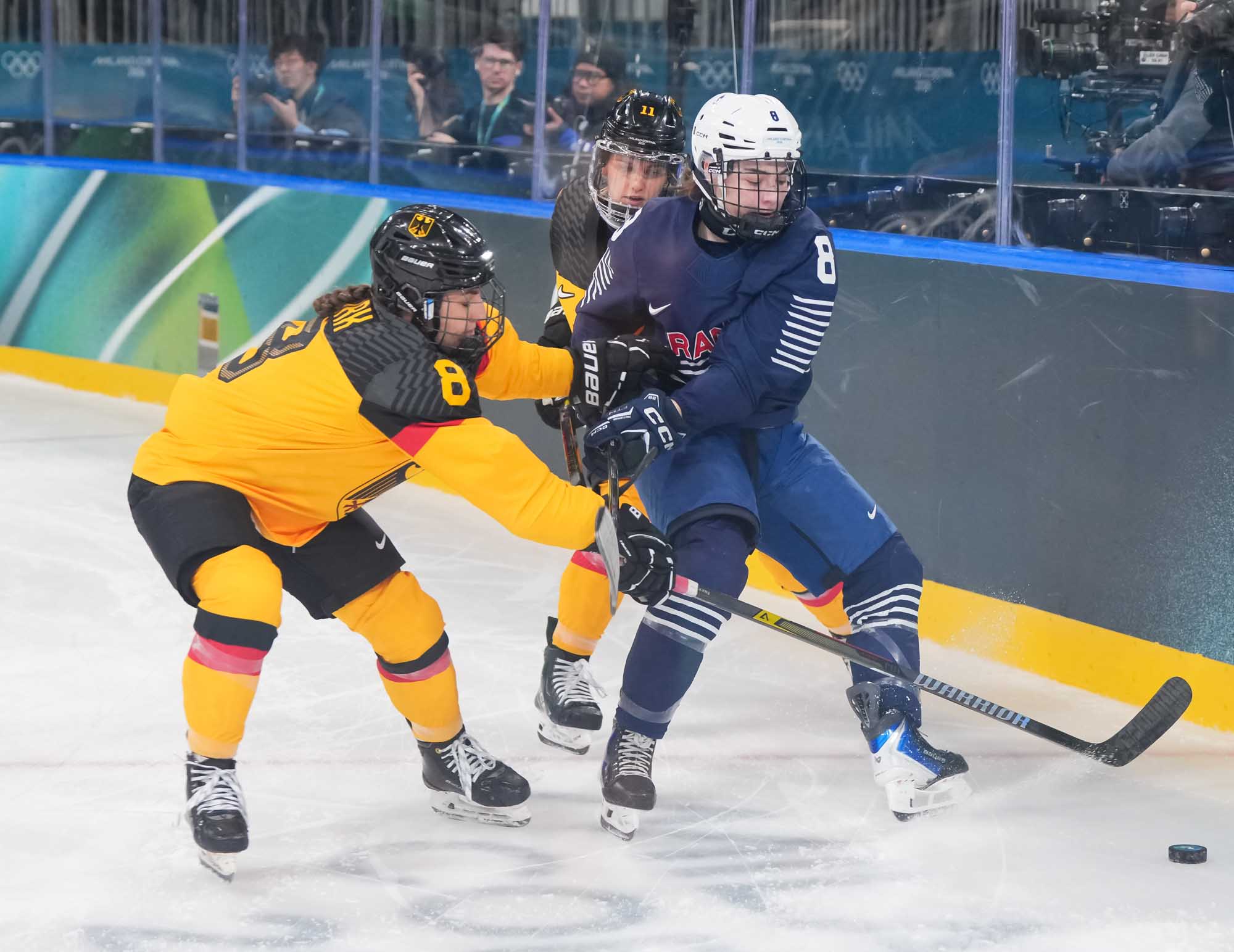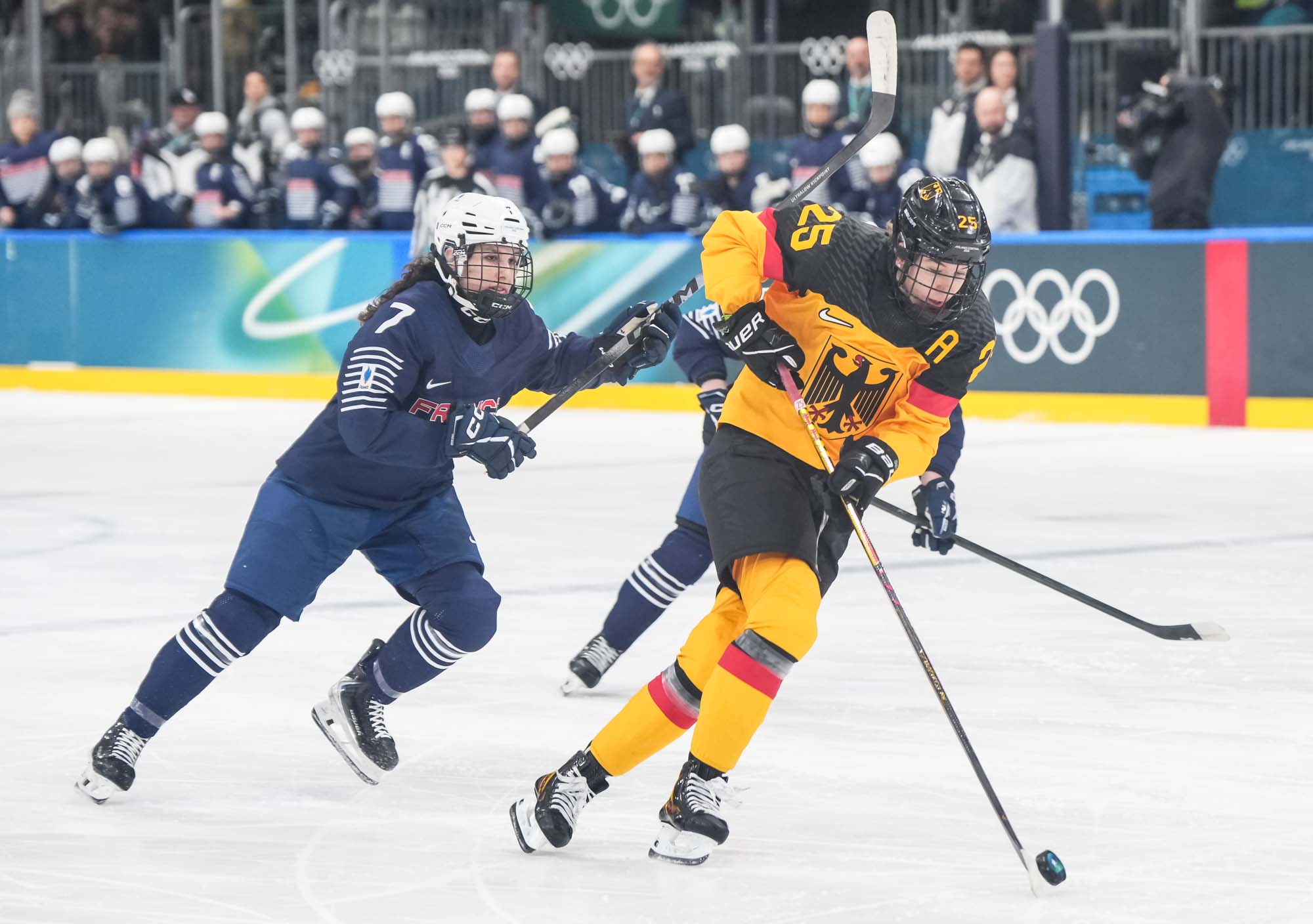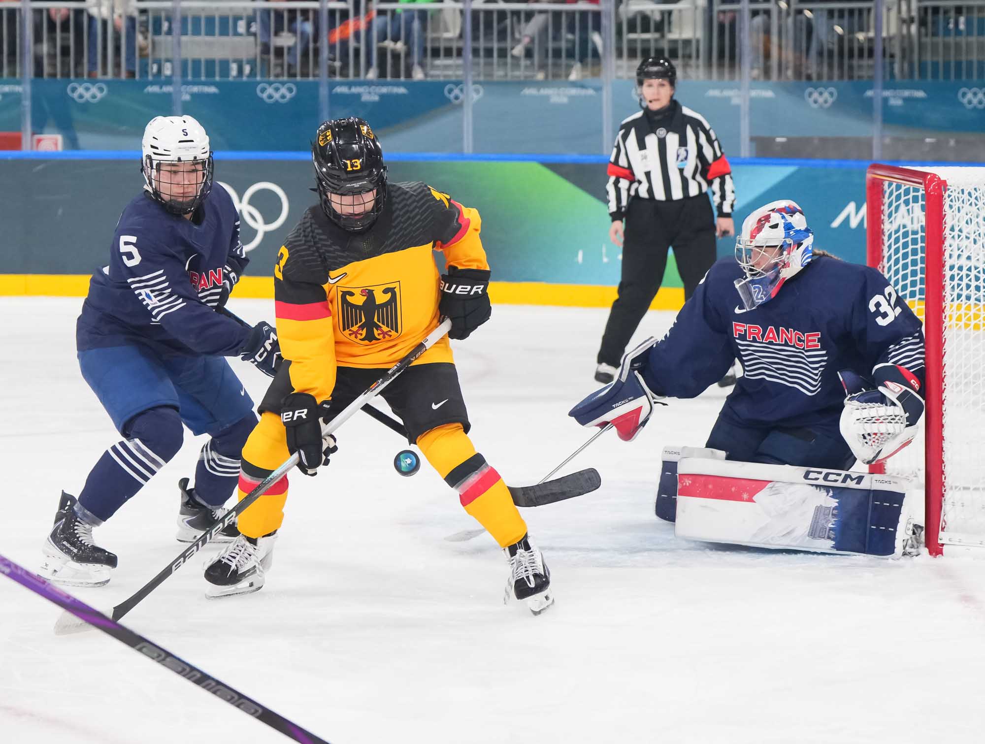 Daria Gleissner got the puck along the boards in the France end and spotted Laura Kluge in front. Gleissner wired a perfect and hard pass to the slot, and Kluge converted the one-timer with just 34.1 seconds remaining.