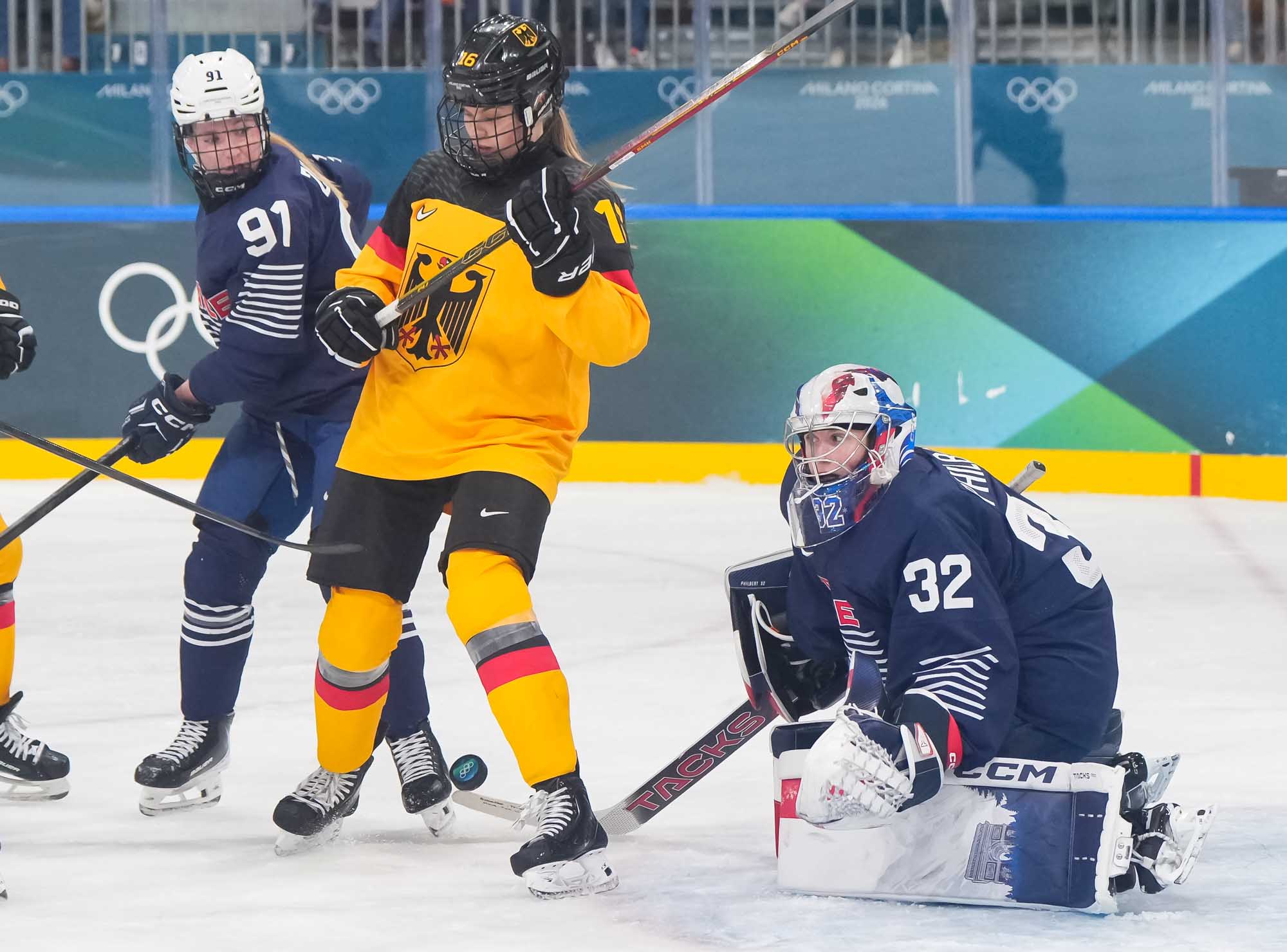 Philbert, however, denied Jule Schiefer from in close with a great pokecheck, and made a great save off Luisa Welcke who was spotted open in front by twin sister Lilli. Despite an 18-5 shots advantage in the second, there were no goals.