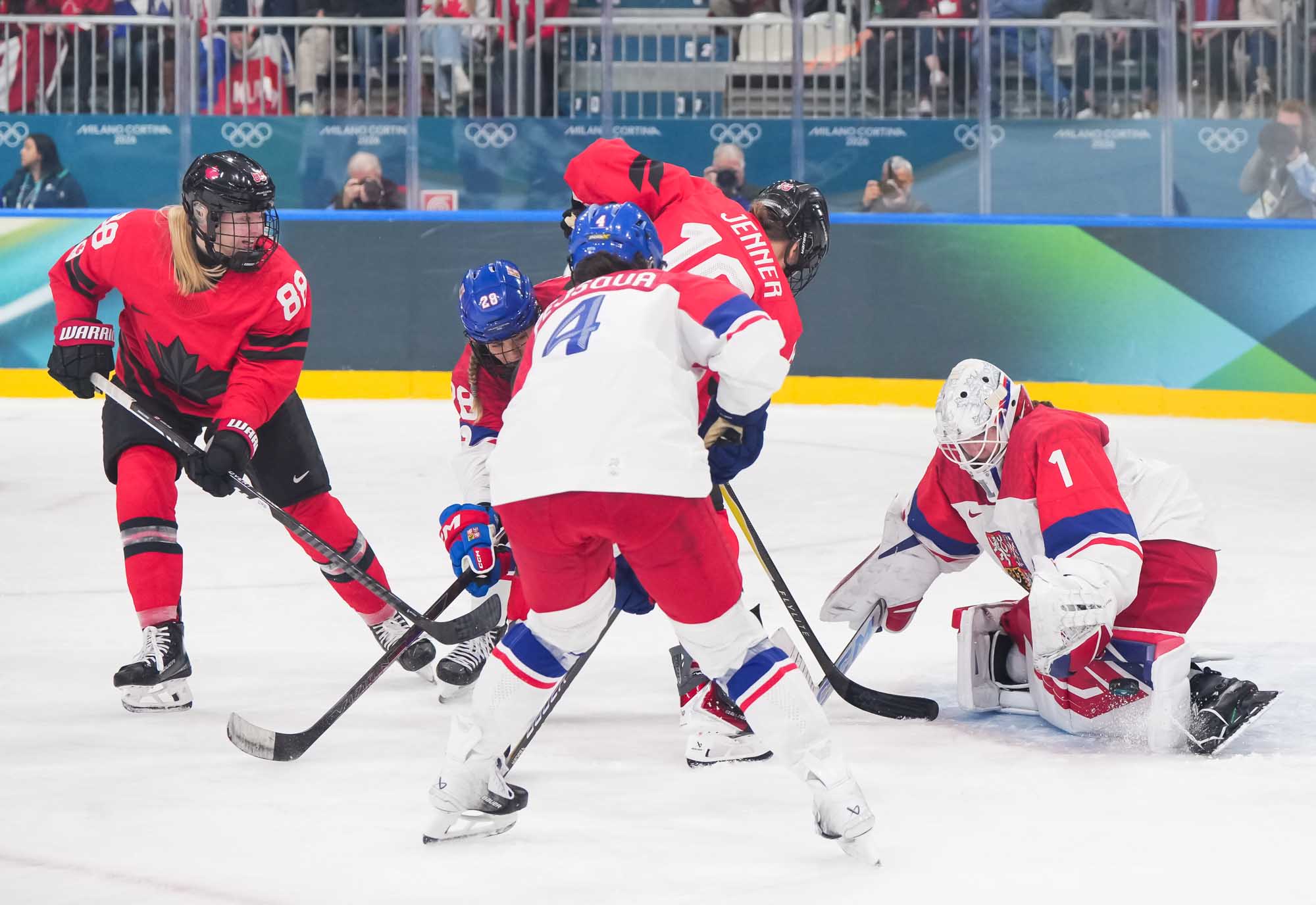 The Czechs ended Desbiens' shutout bid midway through the third on the power play. The goalie stopped a shot by Kaltounkova but couldn't control the rebound, and Natalie Mlynkova was there to bang it in at 8:38.