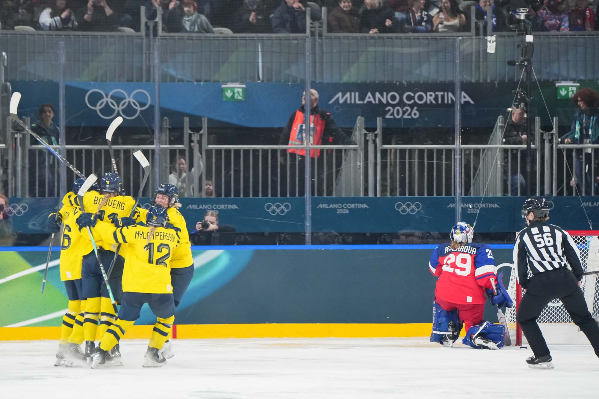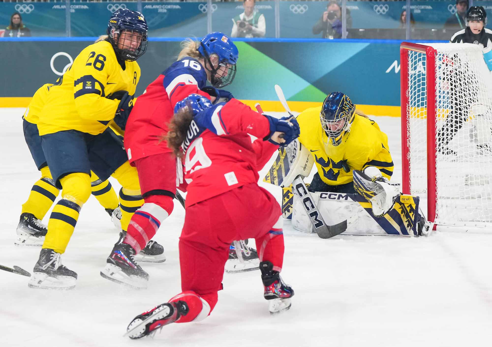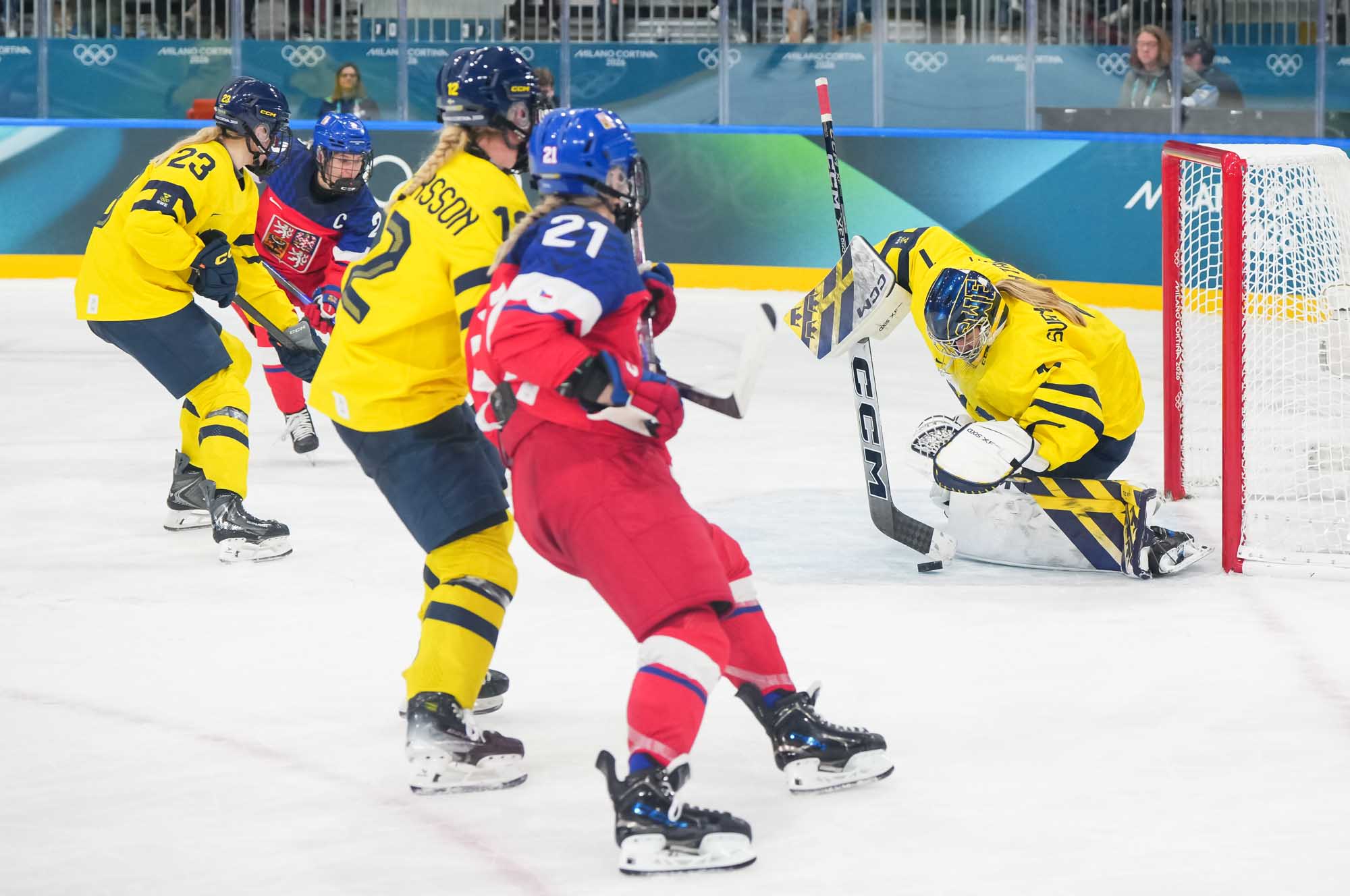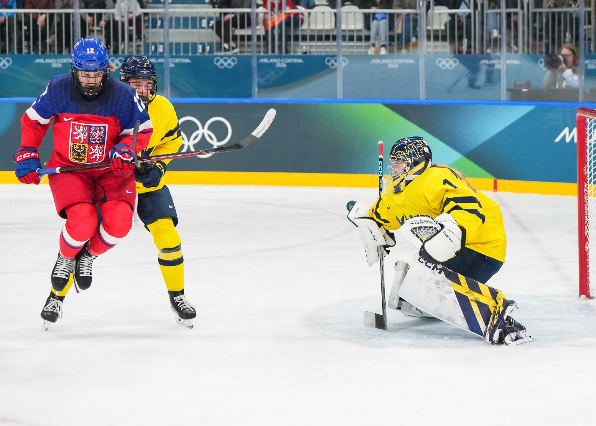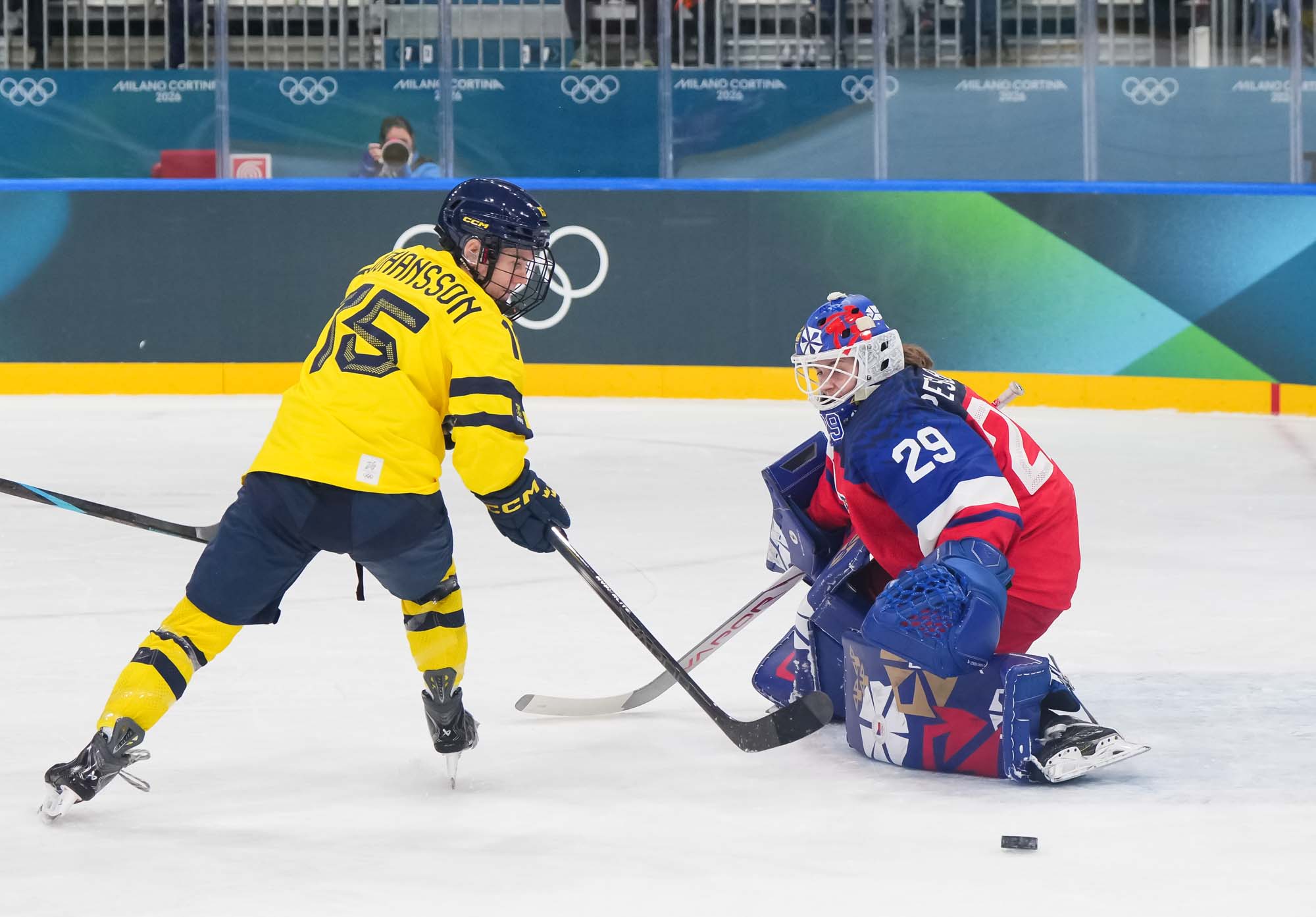 Hanna Olsson (#26) scored the winning goal on the power play as Sweden beat Czechia 2-0 to advance to the 2026 Olympic women's hockey semi-finals in Milan, Italy.