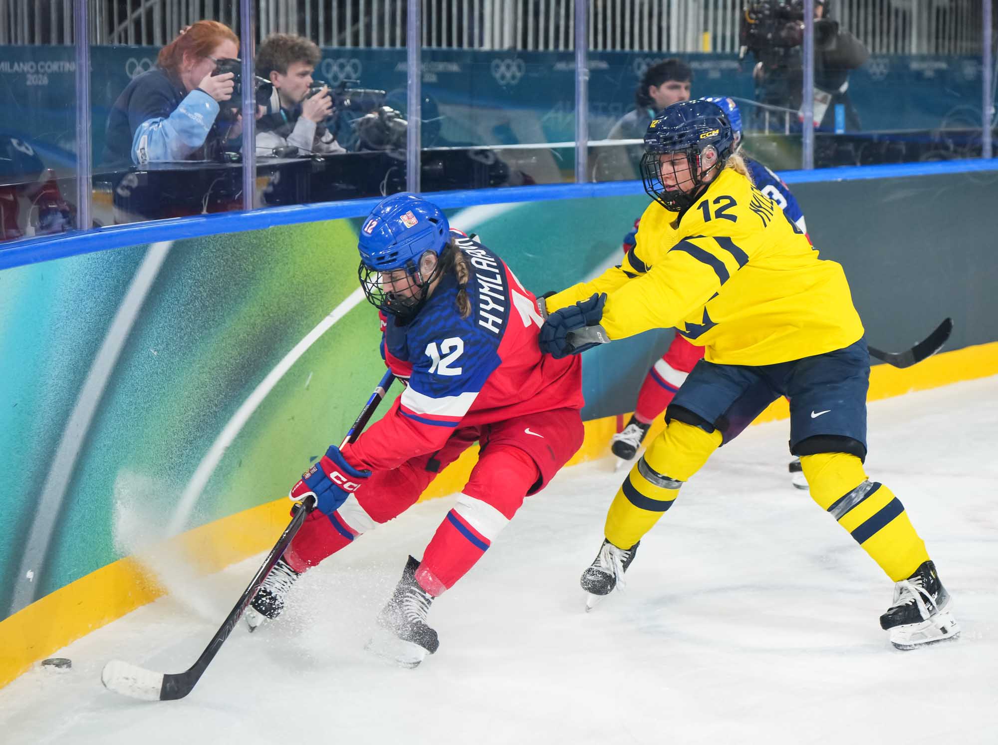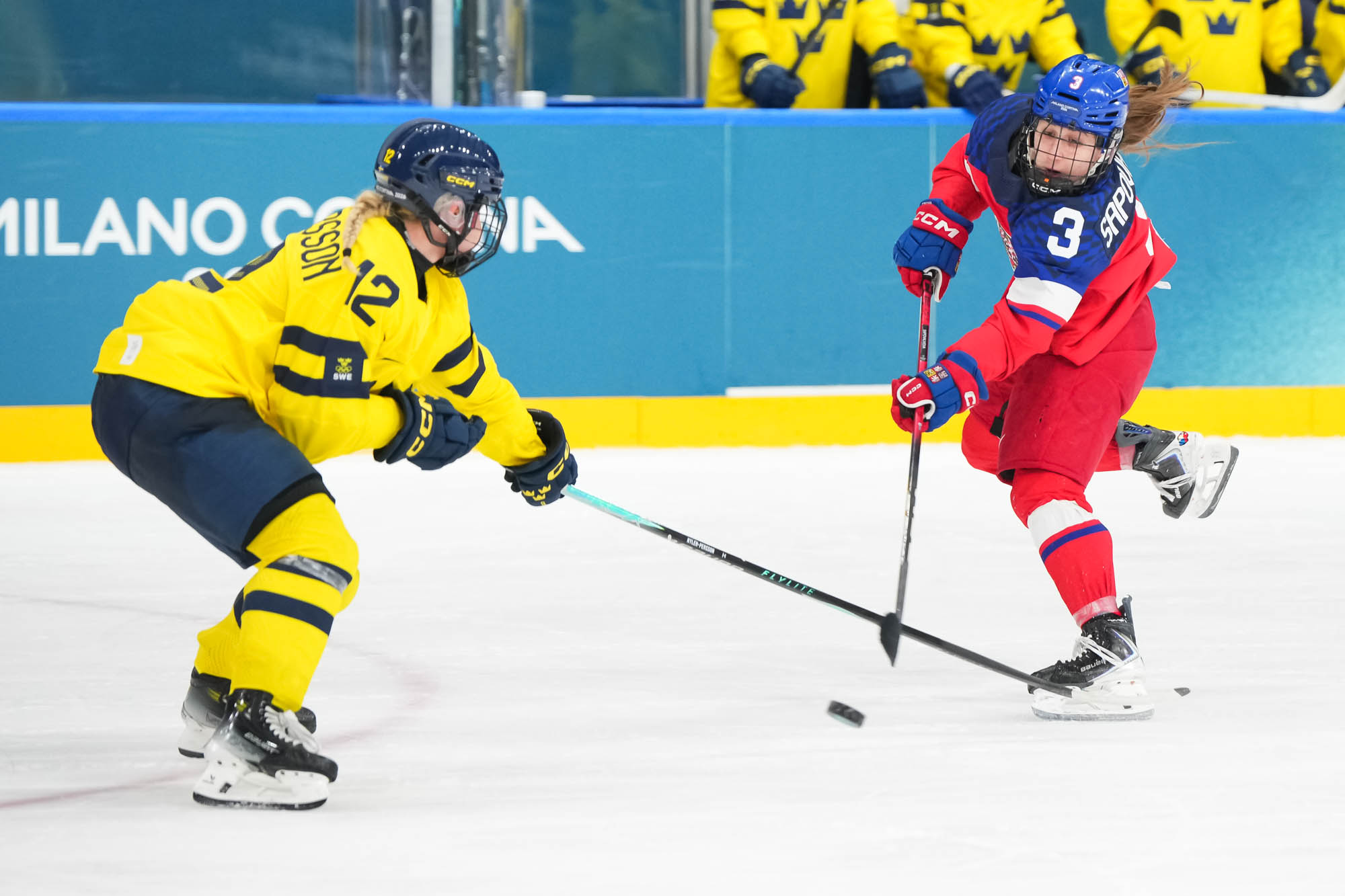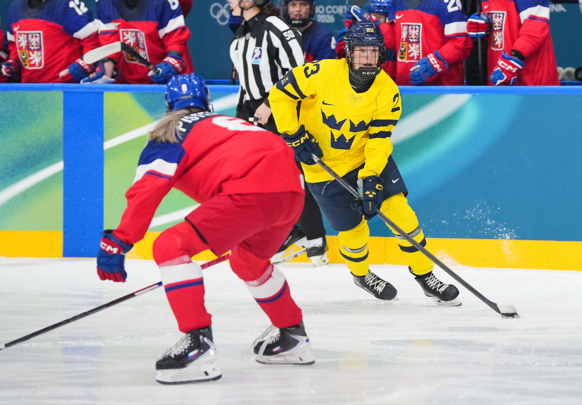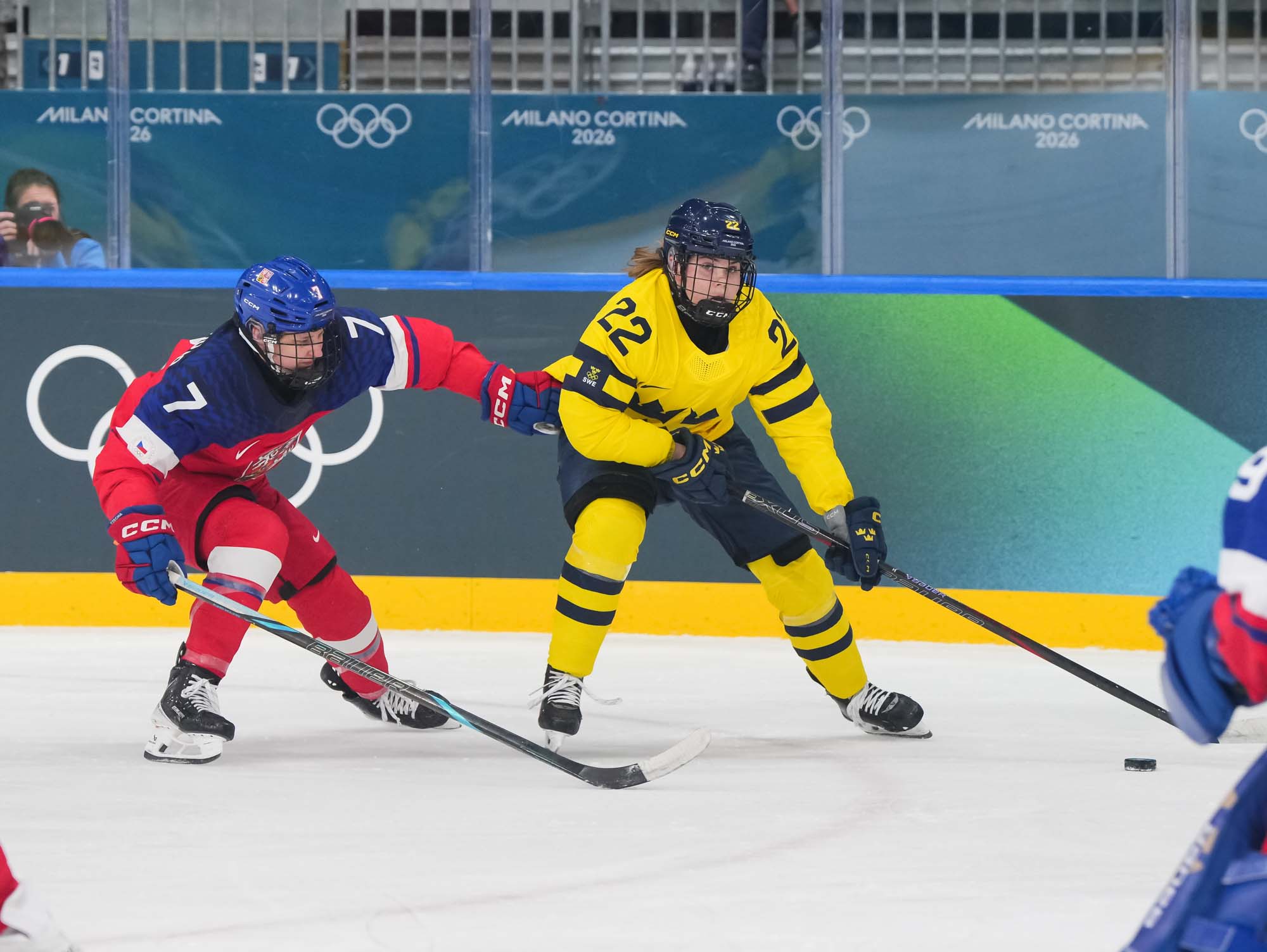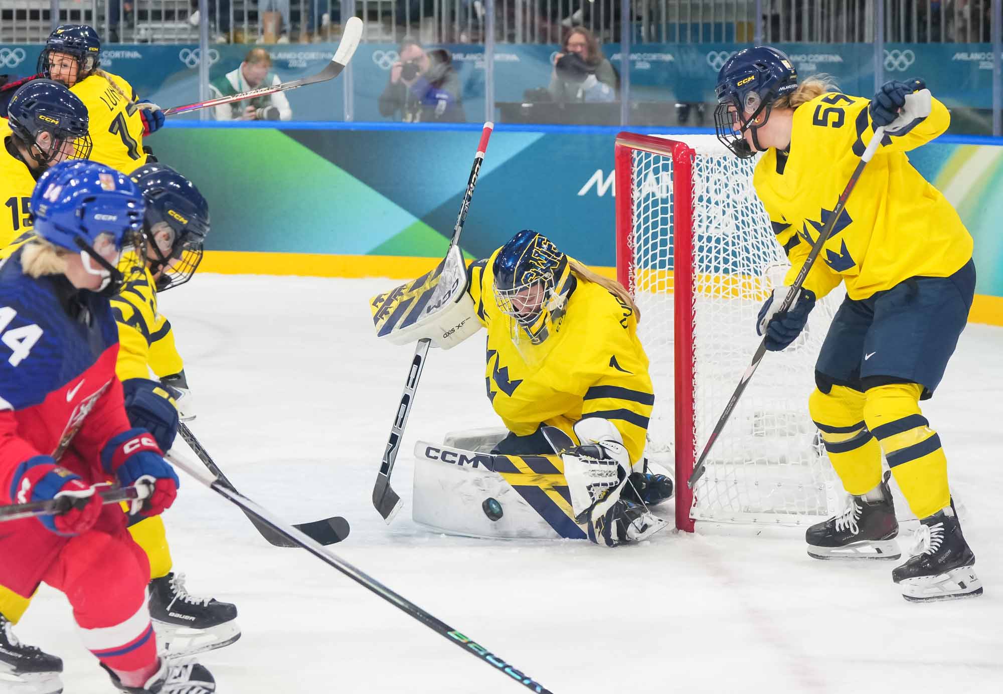 Hanna Olsson (#26) scored the winning goal on the power play as Sweden beat Czechia 2-0 to advance to the 2026 Olympic women's hockey semi-finals in Milan, Italy.