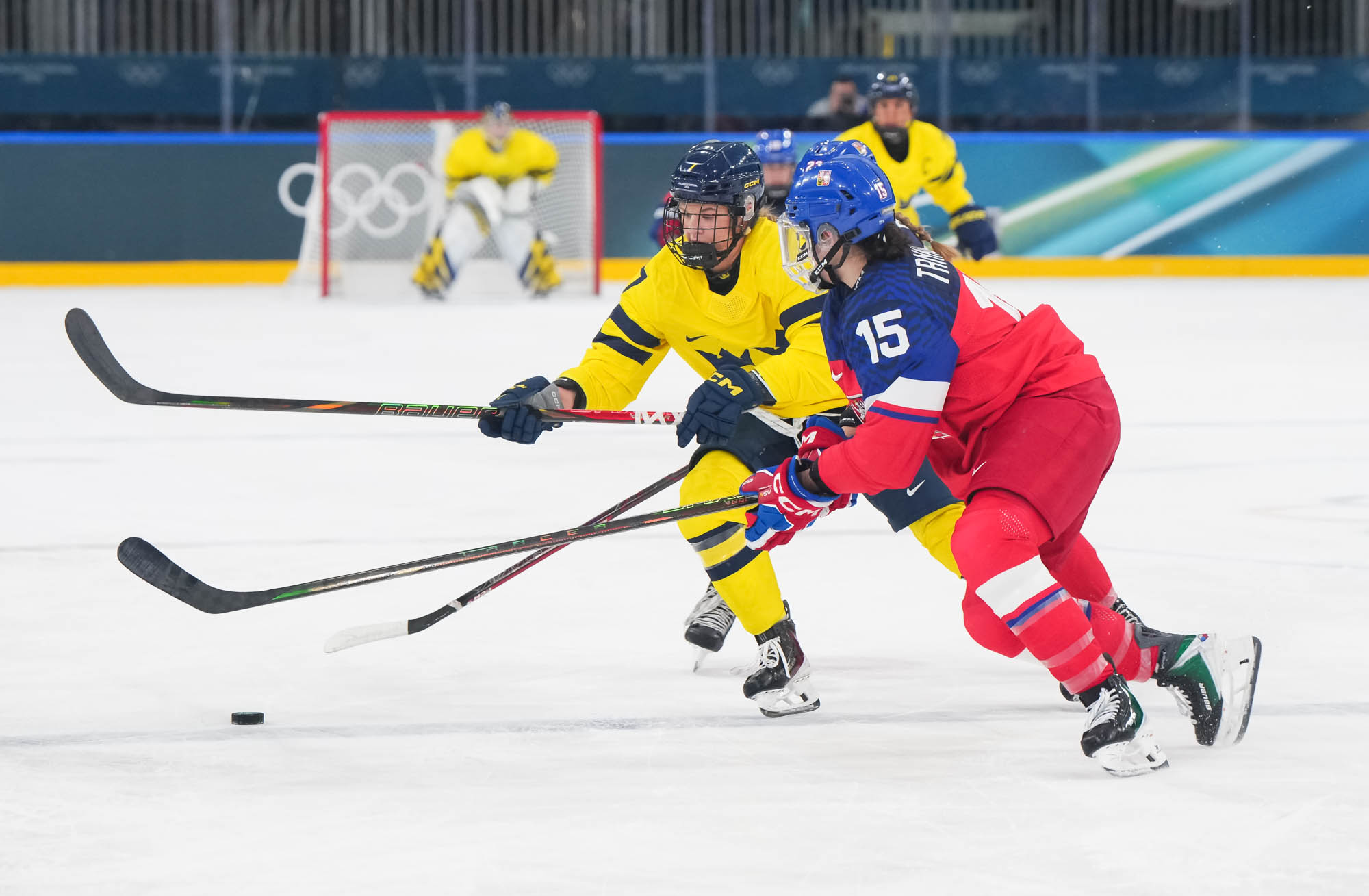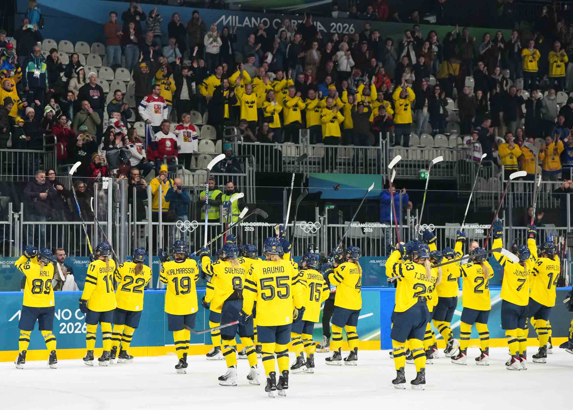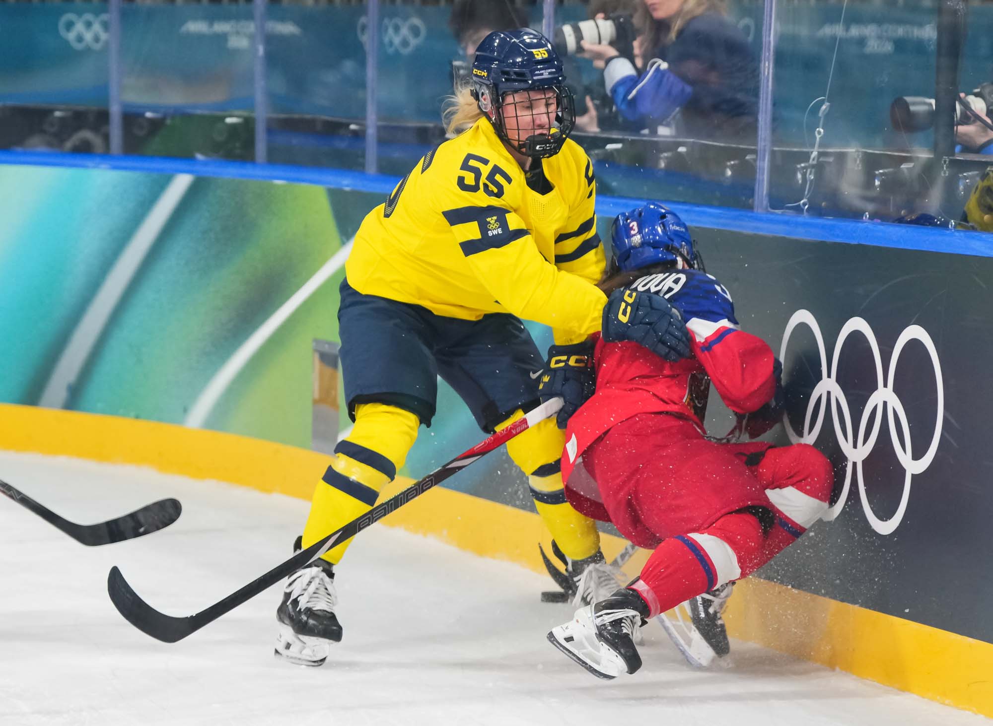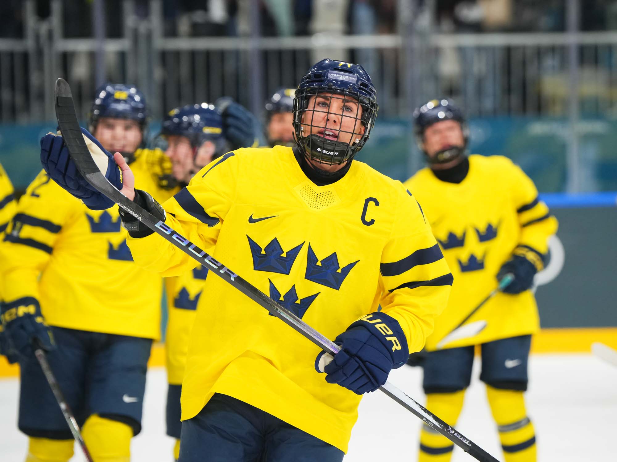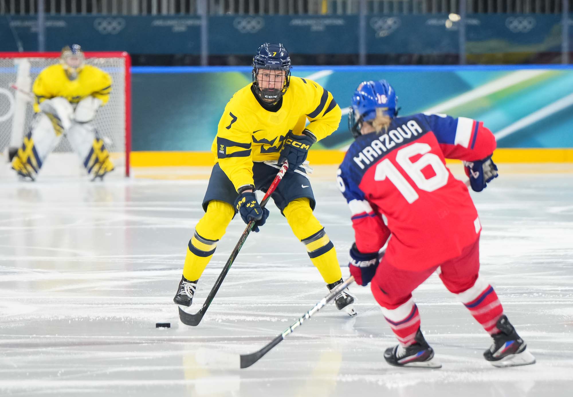 Hanna Olsson (#26) scored the winning goal on the power play as Sweden beat Czechia 2-0 to advance to the 2026 Olympic women's hockey semi-finals in Milan, Italy.