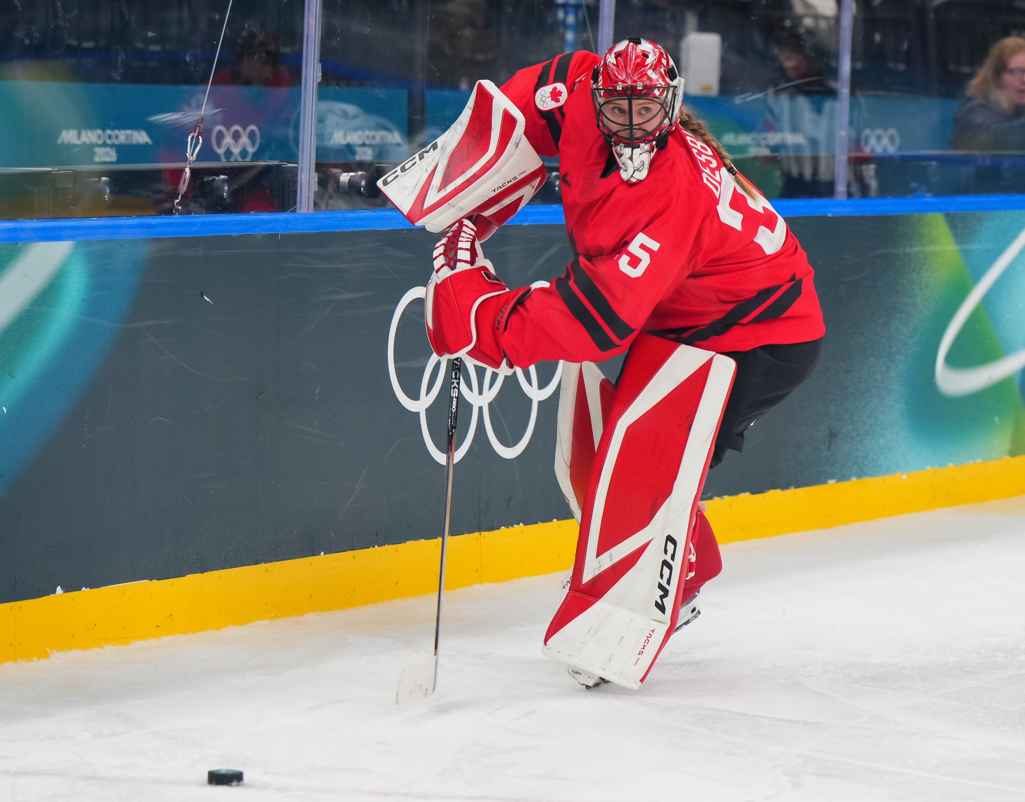 At the other end, Ann-Renee Desbiens was virtually inactive. The only shot she faced in the first was a high floater from long range which she casually blockered over the glass. That came with 2:25 left in the period.