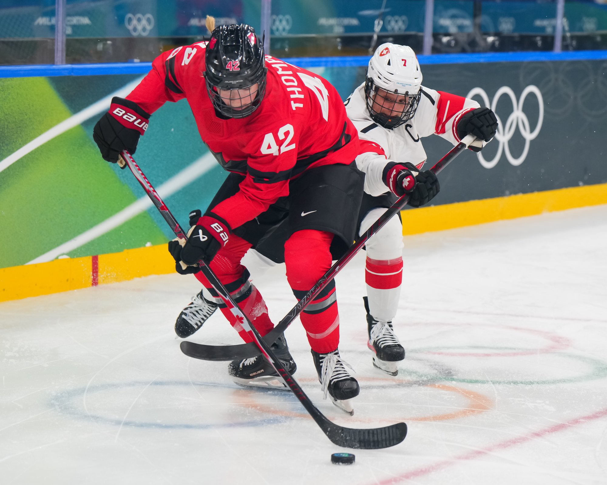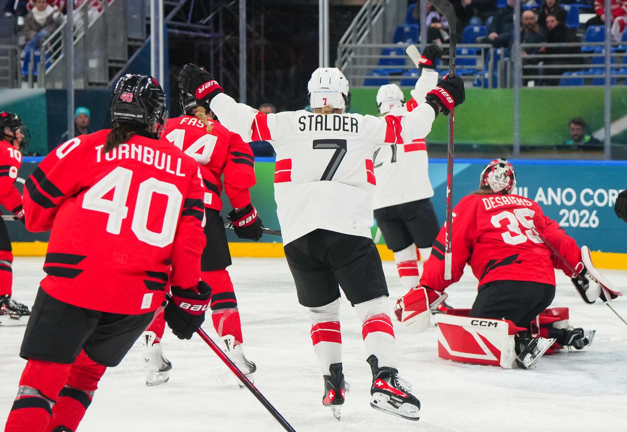 "I feel like we had phases where we battled and where we played with them," said Swiss forward Naemi Herzig. "We were able to keep it close, and if we’d been a little bit tighter on that one blocked shot or in the corner, maybe the game would have turned out differently. They say a 2-0 lead is the most dangerous one in hockey, and we believed every second that we can win this game, that we can turn it around. The one goal definitely helped us. Getting close, unfortunately, was not enough."