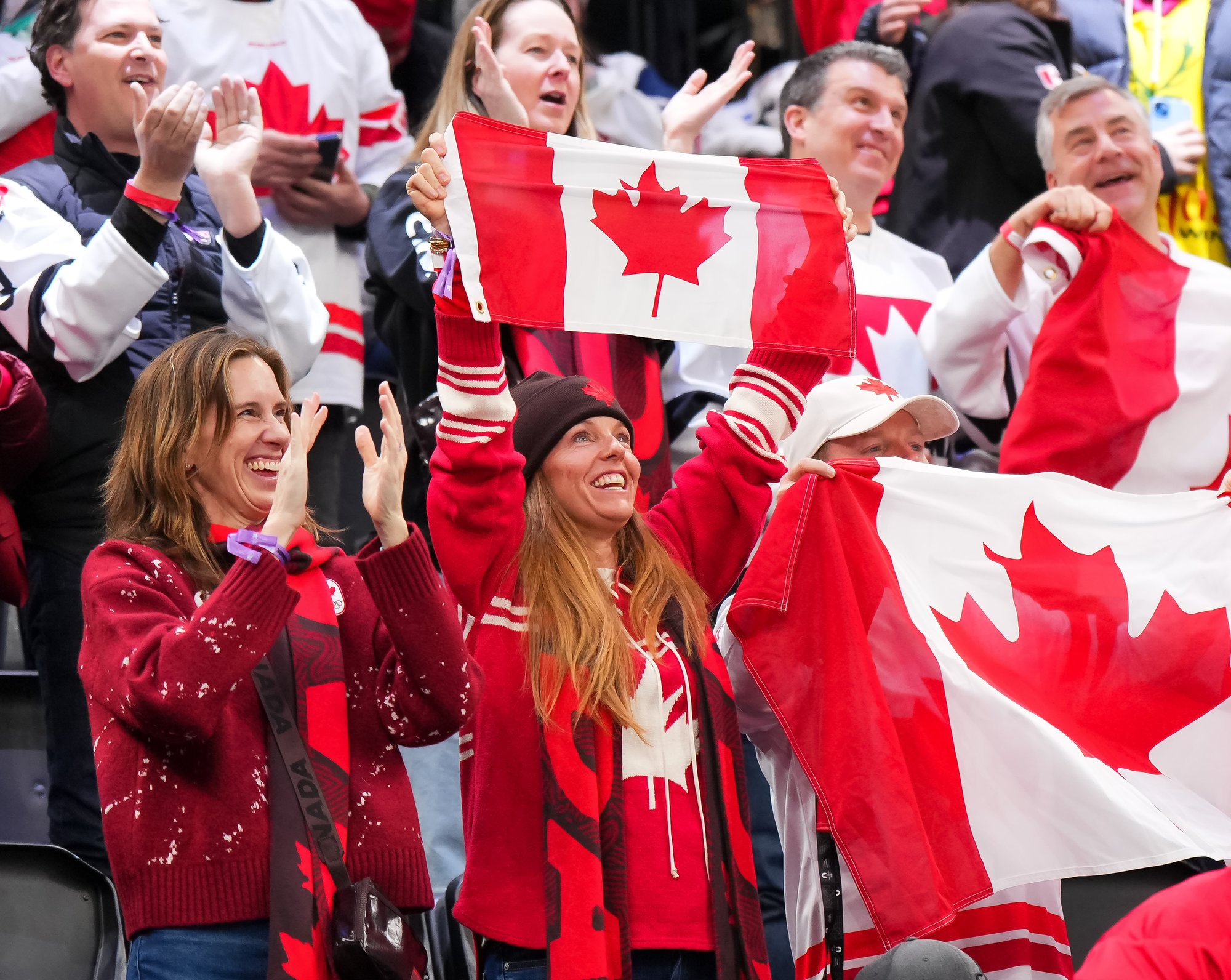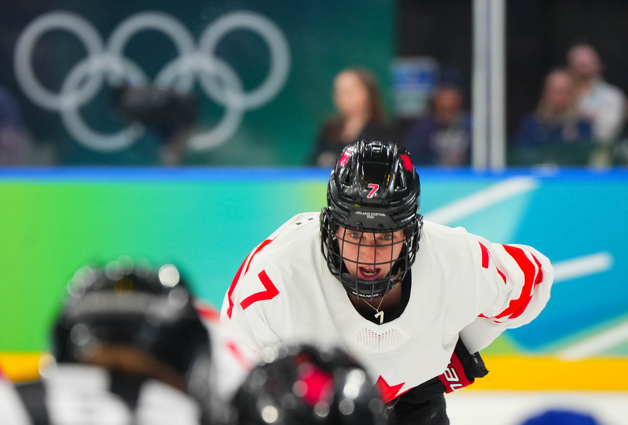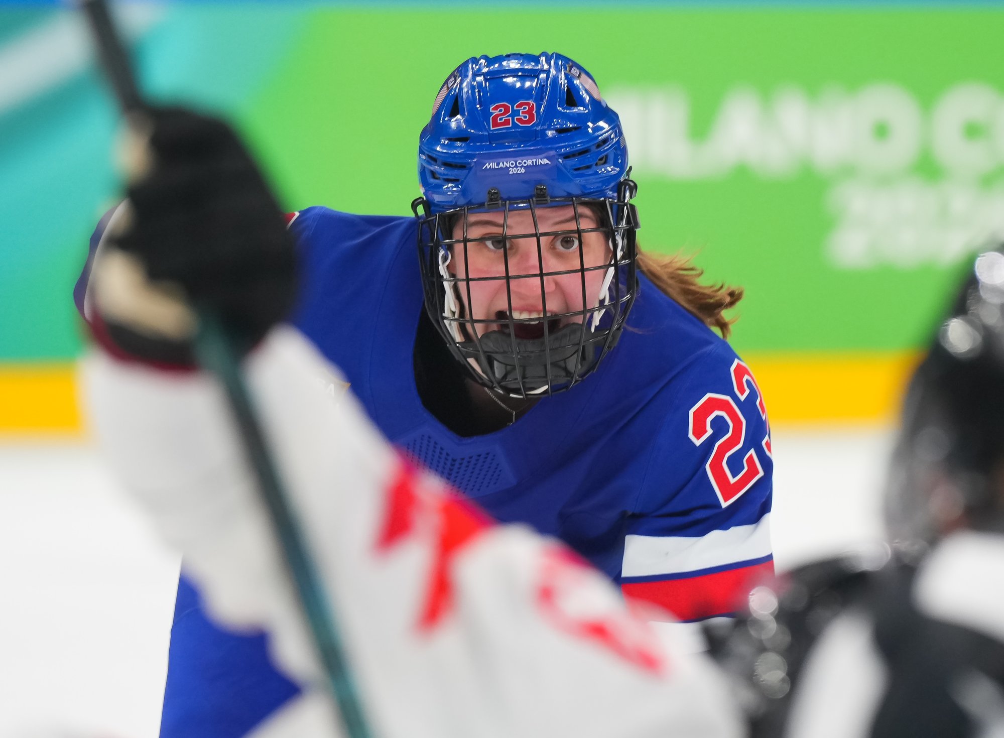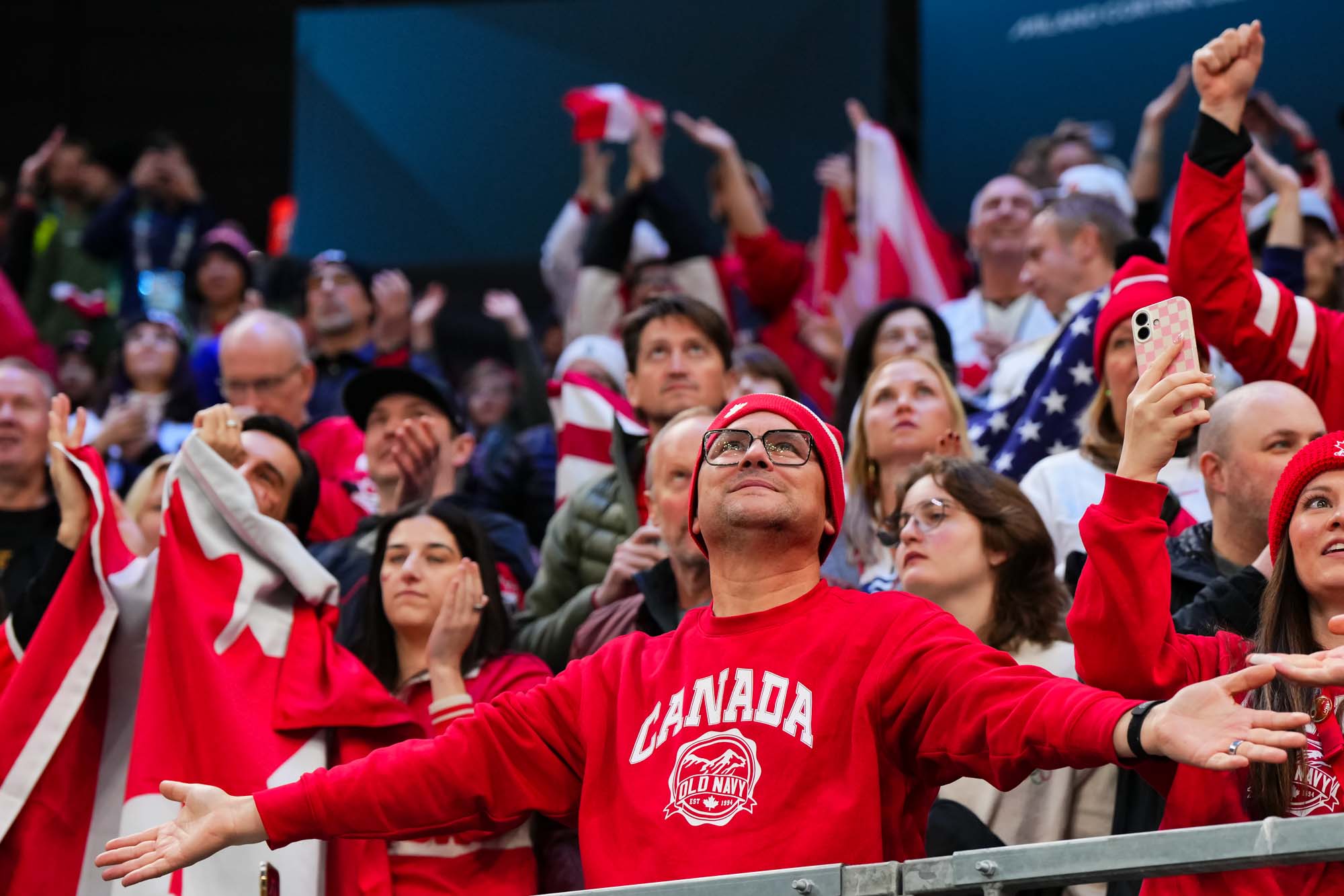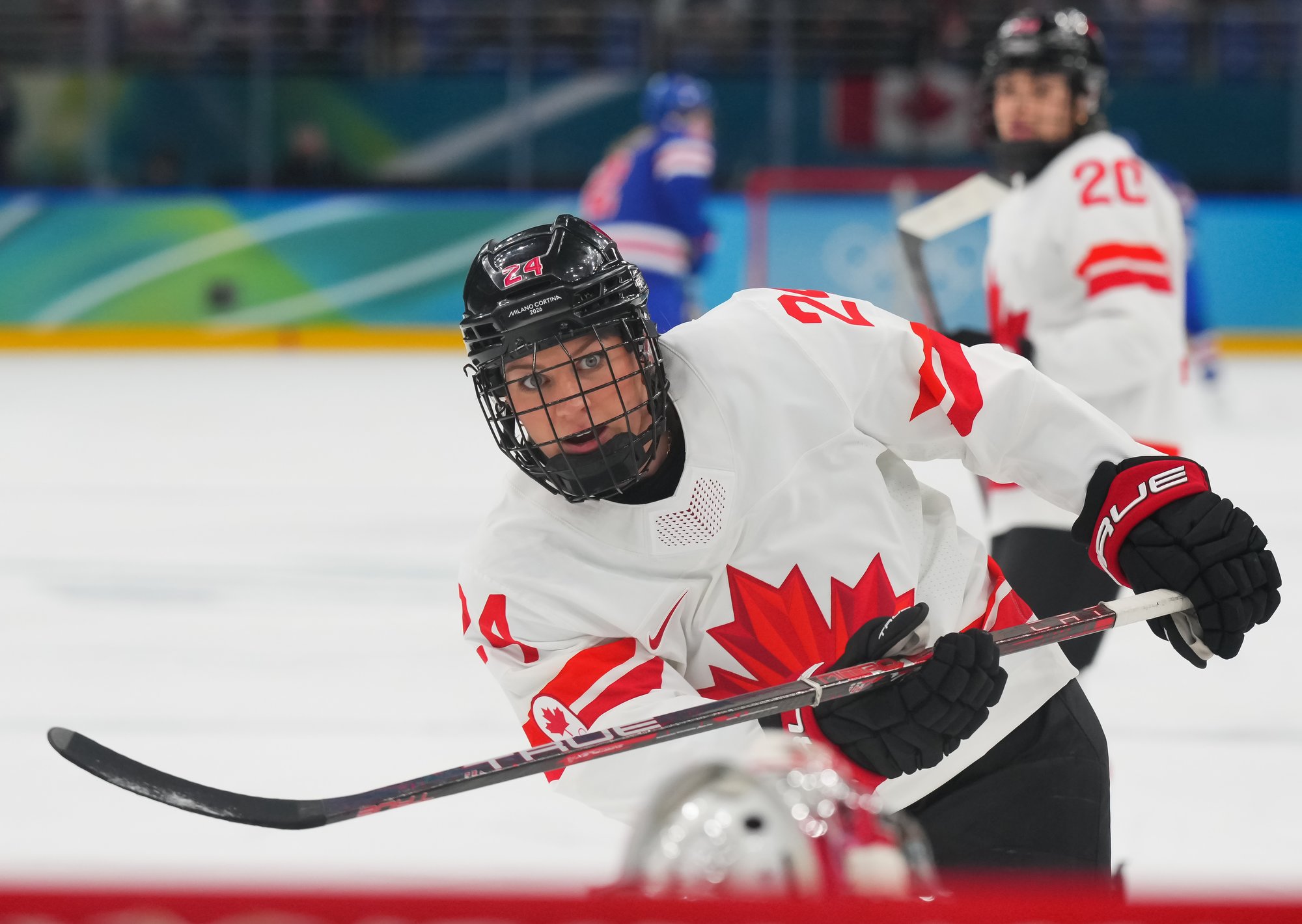 Santagiulia was packed with screaming fans, split more or less evenly between the two nations, and they had plenty to cheer for right from the get-go. Canada’s biggest challenge was to negate the U.S.’s flow and speed. To that end, they dumped the puck in and made the American defence chase the puck. In trouble in their own end, they cleared the puck to open ice, again forcing the Americans to chase down every loose puck. One-on-one battles along the boards? Not so much. Canada wasn’t interested.
