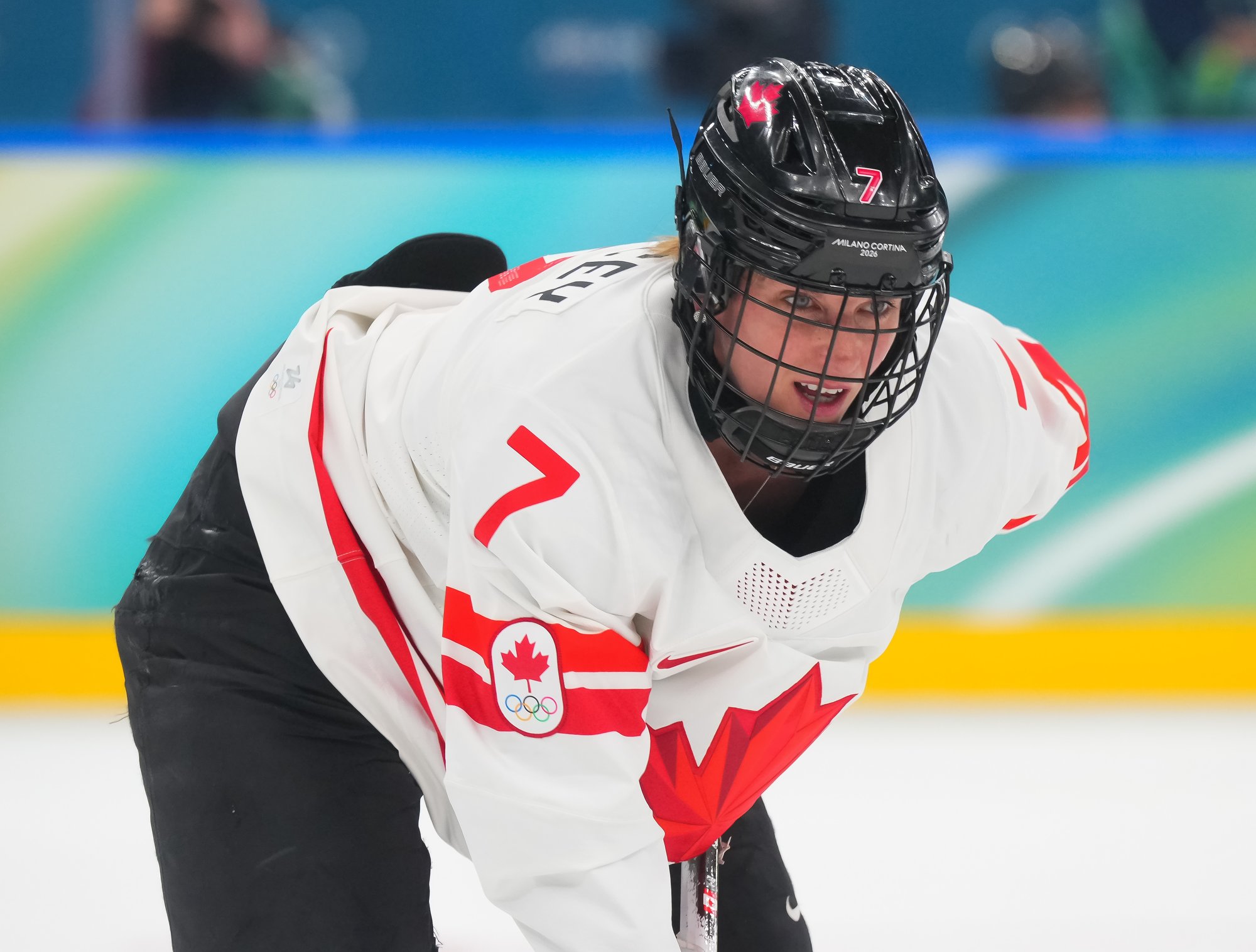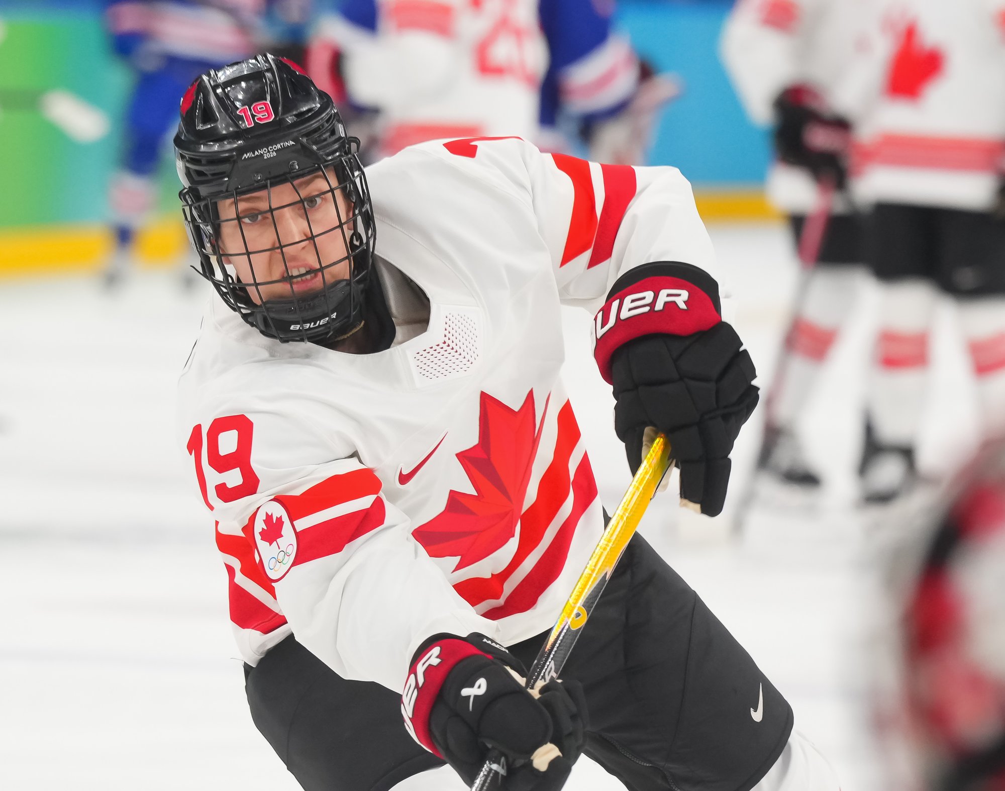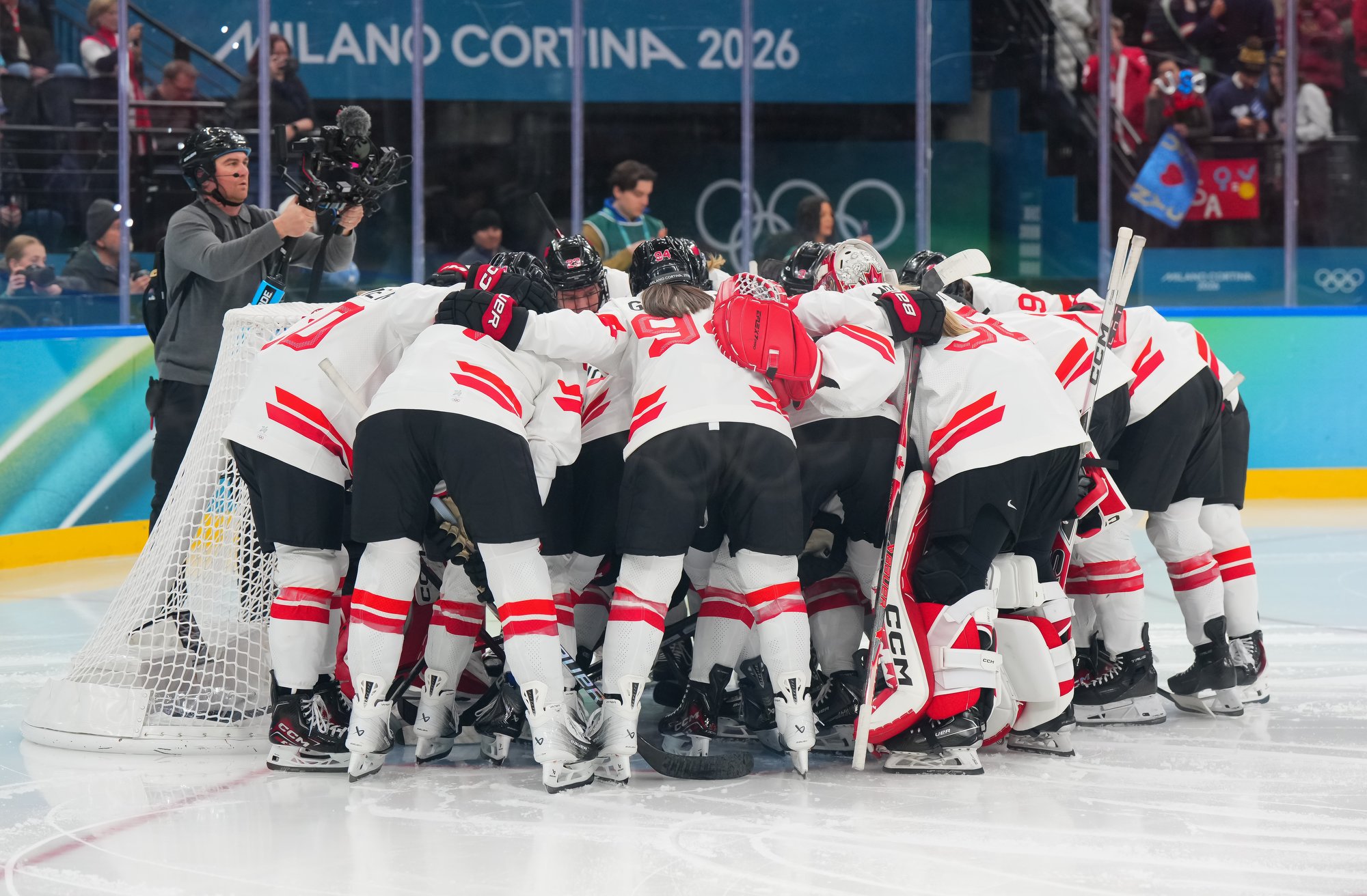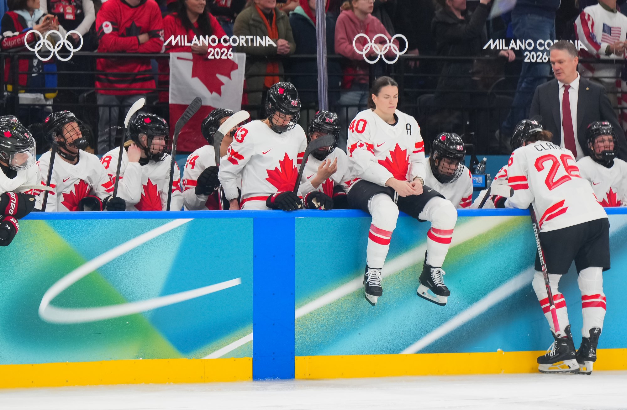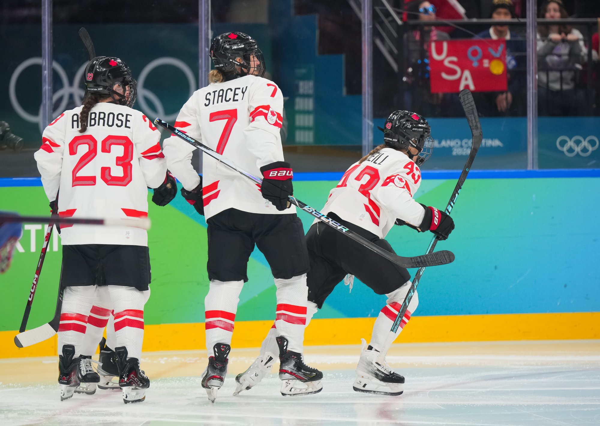 Santagiulia was packed with screaming fans, split more or less evenly between the two nations, and they had plenty to cheer for right from the get-go. Canada’s biggest challenge was to negate the U.S.’s flow and speed. To that end, they dumped the puck in and made the American defence chase the puck. In trouble in their own end, they cleared the puck to open ice, again forcing the Americans to chase down every loose puck. One-on-one battles along the boards? Not so much. Canada wasn’t interested.