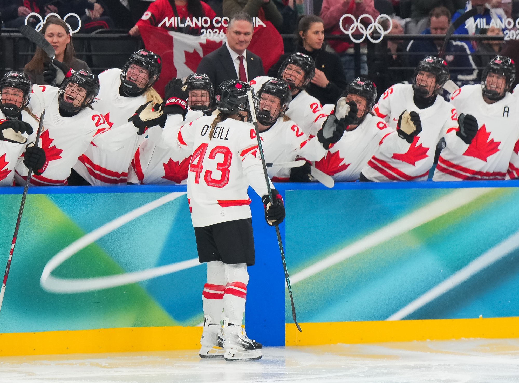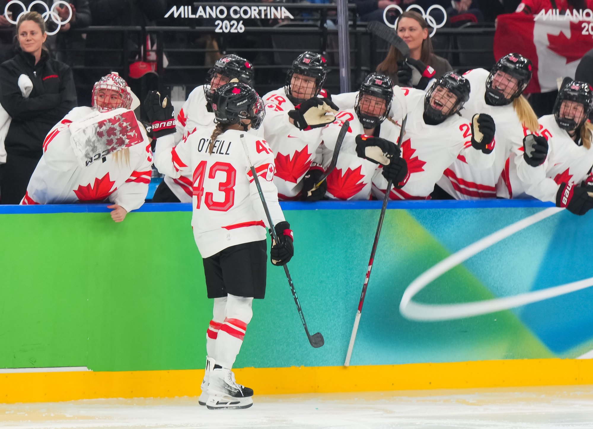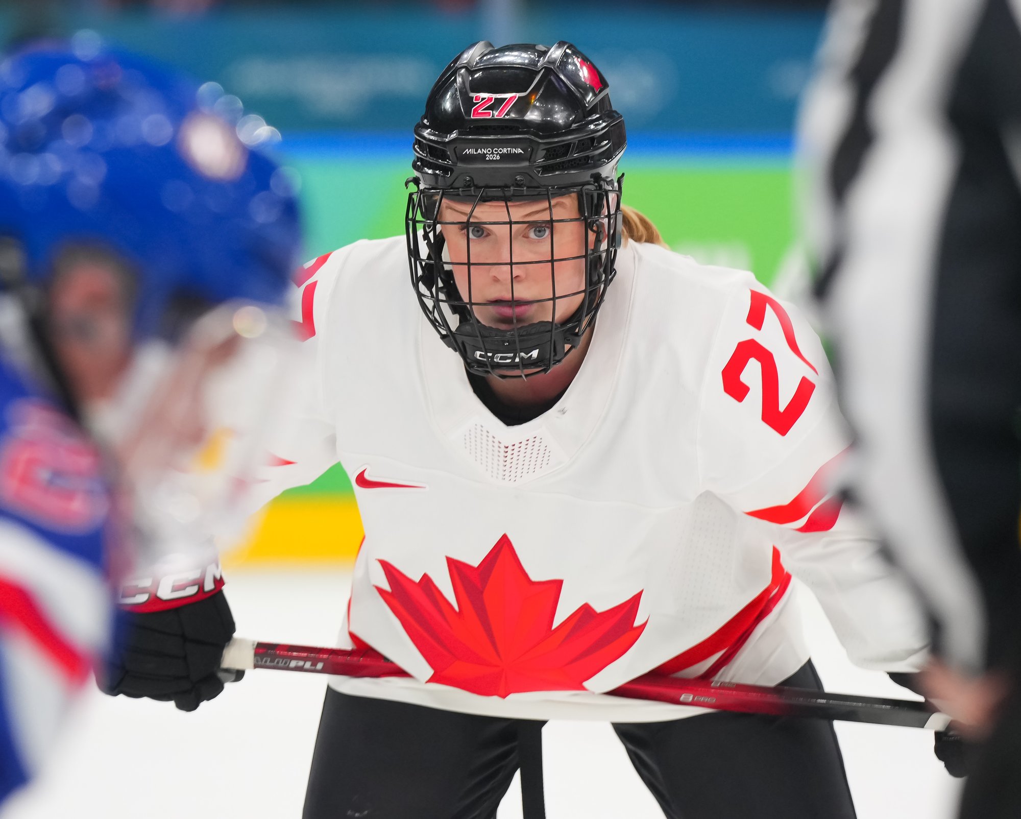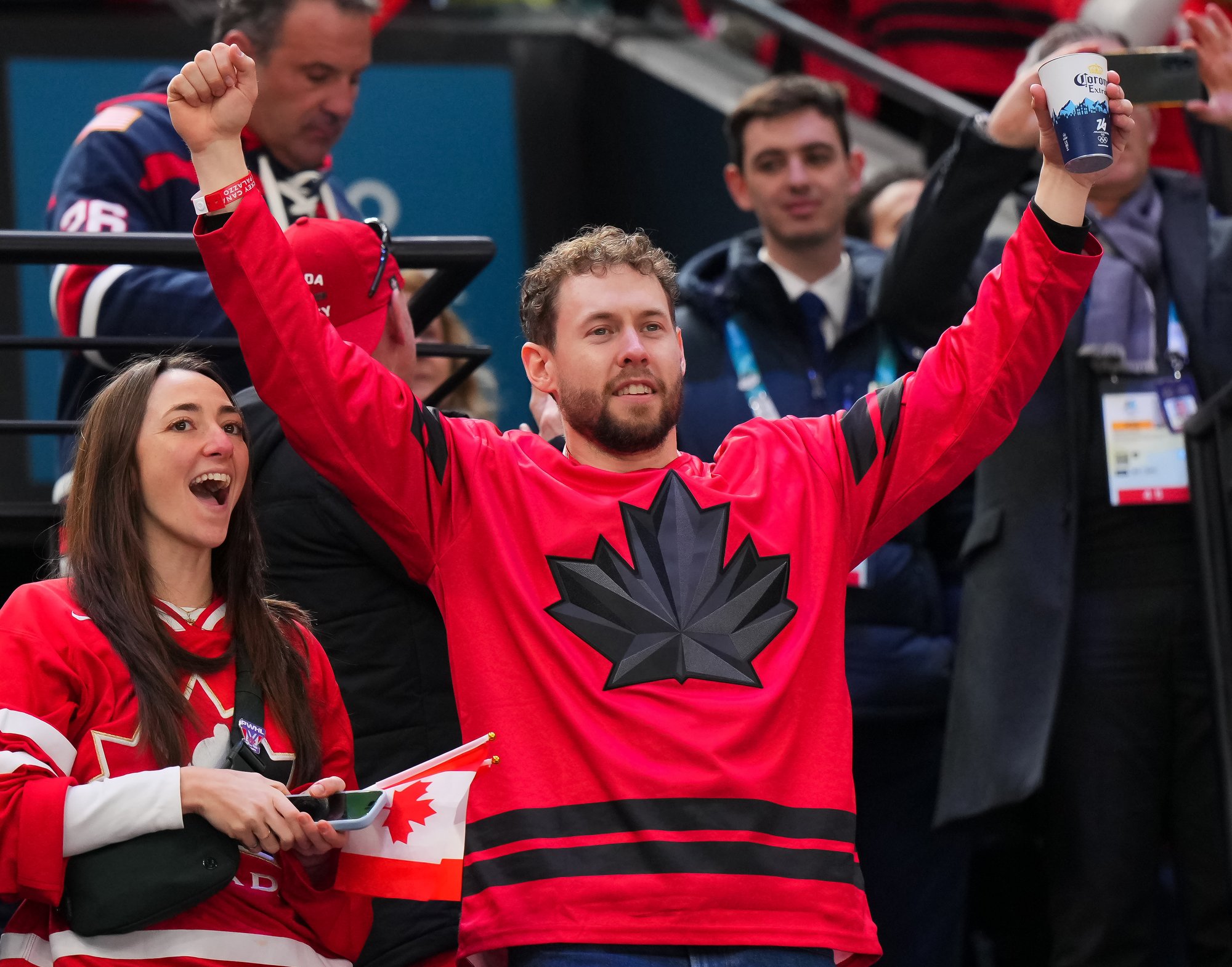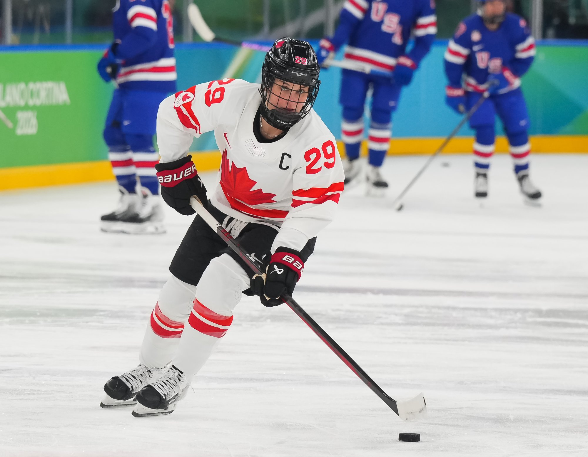 Santagiulia was packed with screaming fans, split more or less evenly between the two nations, and they had plenty to cheer for right from the get-go. Canada’s biggest challenge was to negate the U.S.’s flow and speed. To that end, they dumped the puck in and made the American defence chase the puck. In trouble in their own end, they cleared the puck to open ice, again forcing the Americans to chase down every loose puck. One-on-one battles along the boards? Not so much. Canada wasn’t interested.