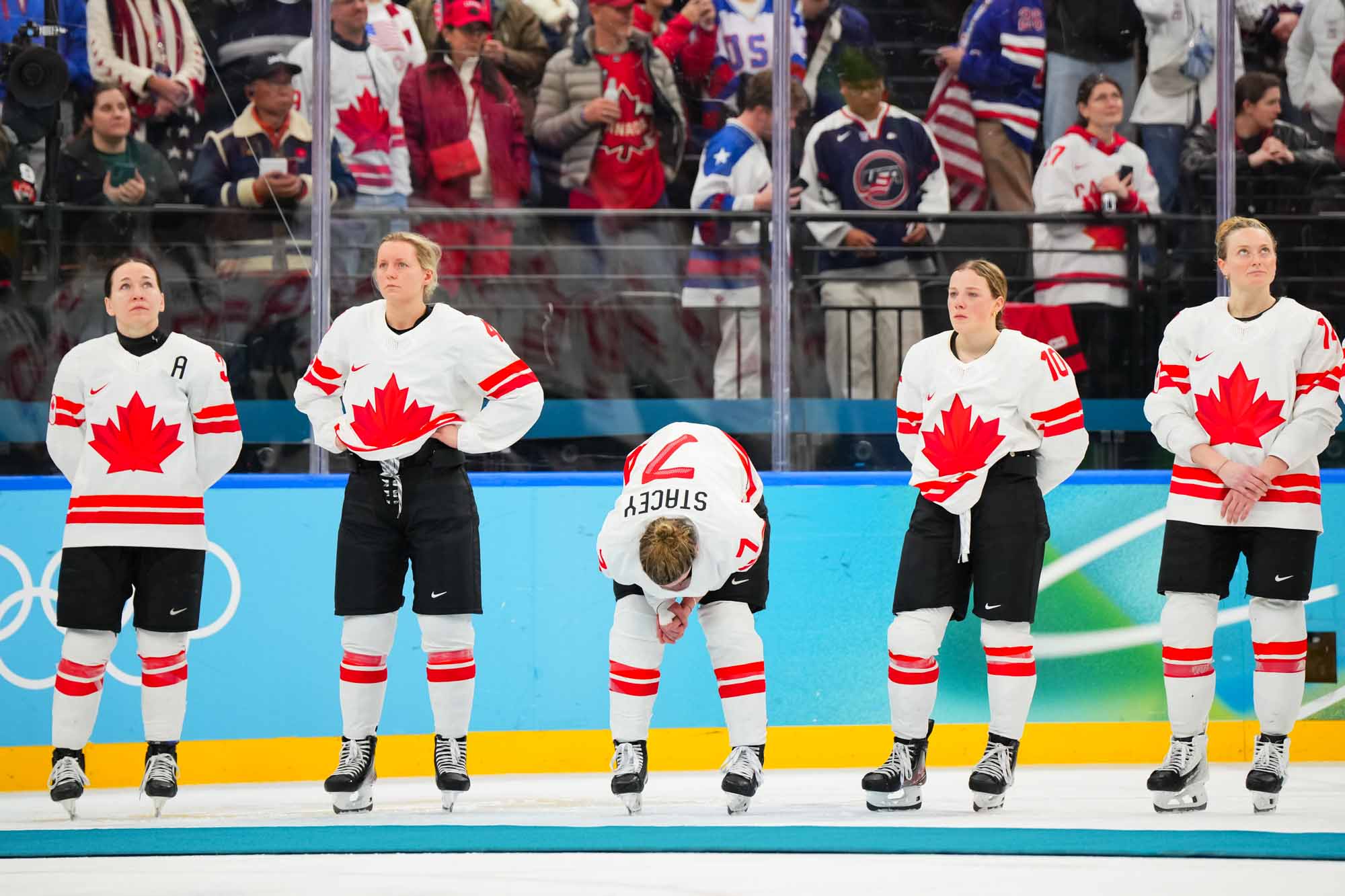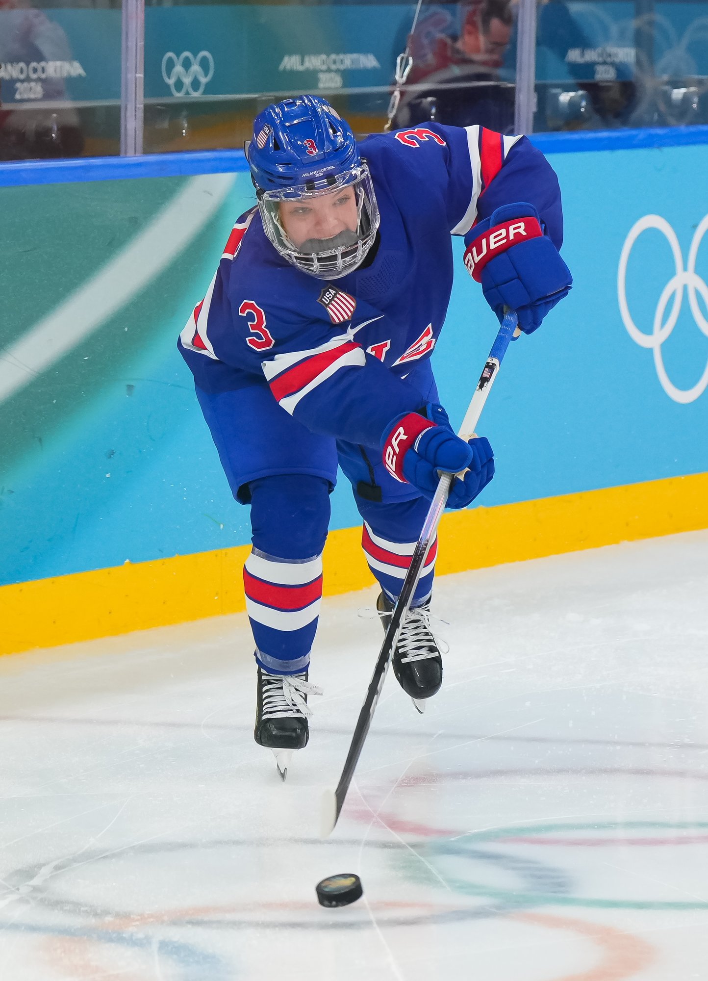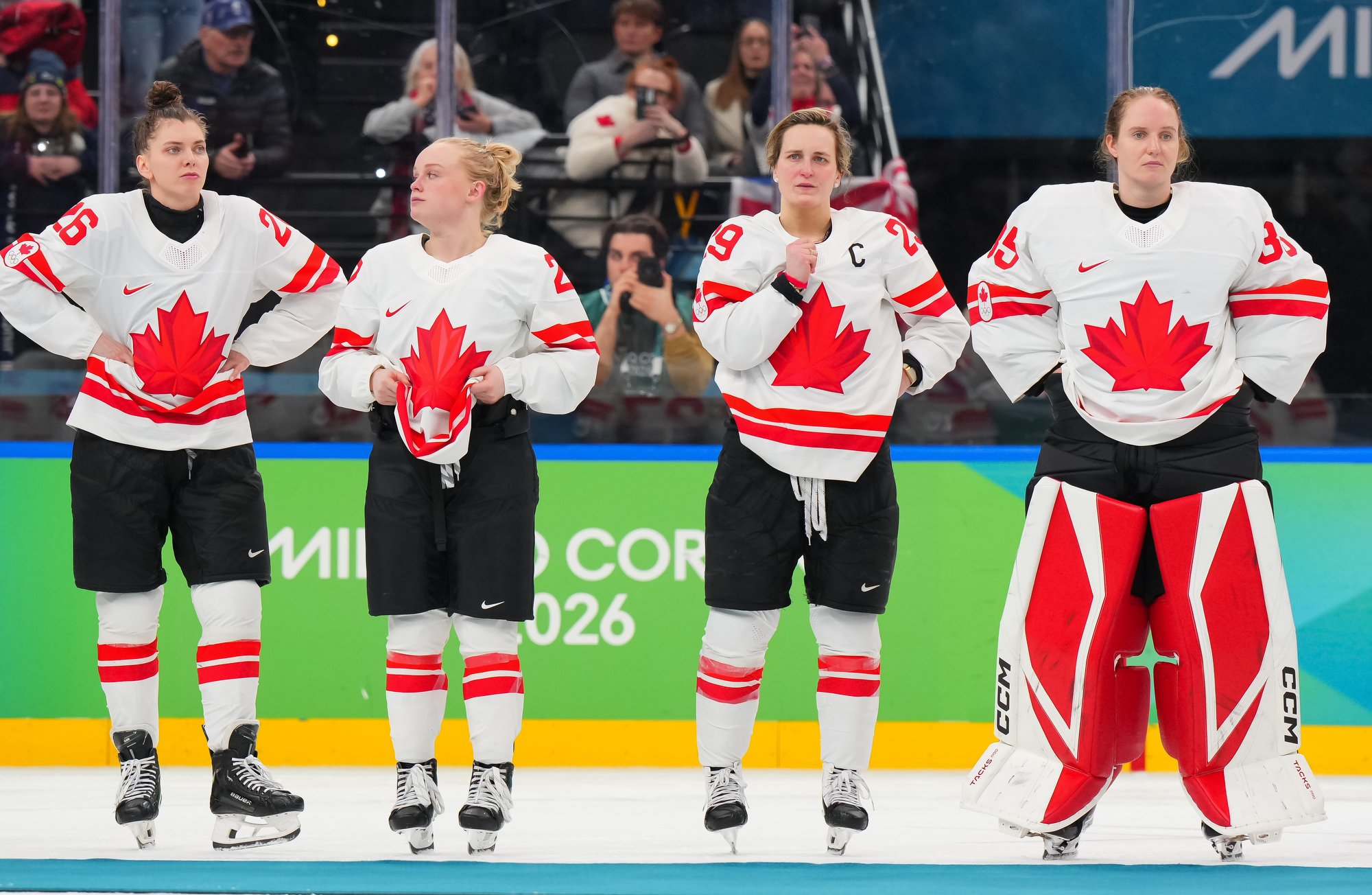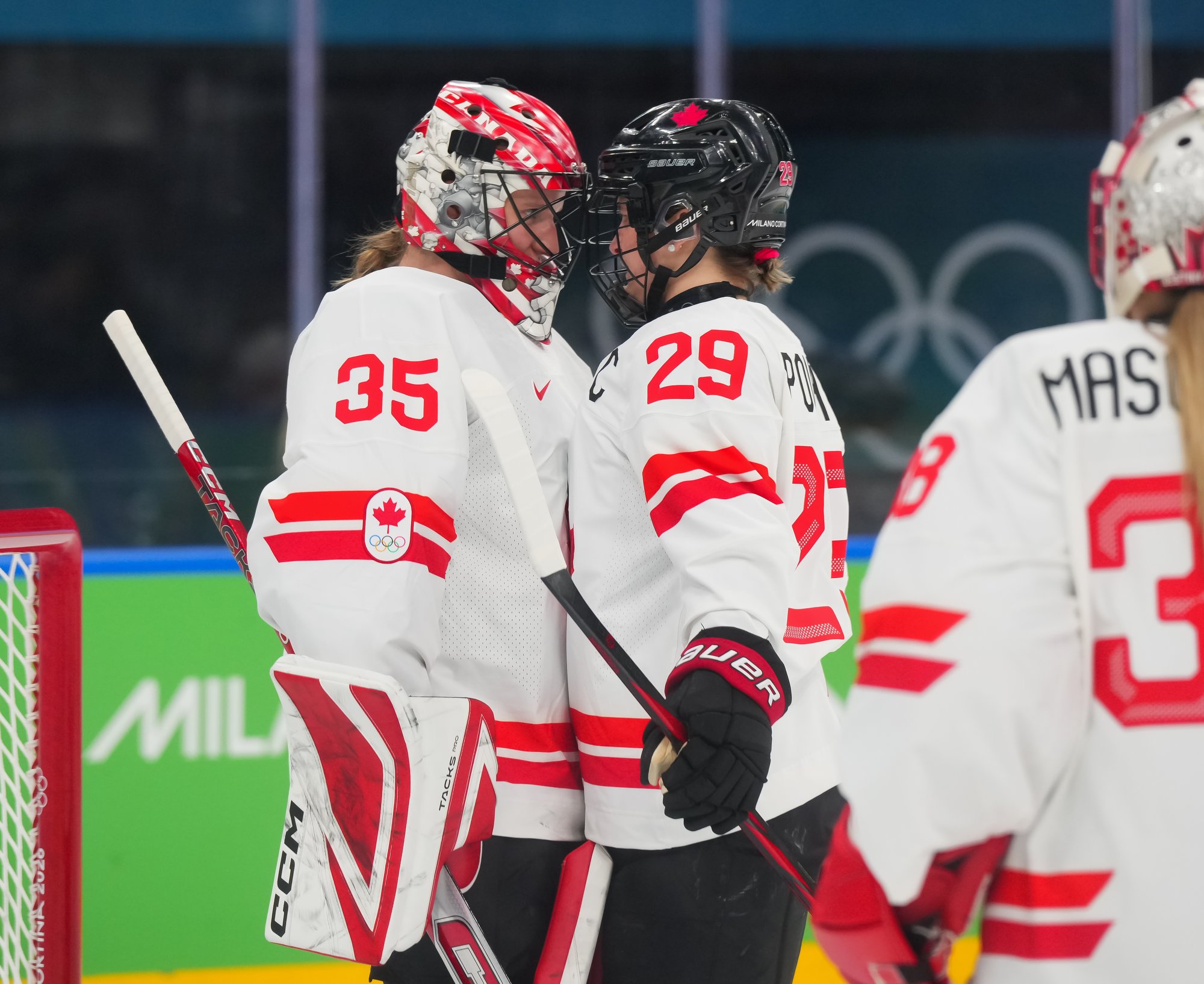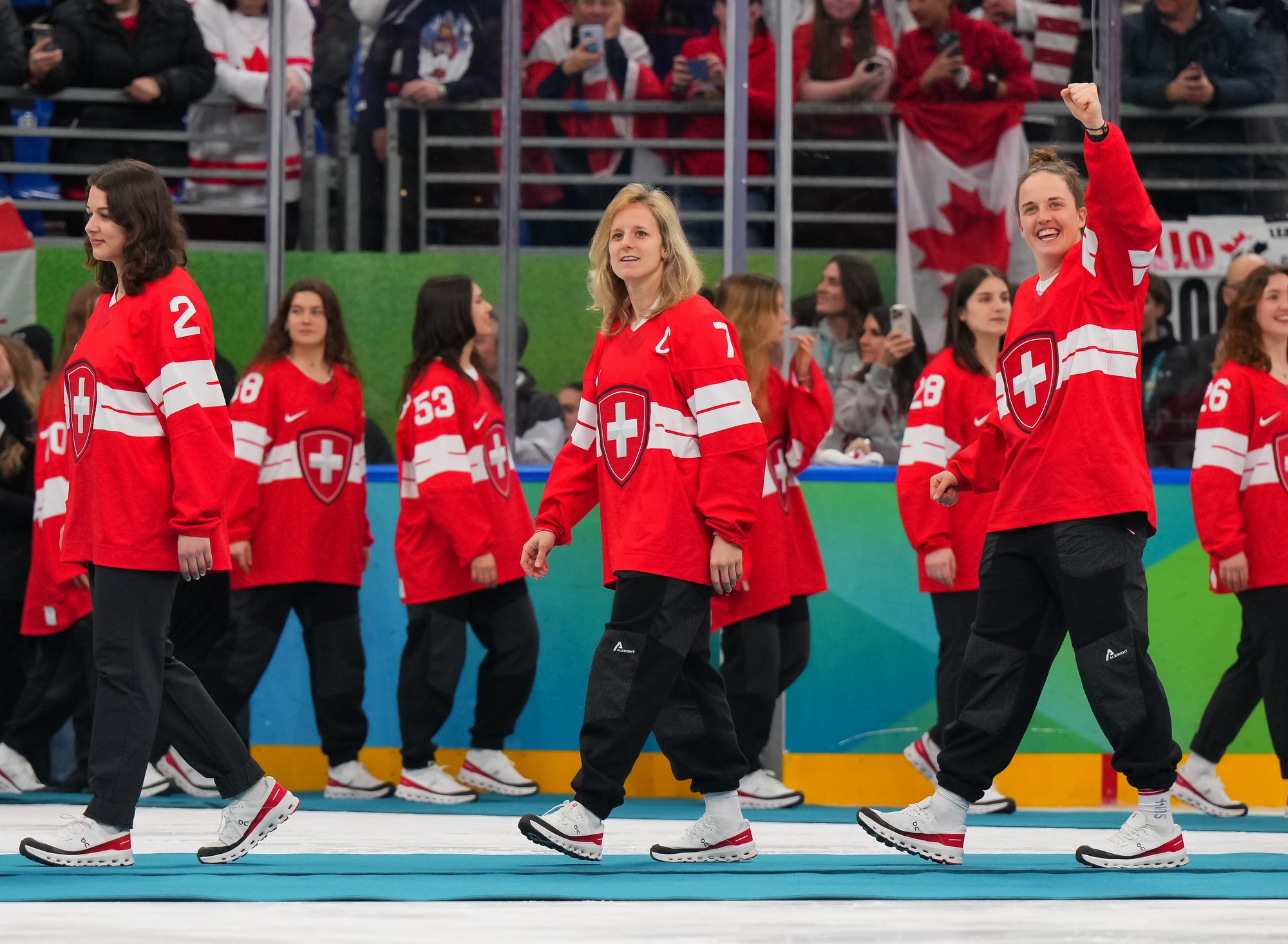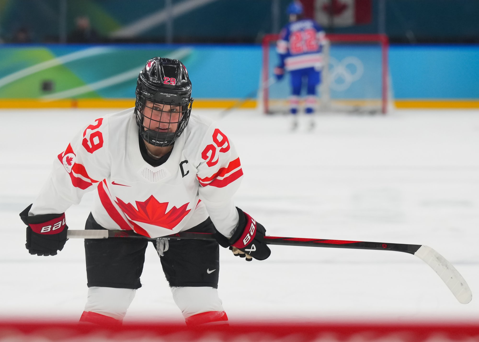 Santagiulia was packed with screaming fans, split more or less evenly between the two nations, and they had plenty to cheer for right from the get-go. Canada’s biggest challenge was to negate the U.S.’s flow and speed. To that end, they dumped the puck in and made the American defence chase the puck. In trouble in their own end, they cleared the puck to open ice, again forcing the Americans to chase down every loose puck. One-on-one battles along the boards? Not so much. Canada wasn’t interested.
