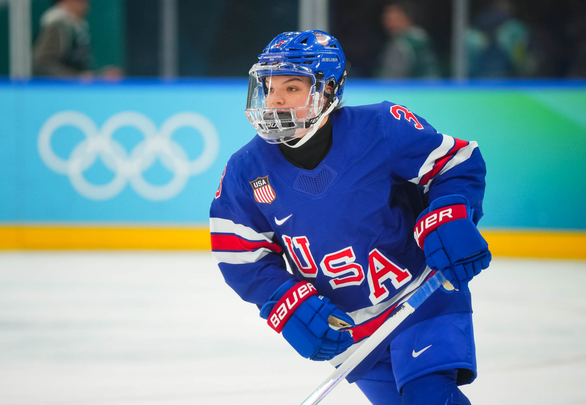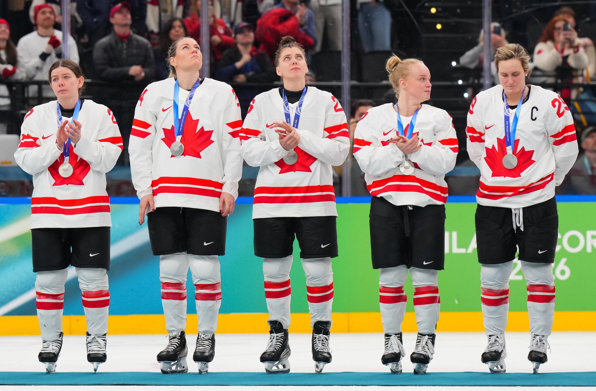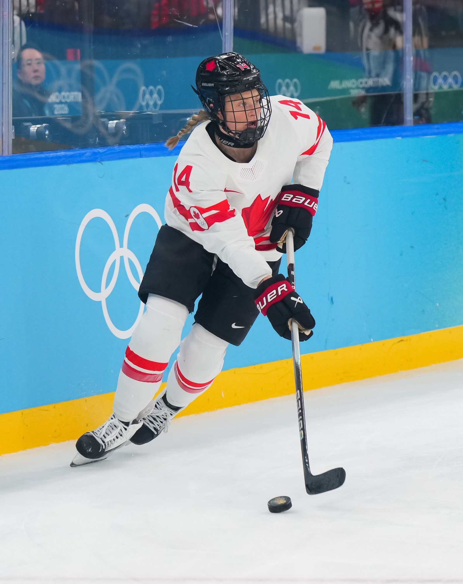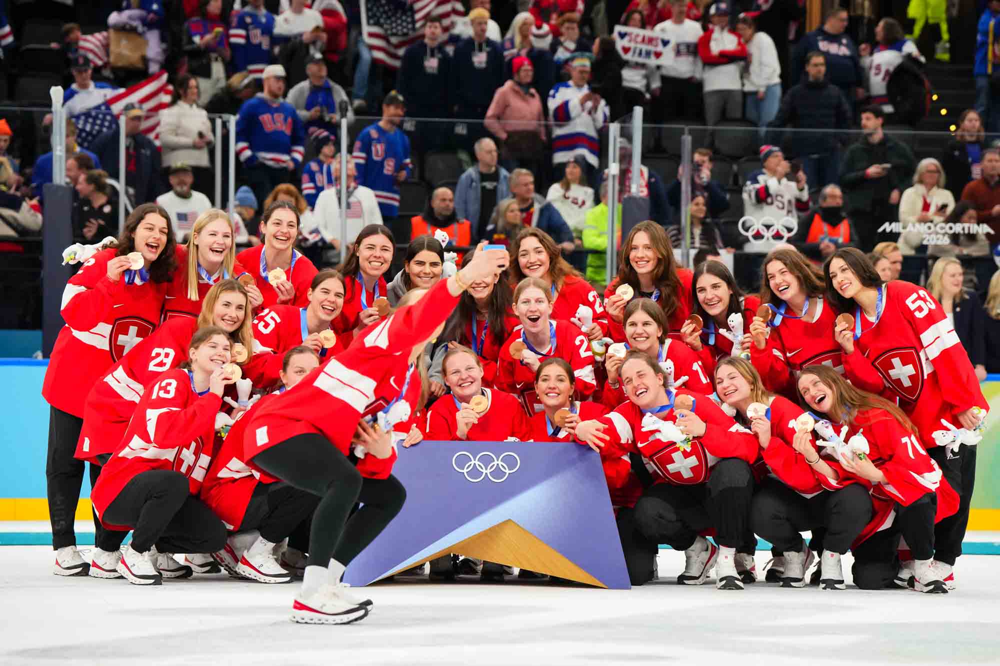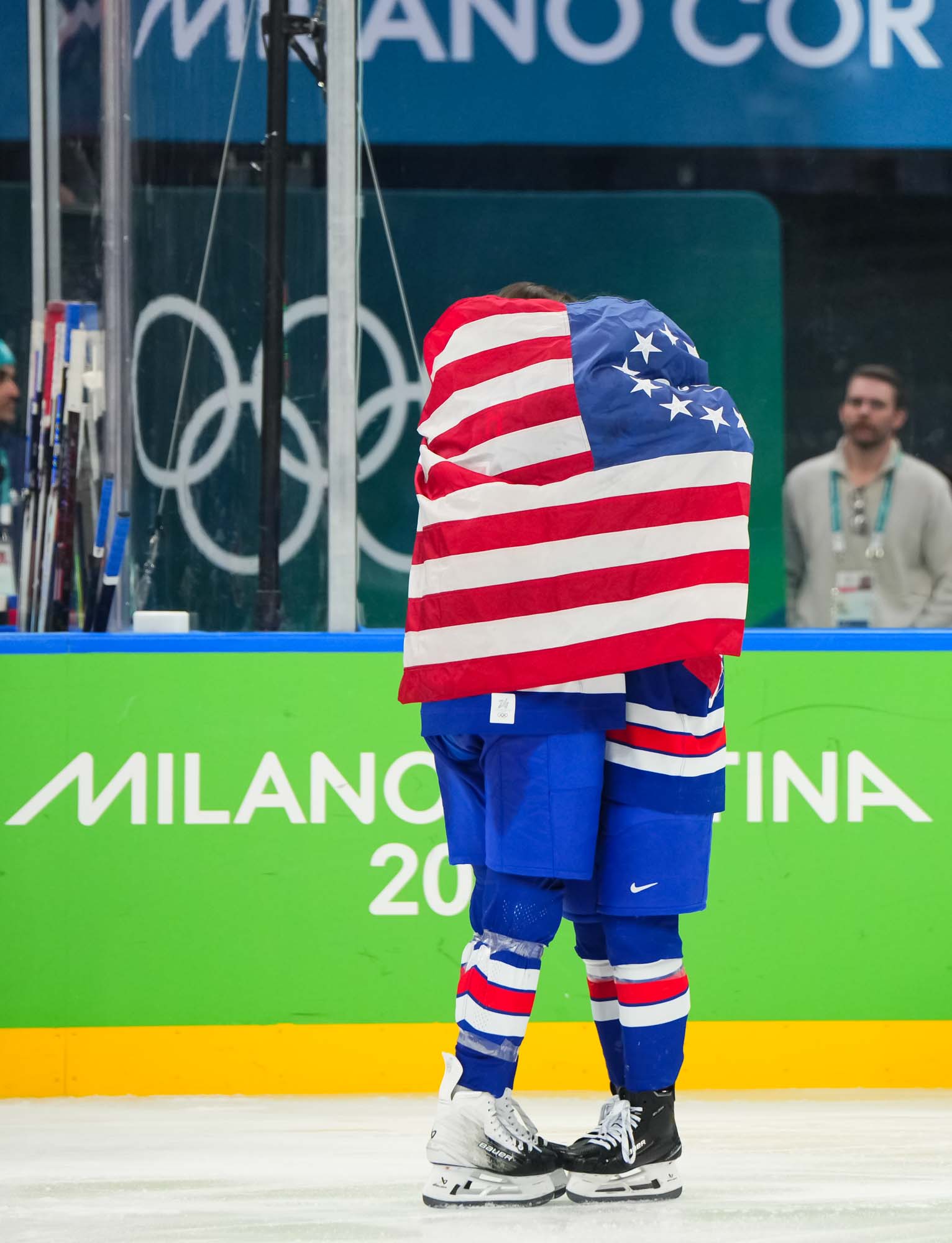 Santagiulia was packed with screaming fans, split more or less evenly between the two nations, and they had plenty to cheer for right from the get-go. Canada’s biggest challenge was to negate the U.S.’s flow and speed. To that end, they dumped the puck in and made the American defence chase the puck. In trouble in their own end, they cleared the puck to open ice, again forcing the Americans to chase down every loose puck. One-on-one battles along the boards? Not so much. Canada wasn’t interested.