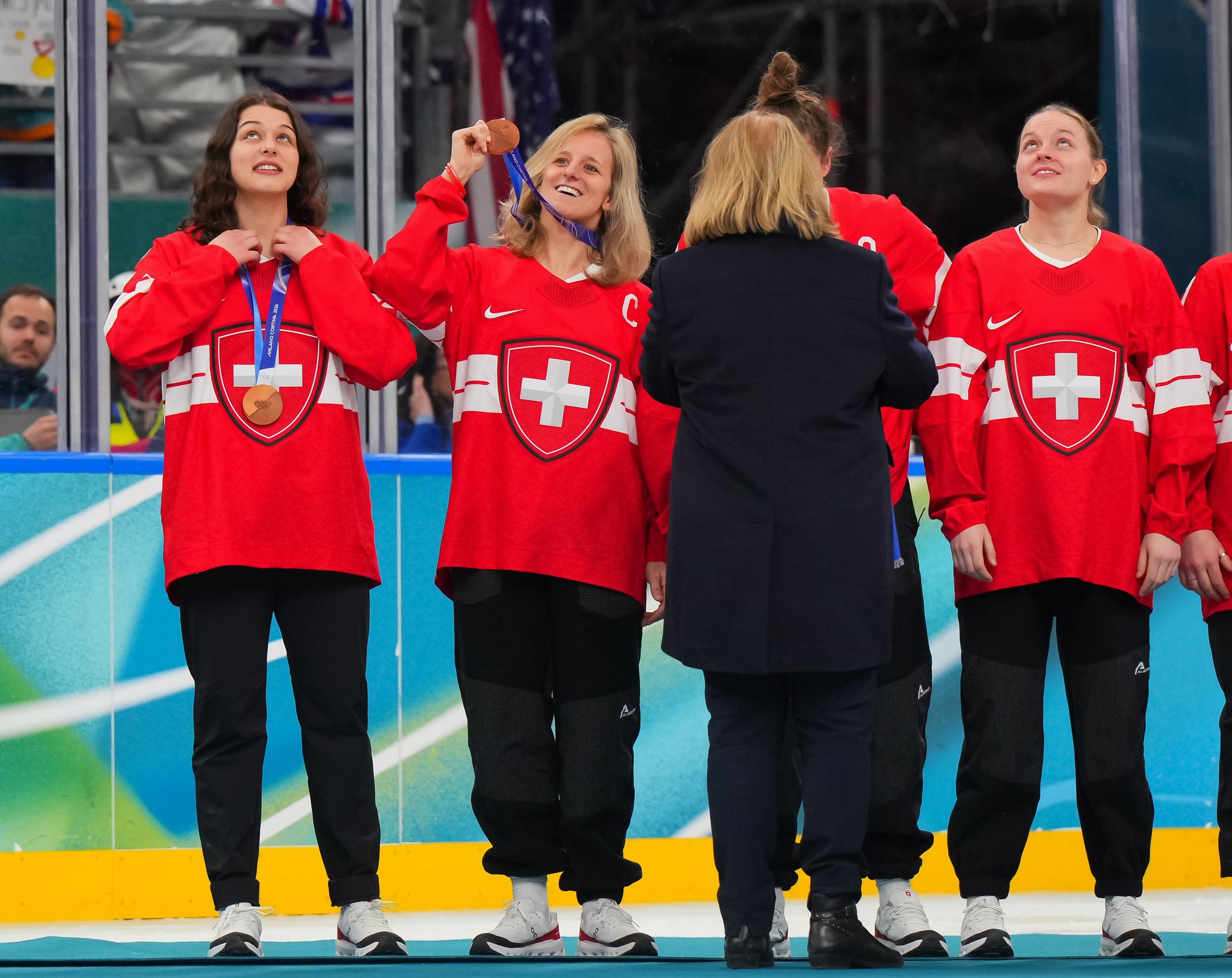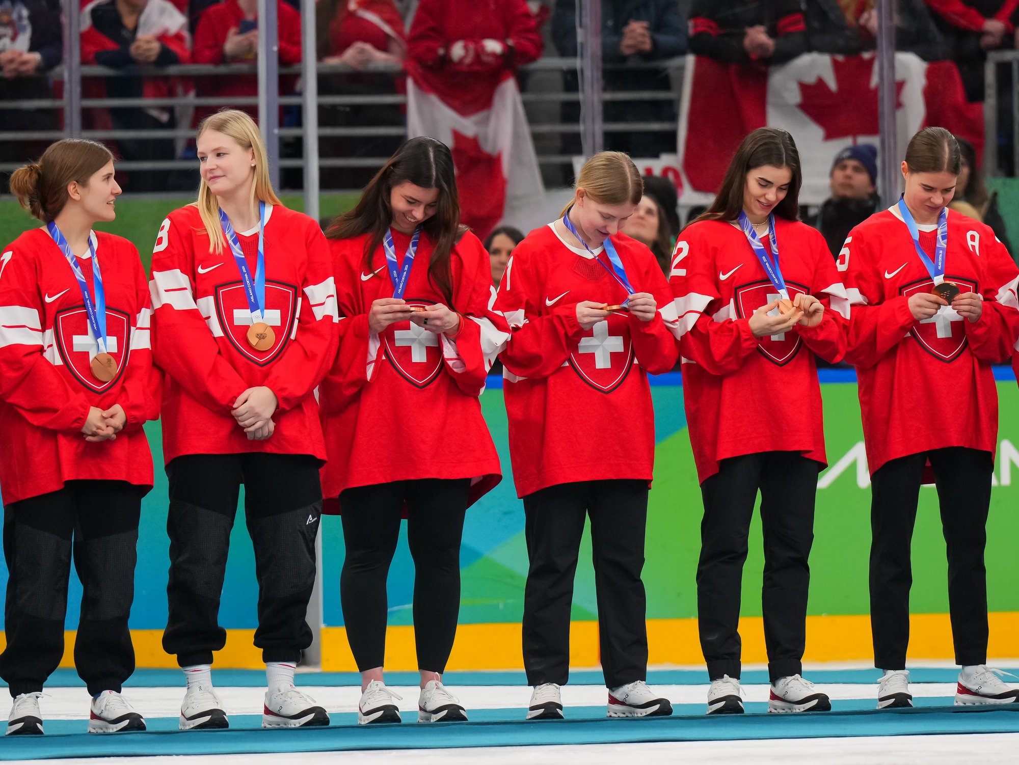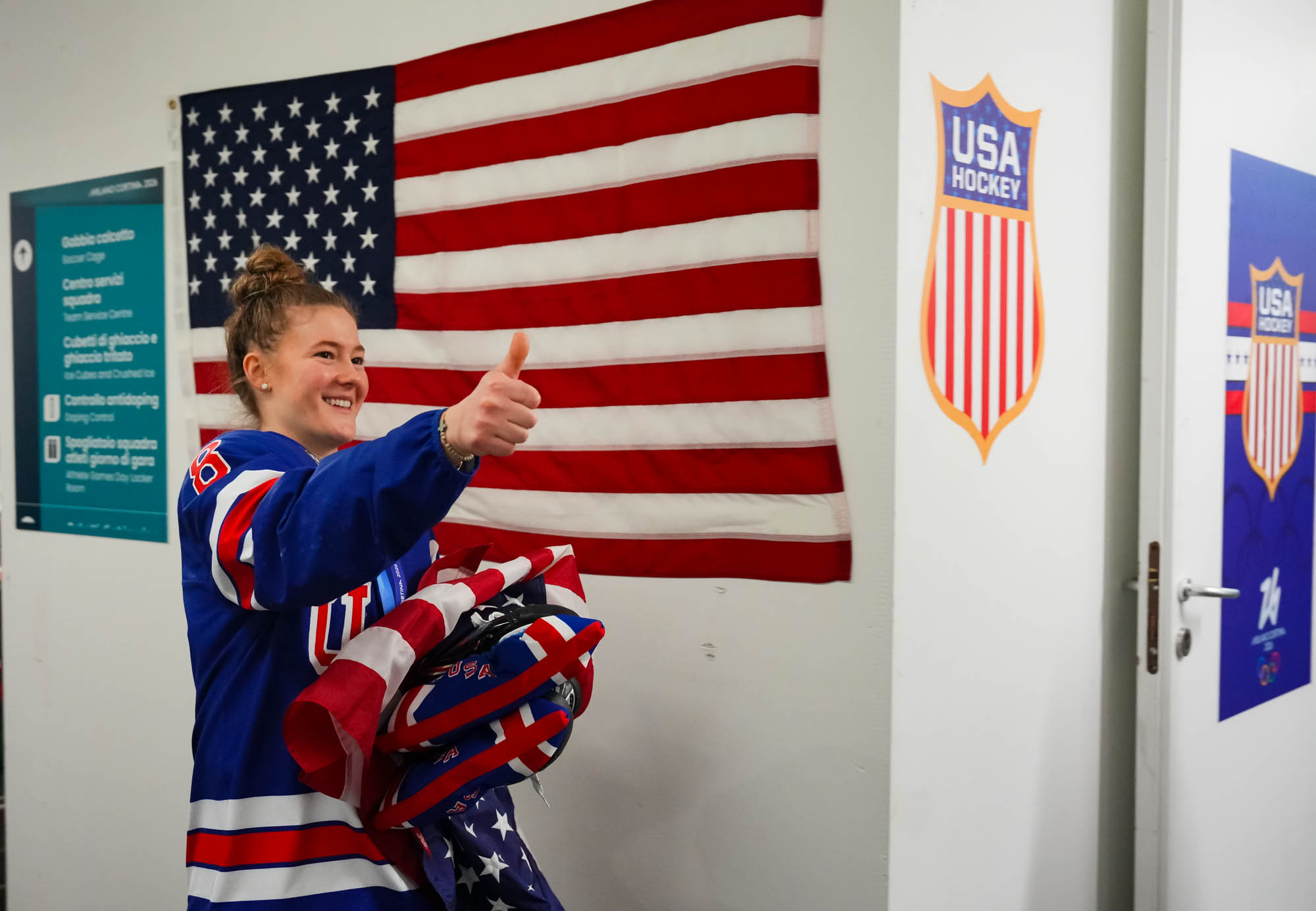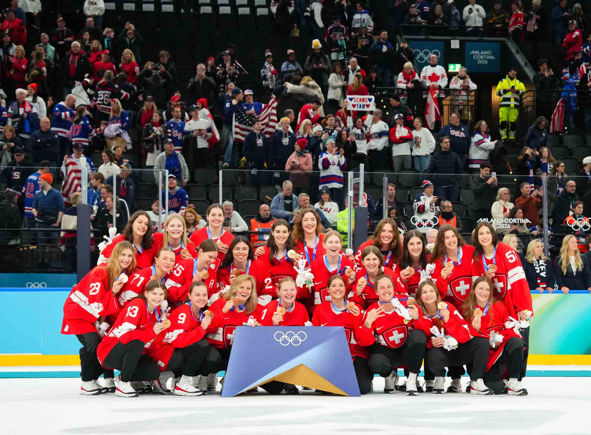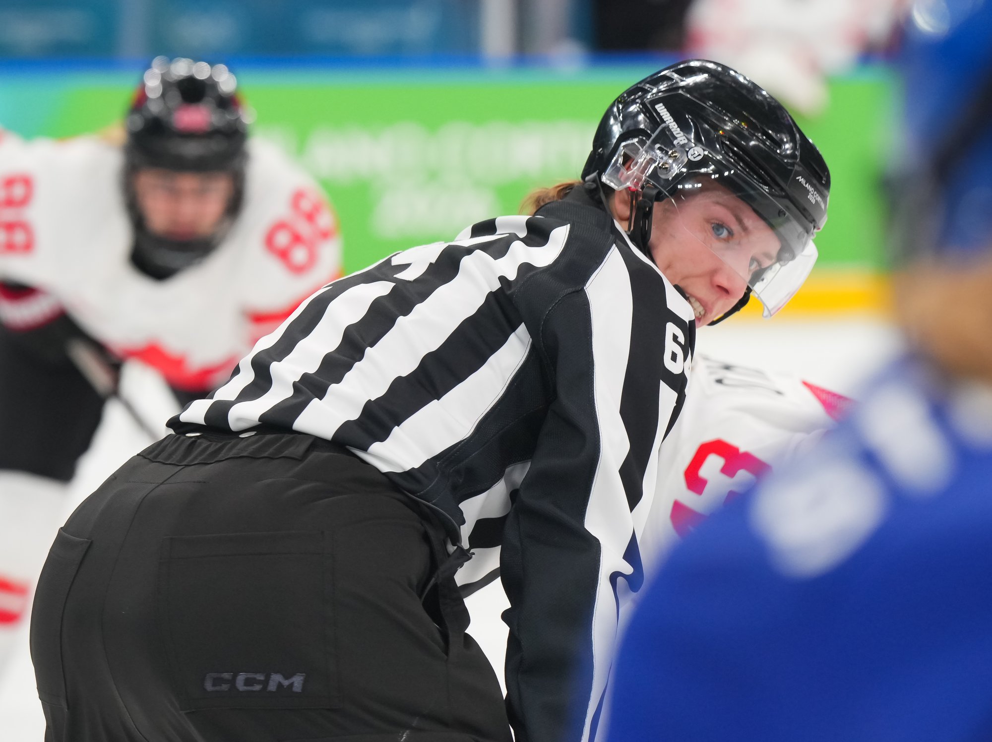 Santagiulia was packed with screaming fans, split more or less evenly between the two nations, and they had plenty to cheer for right from the get-go. Canada’s biggest challenge was to negate the U.S.’s flow and speed. To that end, they dumped the puck in and made the American defence chase the puck. In trouble in their own end, they cleared the puck to open ice, again forcing the Americans to chase down every loose puck. One-on-one battles along the boards? Not so much. Canada wasn’t interested.