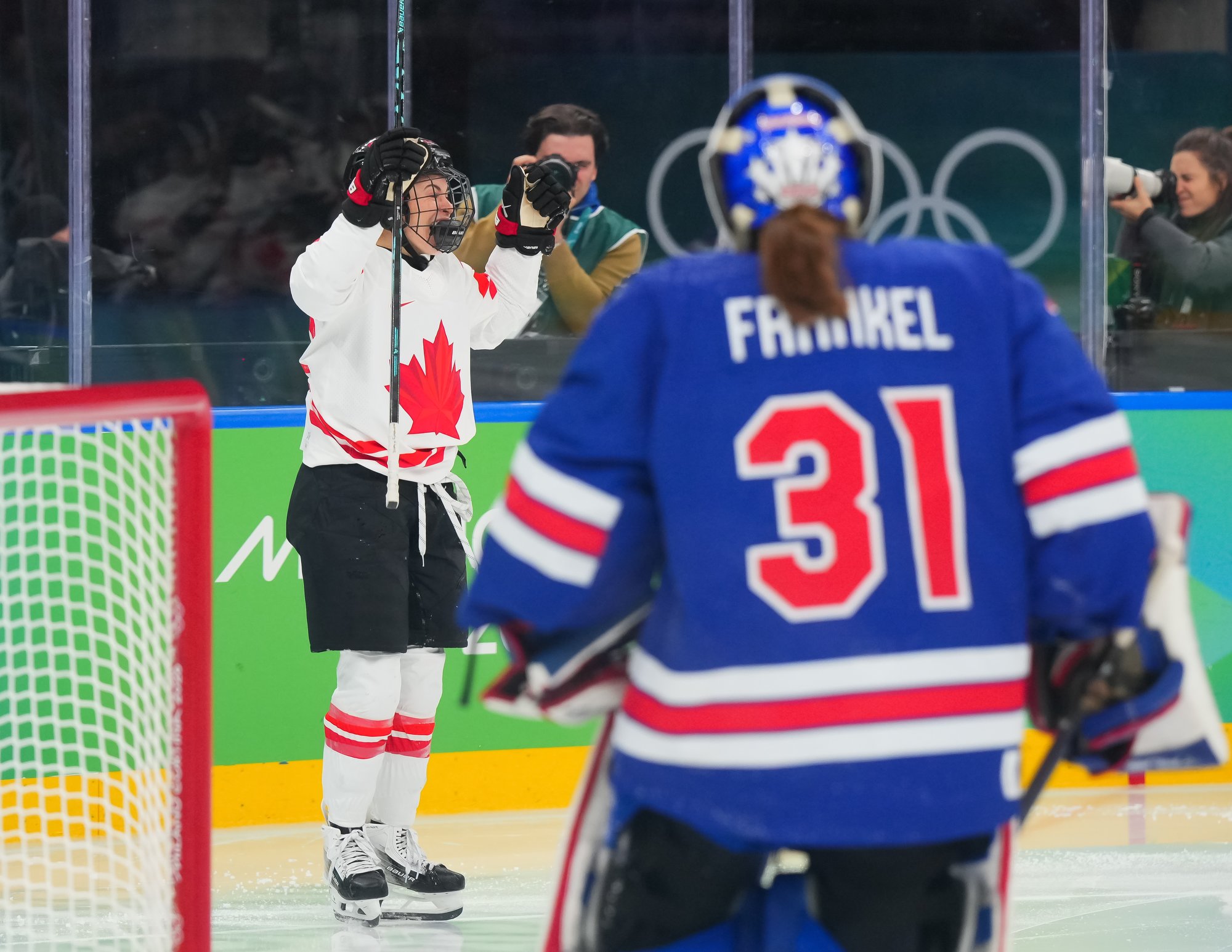 However, they couldn't capitalize on some fantastic scoring chances, in part from lack of touch, in part because of some superb goaltending from Aerin Frankel, who gave her team a chance to win all night.