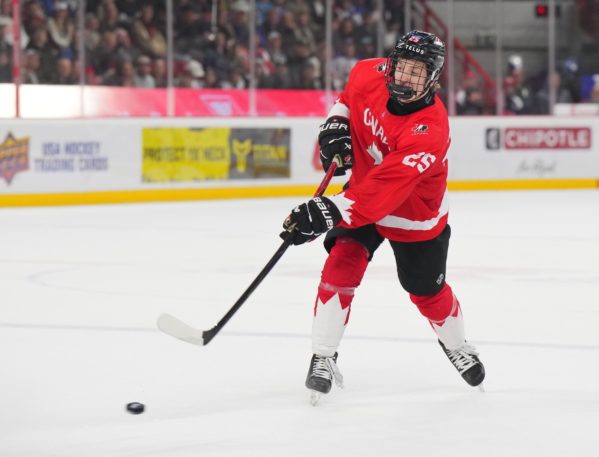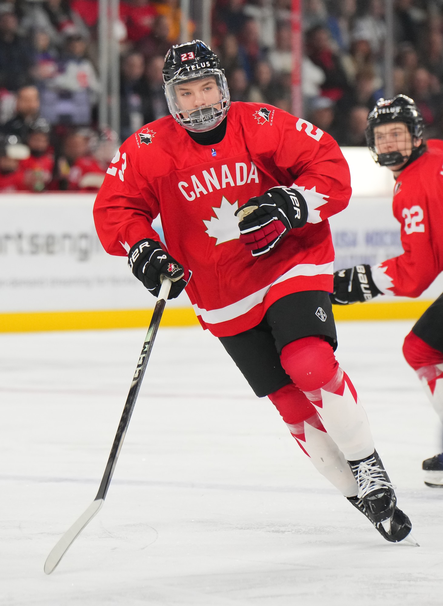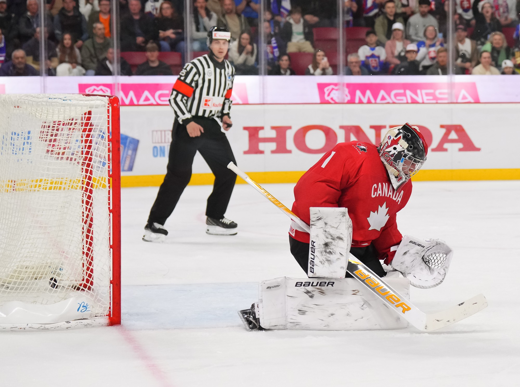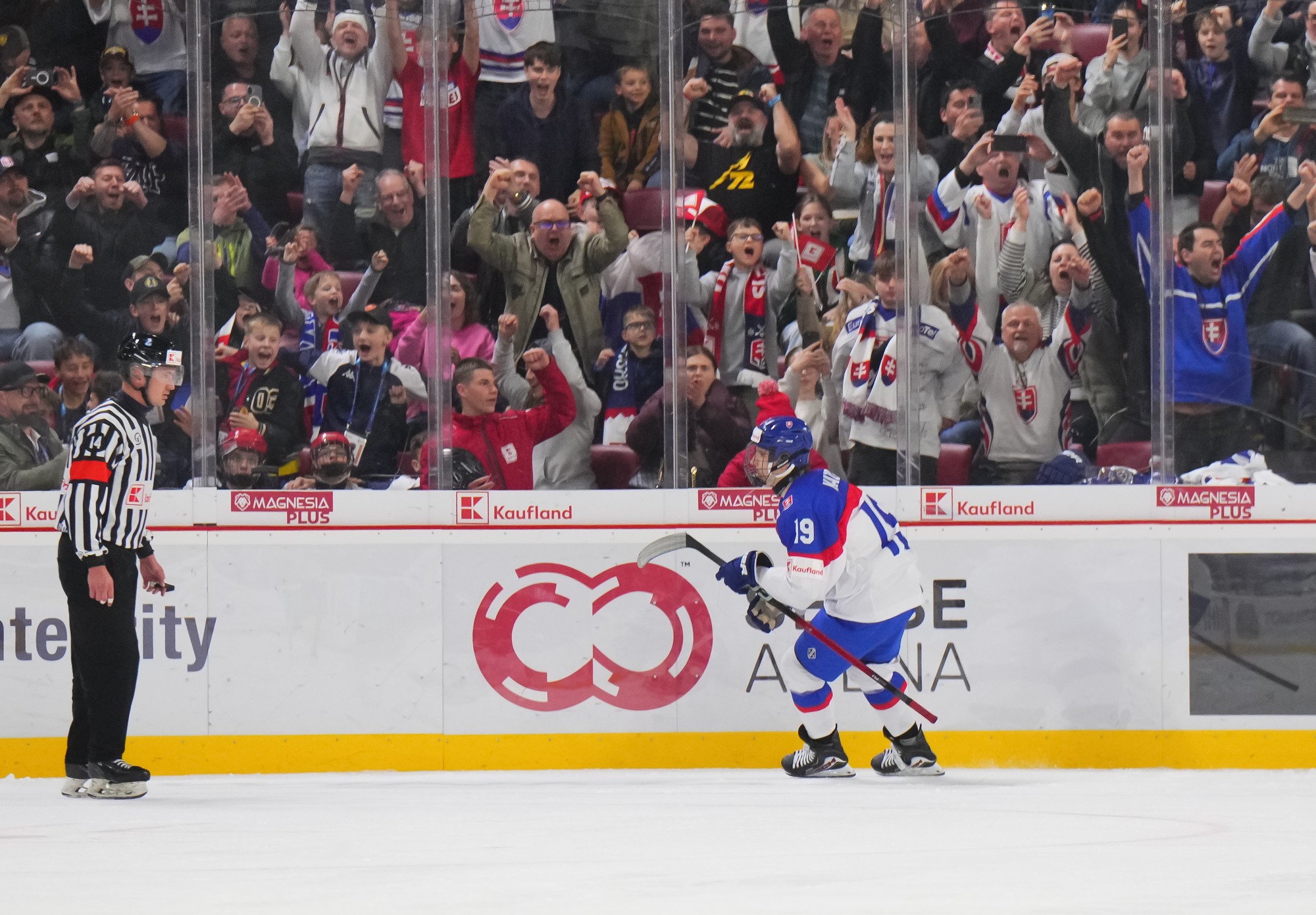 But Canada has resilience in its hockey DNA. A couple of minutes after that goal, with the jubilation still bubbling around the arena, a Slovak penalty led to an equalizer. This was one from the coach’s playbook, slick passing around the zone culminating in Adam Valentini’s feed in front of the net for Mathis Preston to touch home at the back door.
