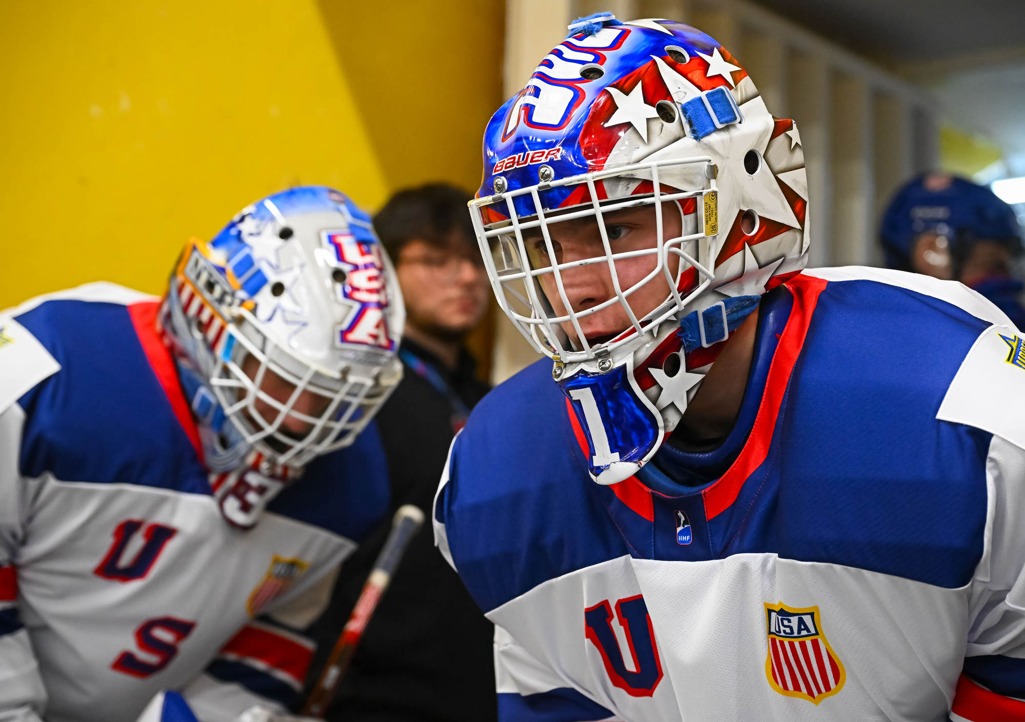 Having gone long stretches without any action, USA goalie Carrithers was suddenly called upon two minutes later to preserve his team’s lead about five minutes later when he faced Thoke Heinsen on a clear-cut breakaway. Heinsen tried to score five-hole but Carrithers closed the door.