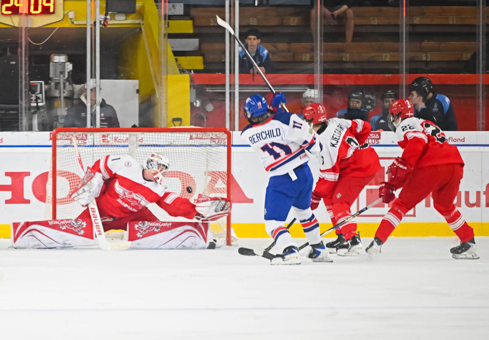 On Thursday, the story of Denmark’s 4-1 win over Germany was goaltender Anton Wilde. On Friday, he couldn’t do enough to get his team a win against the USA, but he did everything he possibly could, stopping 52 out of 54 shots in a 2-0 defeat, which evens Denmark’s record to 1-1 at the 2026 IIHF Ice Hockey U18 Men’s World Championship.