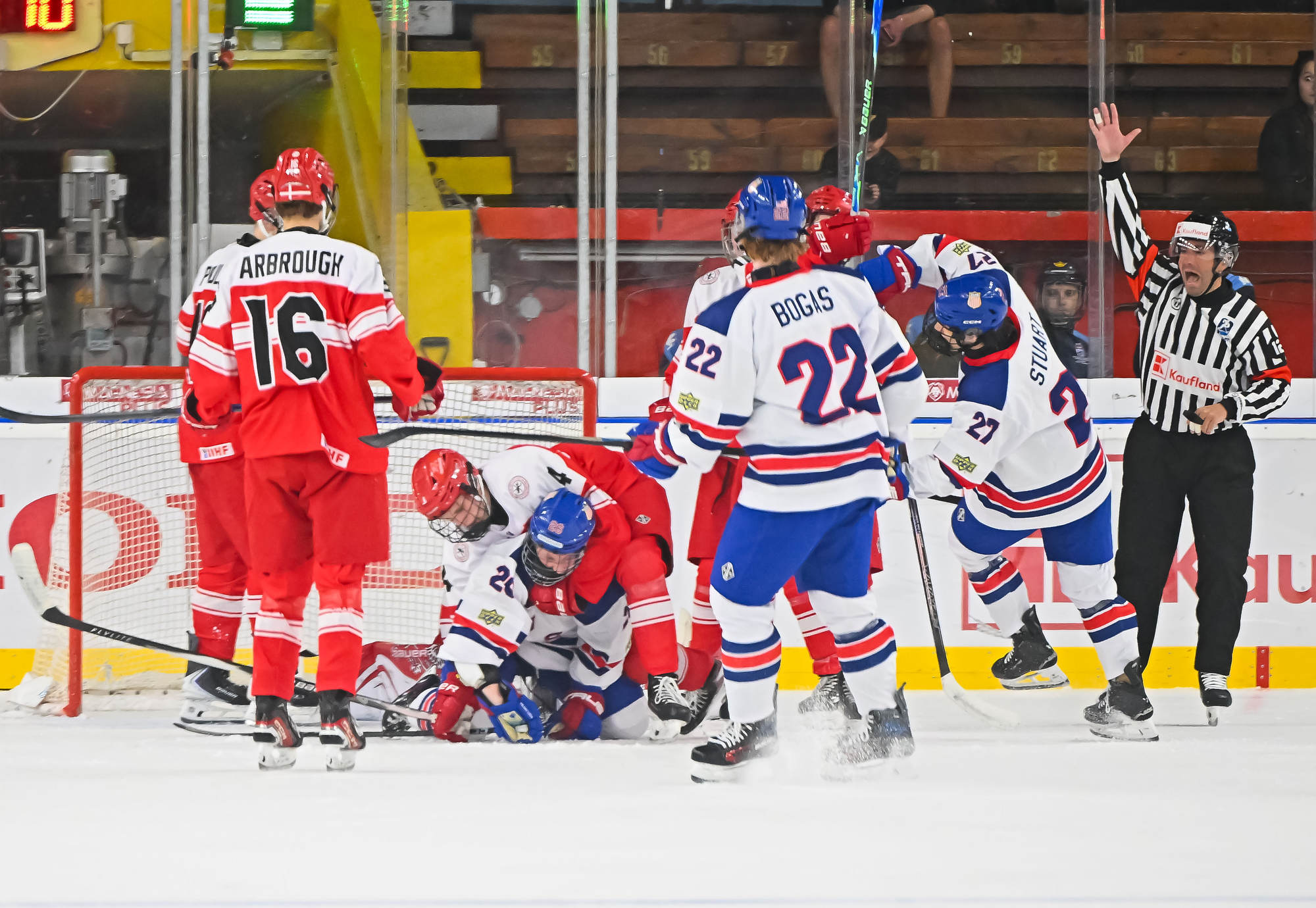 “I liked a lot of what we did but I didn’t like our first so much,” said US coach Nick Fohr. “We spent too much time on the perimeter so I challenged our guys to get inside a little bit more and I thought we did a lot better job of that in the second and third periods. In the end, I was actually really happy with a lot of the things that we did.”