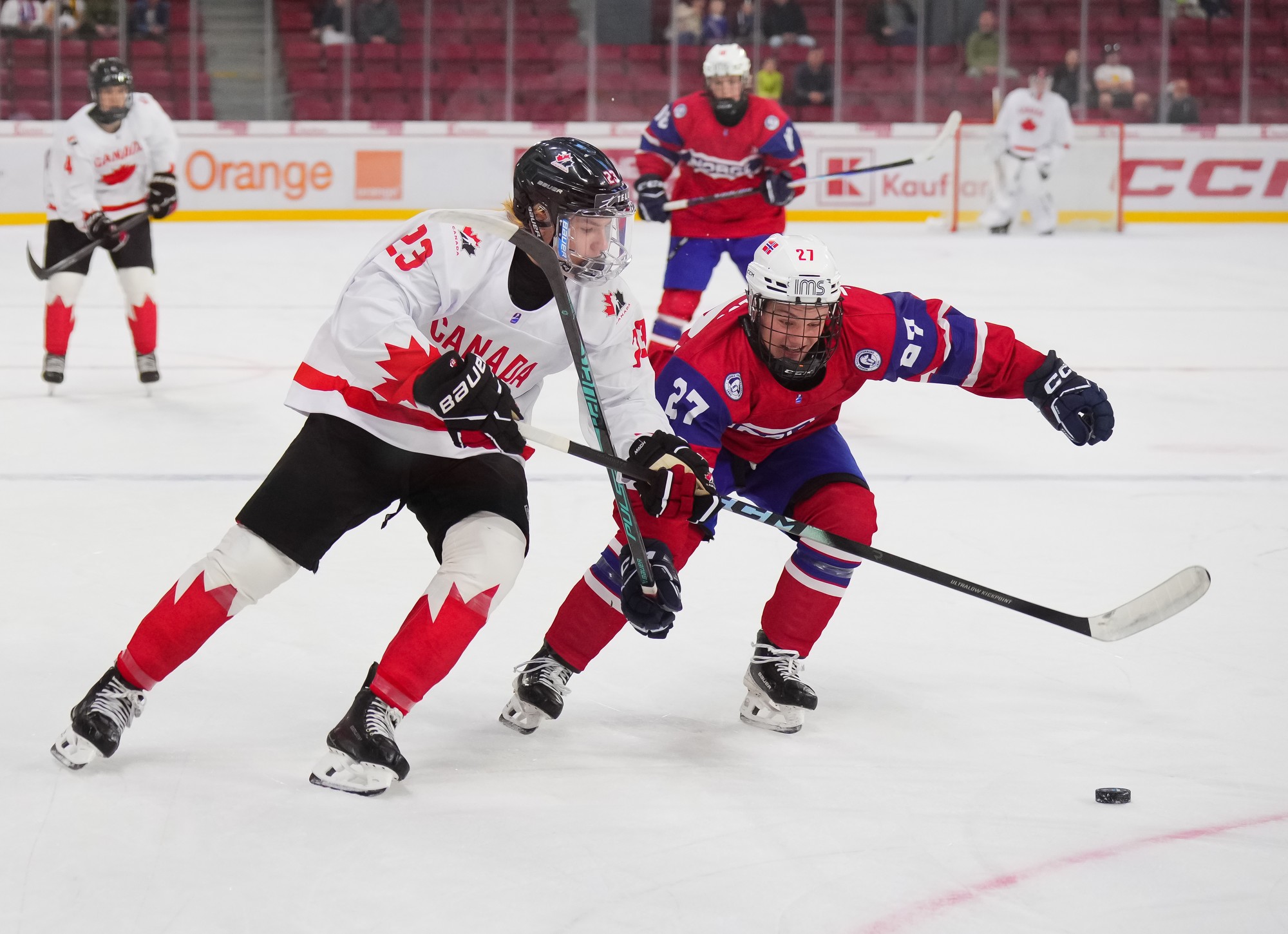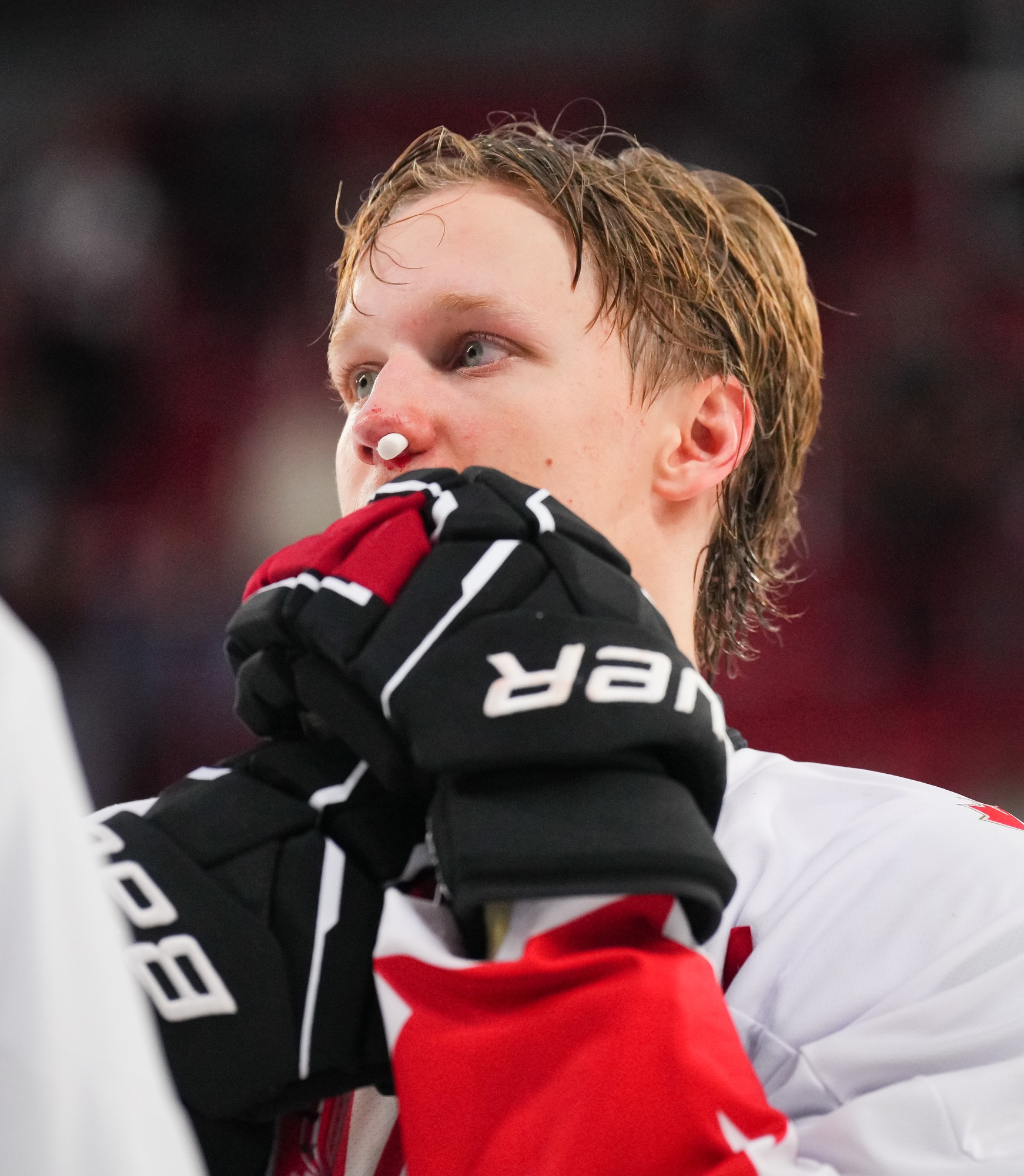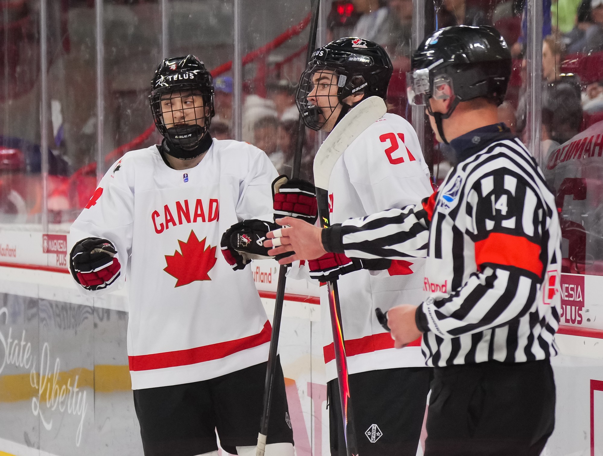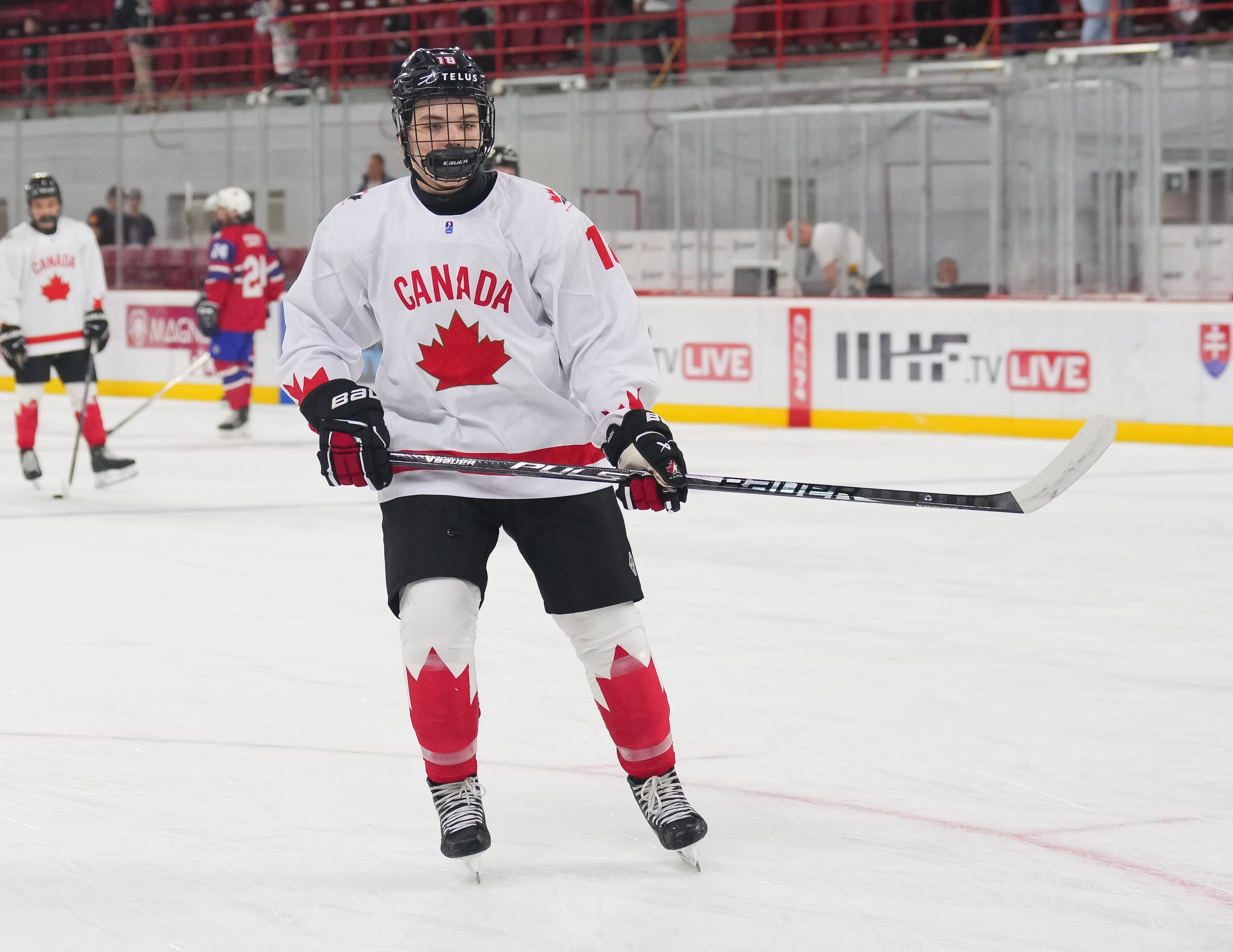Canada did not have to wait long for more goals. In the 17th minute Zhilkin redirected a Mathis Preston feed into the net, then he assisted as Lawrence added a third just before the intermission for a second power play goal of the game.