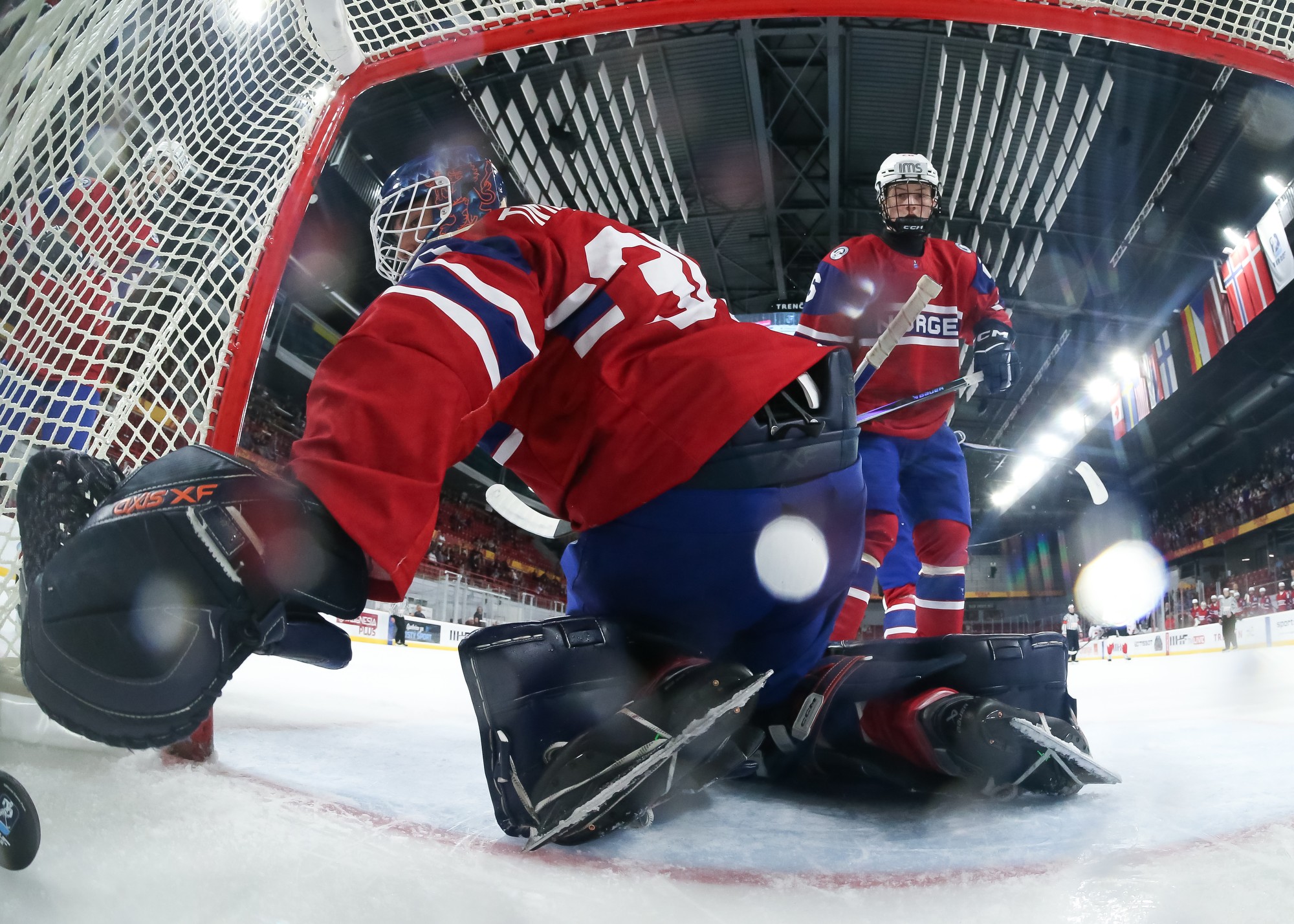 It took Canada a few shifts to settle into its game and in that time Norway managed a couple of half chances. However, the underdog could not seriously trouble Gavin Betts, who was back in the Canadian net after leaving the opening night loss to Slovakia with cramp.