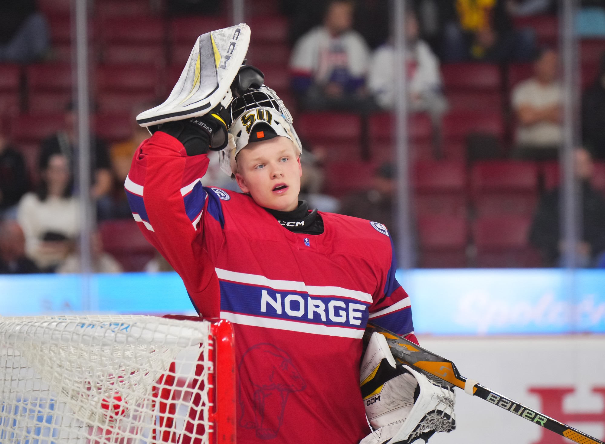 And it wasn’t long before the play was at the other end. Norway killed a penalty, but fell behind at equal strength midway through the opening frame. Lin found Beckett Hamilton on the doorstep and the forward took a touch to get it out of his skates before lifting the puck over Felix Timraz-Westin.